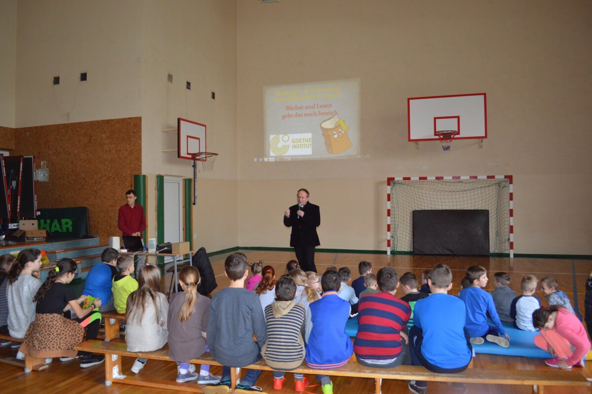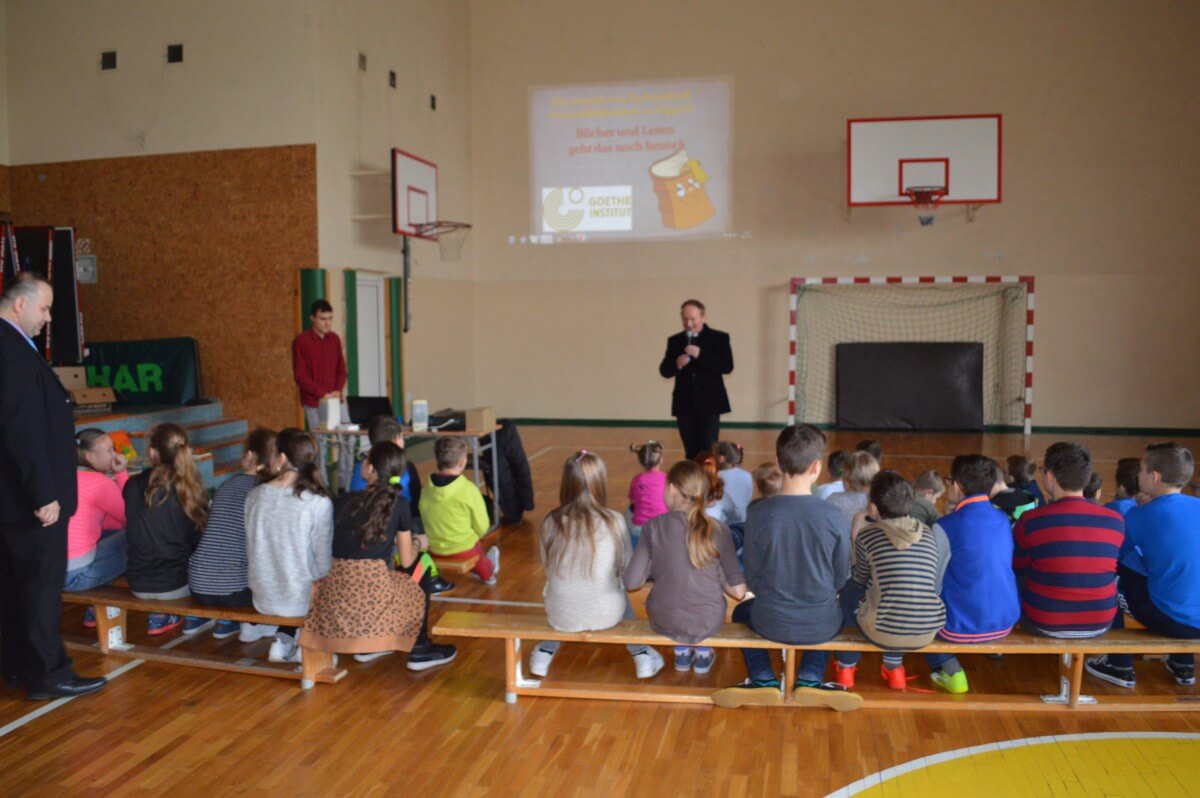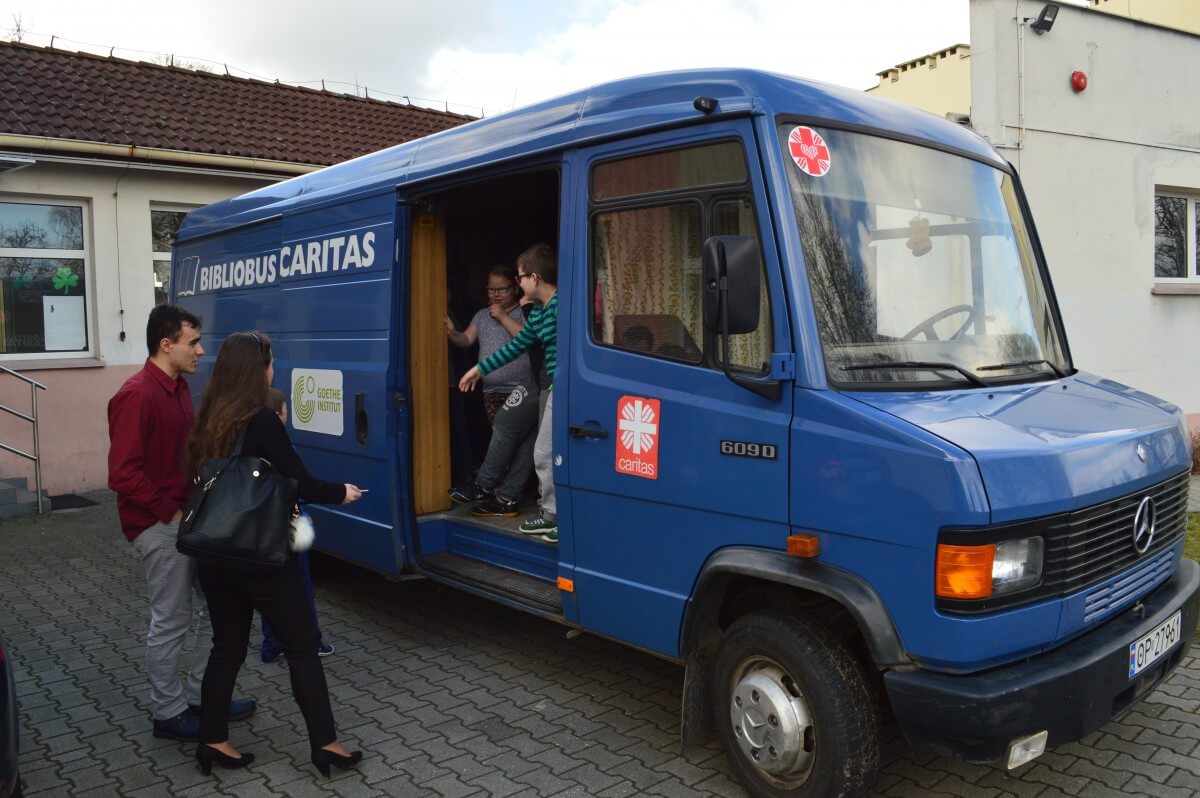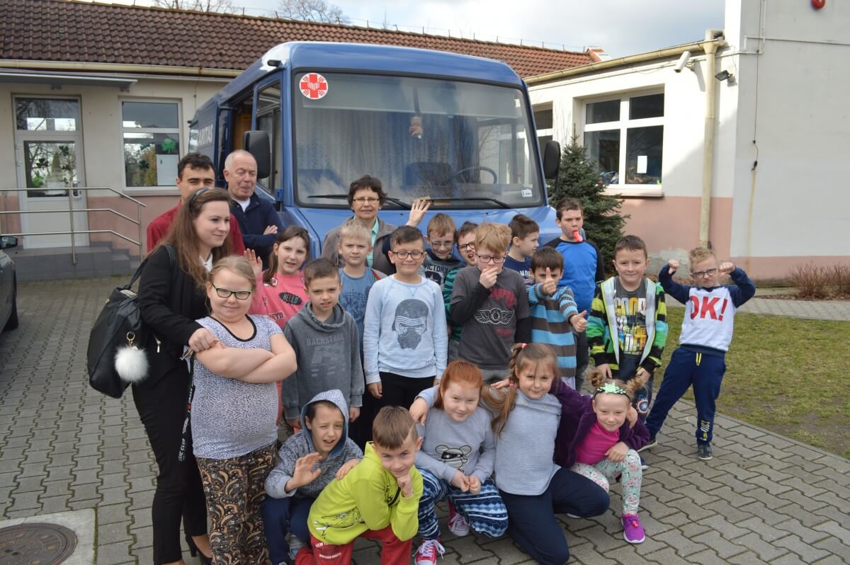 W piątek, 24 marca do szkoły przyjechał bibliobus. Dzieci z klas IIa, IIb, IIIb oraz IIIa wzięły udział w interesującej prezentacji, podczas której została im przypomniana wartość tradycyjnej książki. Dzieciom przekazano również, żeby rozsądnie i z umiarem obchodzili się z tabletami(prezentacja krótkiej bajki „Homo tabletis”) oraz innymi elektronicznymi i multimedialnymi urządzeniami. Słuchacze chętnie dyskutowali o walorach czytania, a także próbowali odpowiedzieć na pytanie, która książka jest lepsza – tradycyjna papierowa, a może e-book. Po krótkiej prezentacji każde dziecko miało okazję poznać bibliotekę na kółkach i wypożyczyć książkę. Niektórzy uczniowie zasiedli nawet za kierownicą bibliobusa. Młodzi czytelnicy, którzy zabrali książkę ze sobą do domu, mają możliwość wzięcia udziału w konkursie. Zadanie konkursowe to stworzenie pracy plastycznej dowolną techniką dotyczącą książki. Bibliobus to objazdowa wypożyczalnia książek prowadzona przez Stowarzyszenie Bibliotek Caritas im. Świętego Karola Boromeusza w Opolu. Stowarzyszenie ma dwa bibliobusy. Jeden odwiedza miejscowości w rejonie kluczborskim, a drugi, obsługuje powiat opolski.