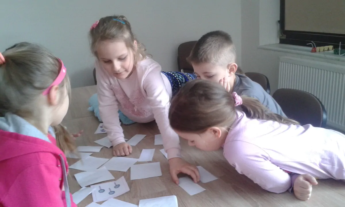 W sobotę w ramach „Szkółki sobotniej” uczniowie poznawali bajkę o bardzo głodnej gąsienicy. Wraz po projekcji historyjki uczestnicy poprzez gry ruchowe trenowali i utrwalali nowo poznane słownictwo.