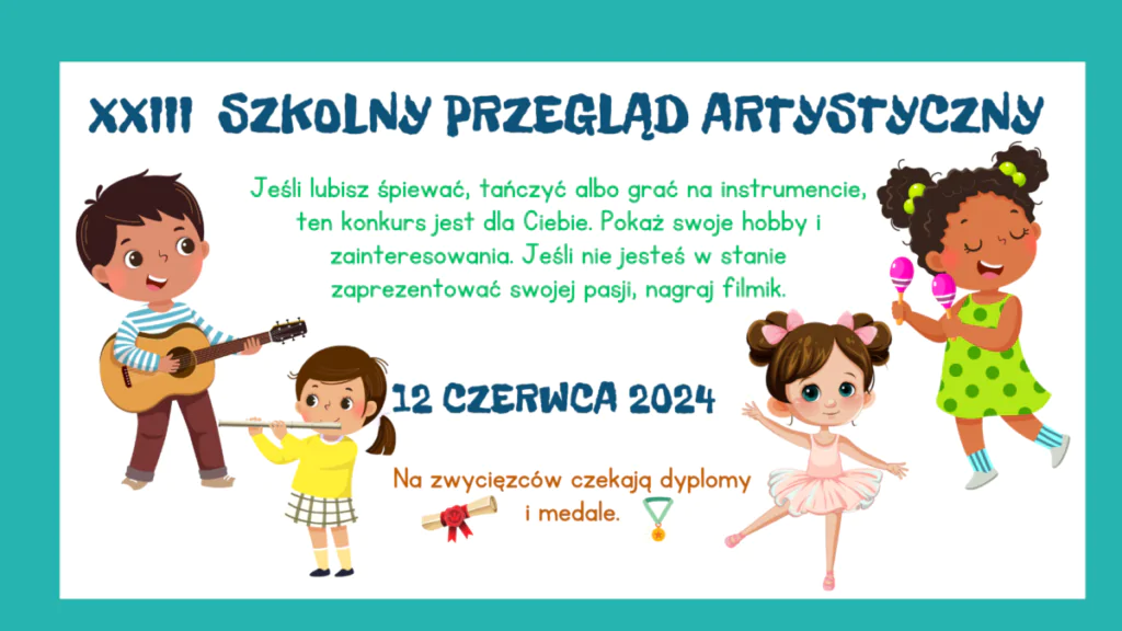 12 czerwca 2024r. w naszej szkole odbył się XXXIII Szkolny Przegląd Artystyczny. Wzięło w nim udział 43 wykonawców. Jak zawsze, najchętniej występowały dzieci młodsze. Uczniowie