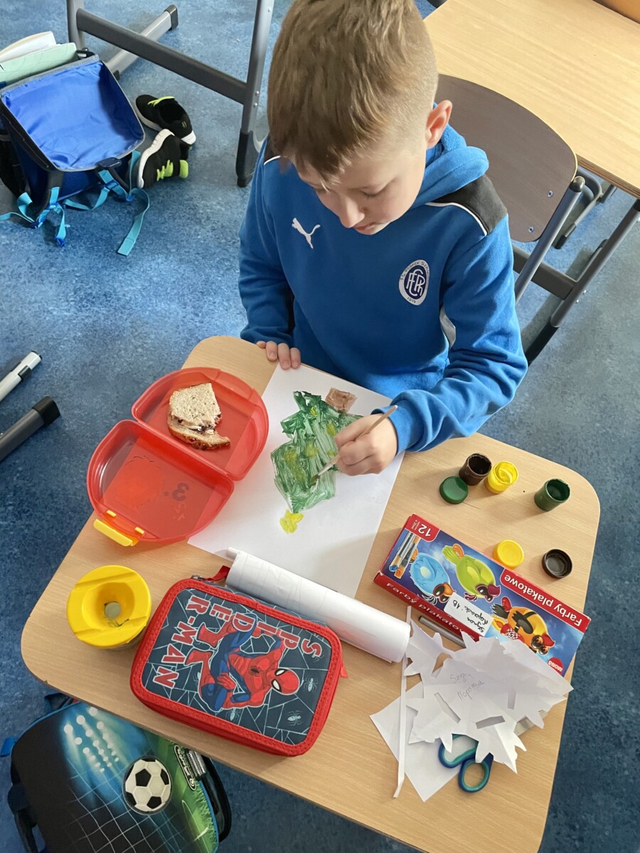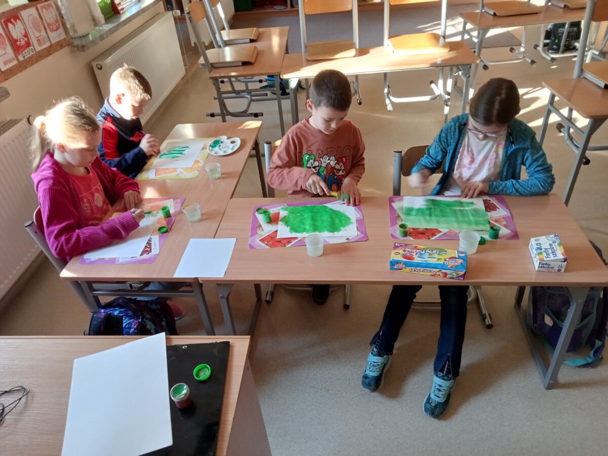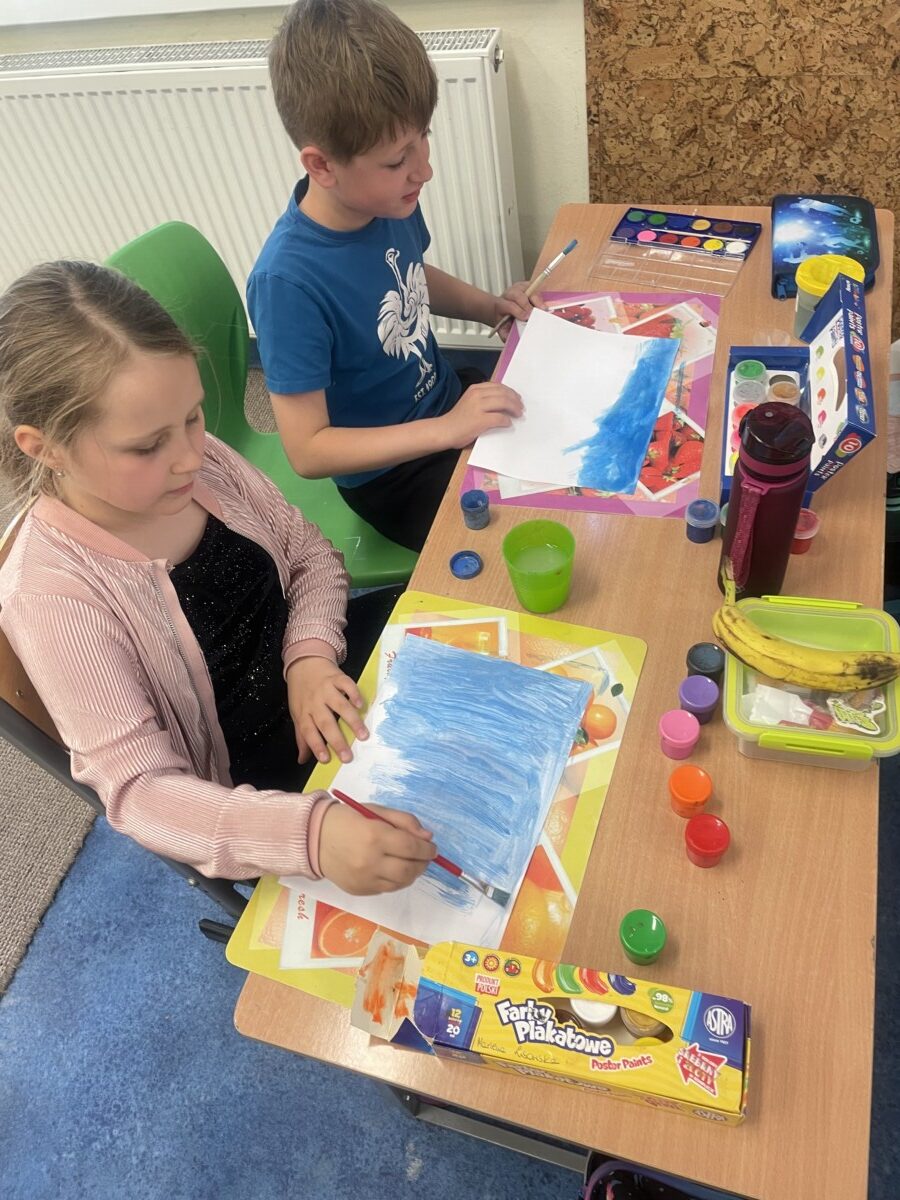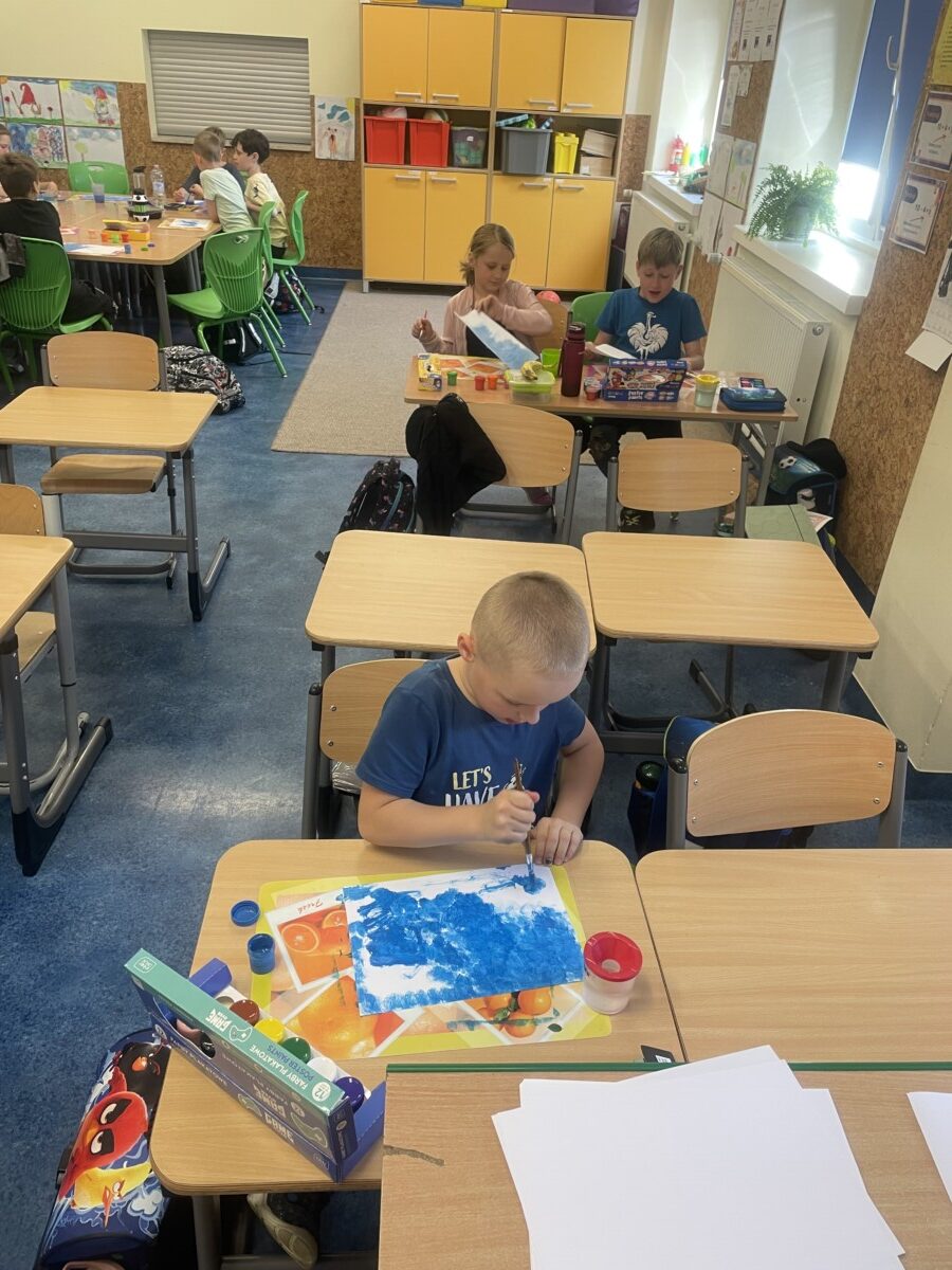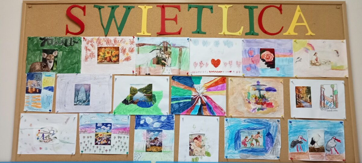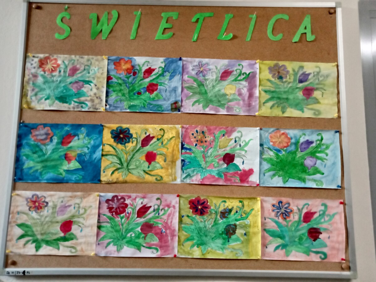 Dzięki tej różnorodności każdy obraz był unikalny i odzwierciedlał indywidualne podejście dziecka do tematu. Dzieci pracowały z zaangażowaniem i radością, a efekty ich starań można podziwiać na wystawie prac plastycznych w świetlicy. Takie zajęcia nie tylko rozwijają umiejętności plastyczne uczniów, ale również uczą pracy w skupieniu, wytrwałości oraz czerpania satysfakcji z własnych osiągnięć.
