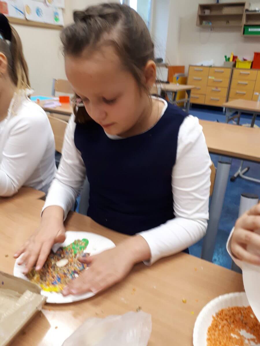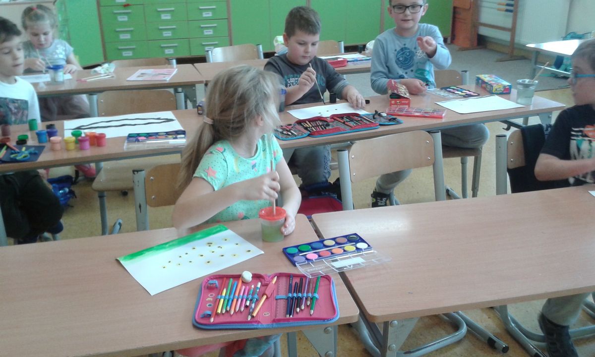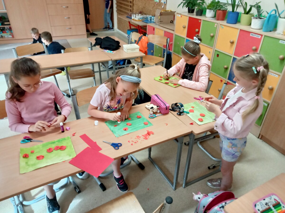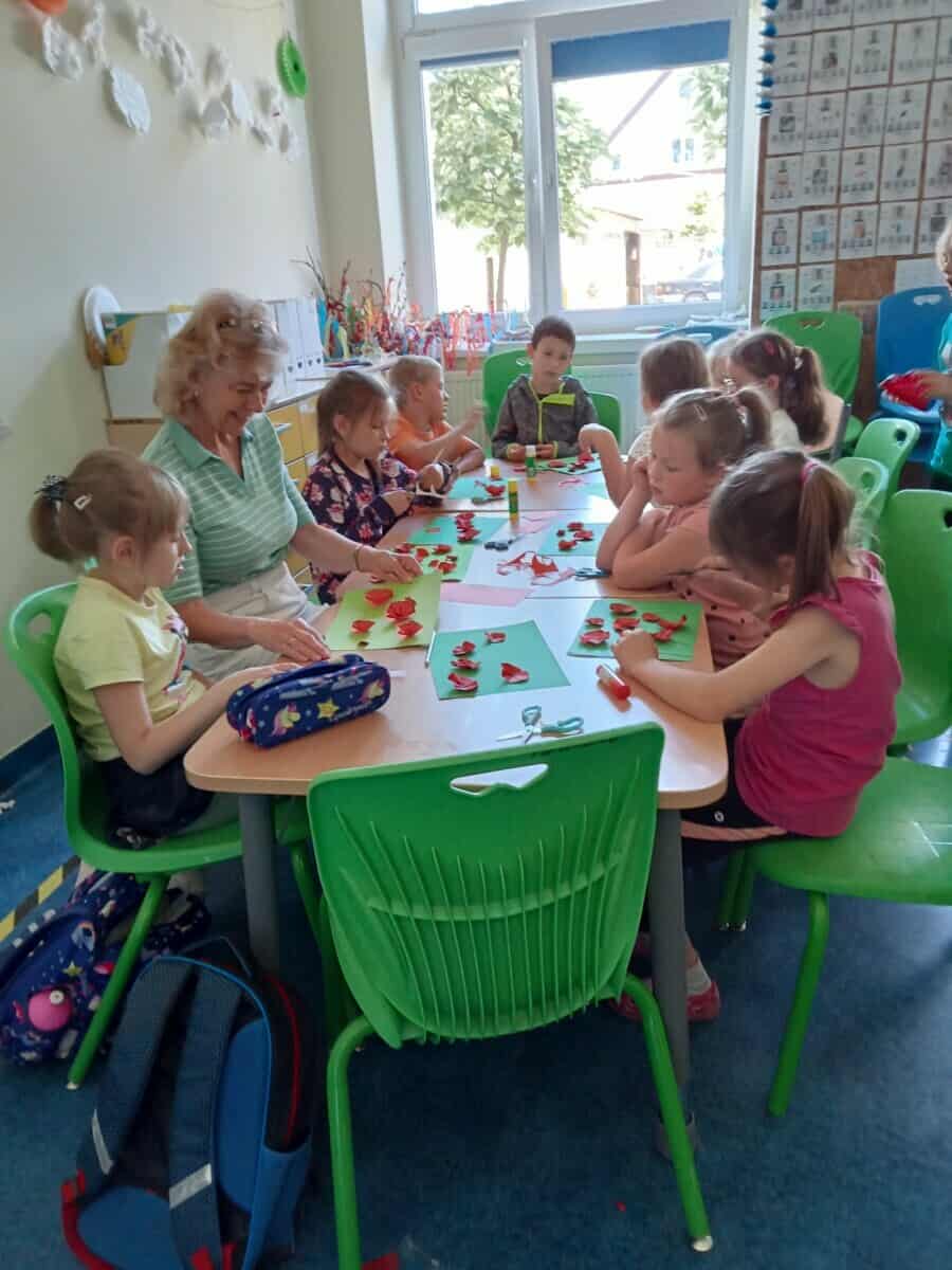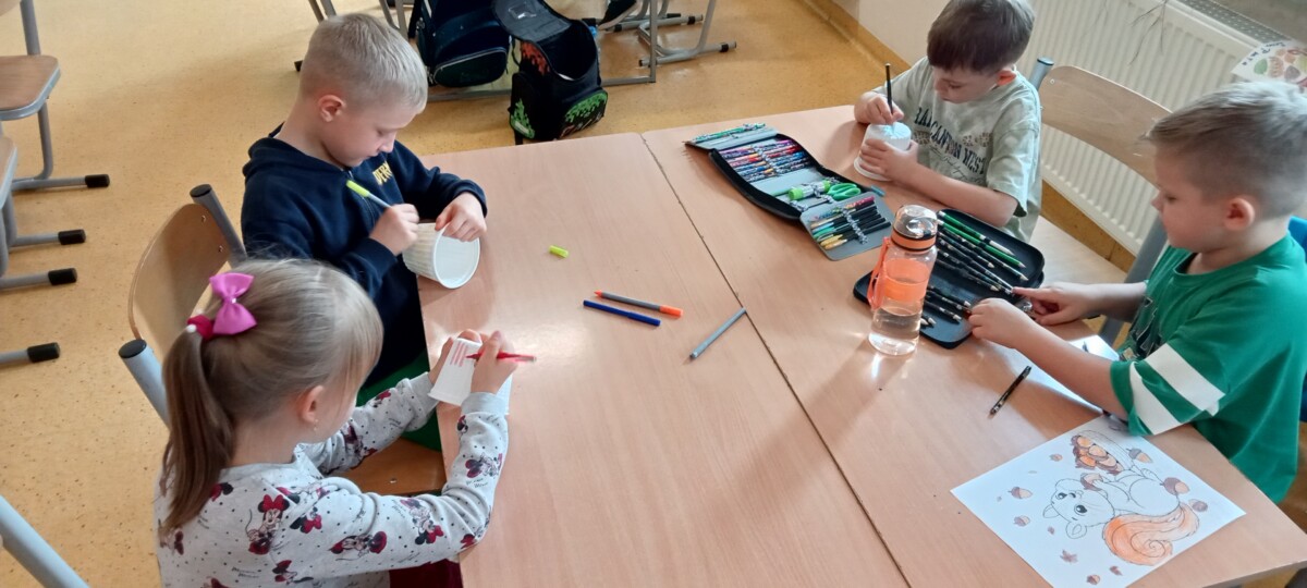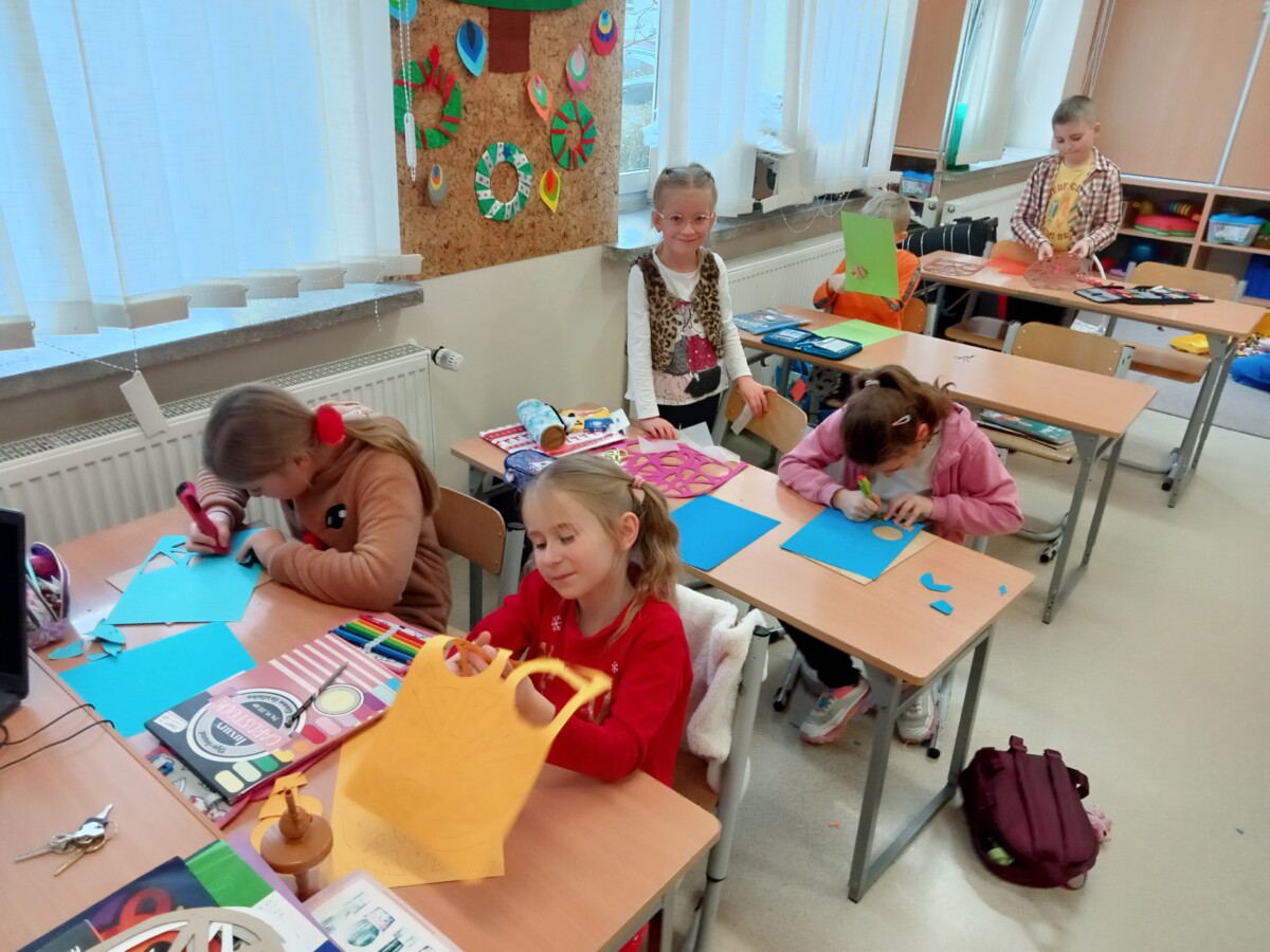Dzięki tej różnorodności każdy obraz był unikalny i odzwierciedlał indywidualne podejście dziecka do tematu. Dzieci pracowały z zaangażowaniem i radością, a efekty ich starań można podziwiać na wystawie prac plastycznych w świetlicy. Takie zajęcia nie tylko rozwijają umiejętności plastyczne uczniów, ale również uczą pracy w skupieniu, wytrwałości oraz czerpania satysfakcji z własnych osiągnięć.