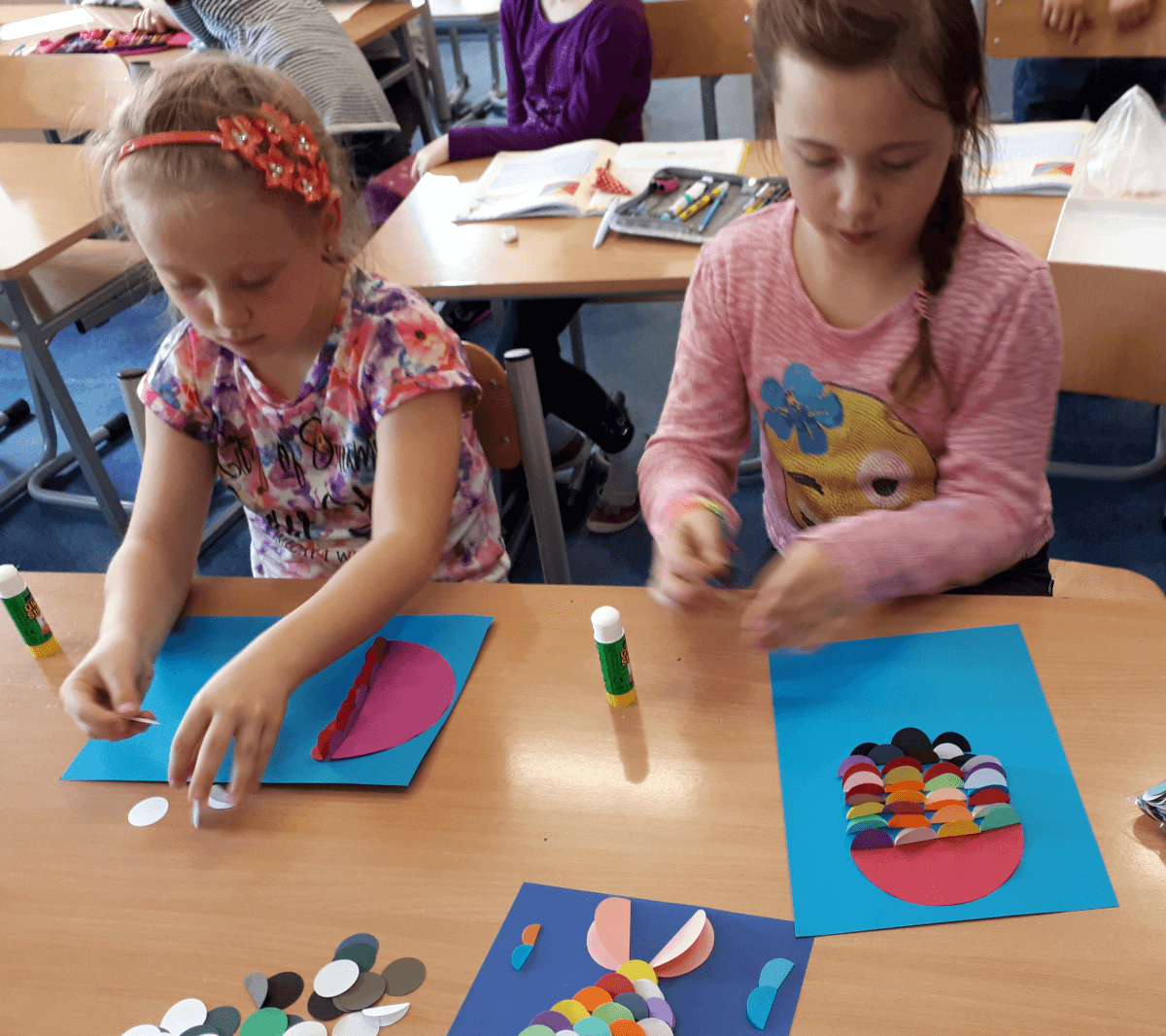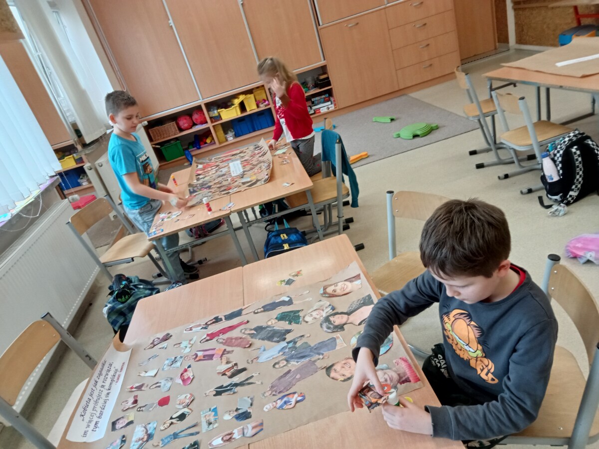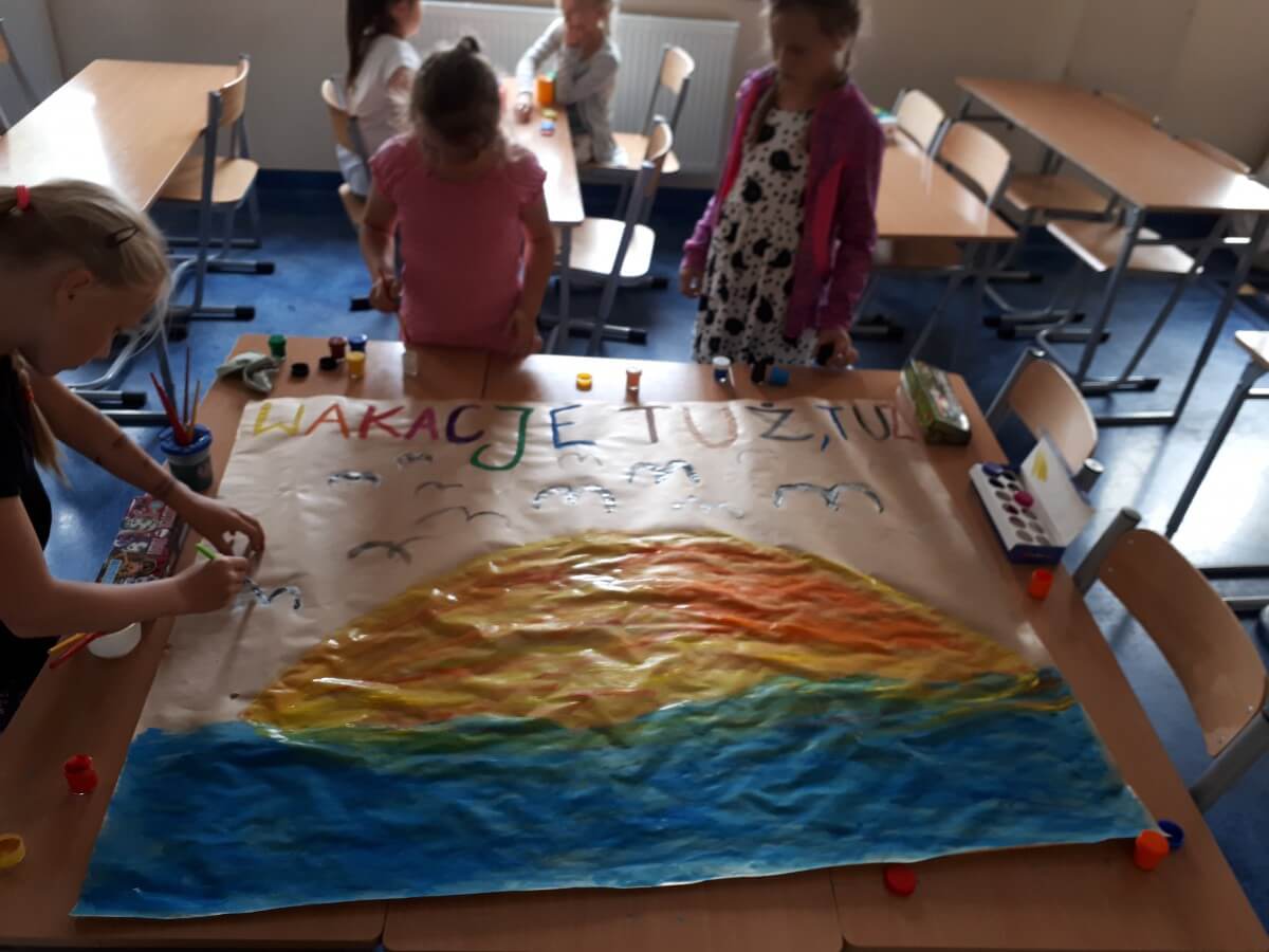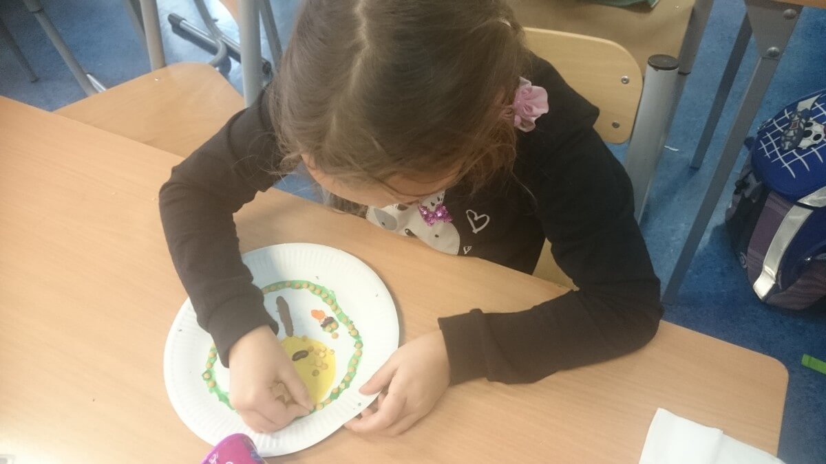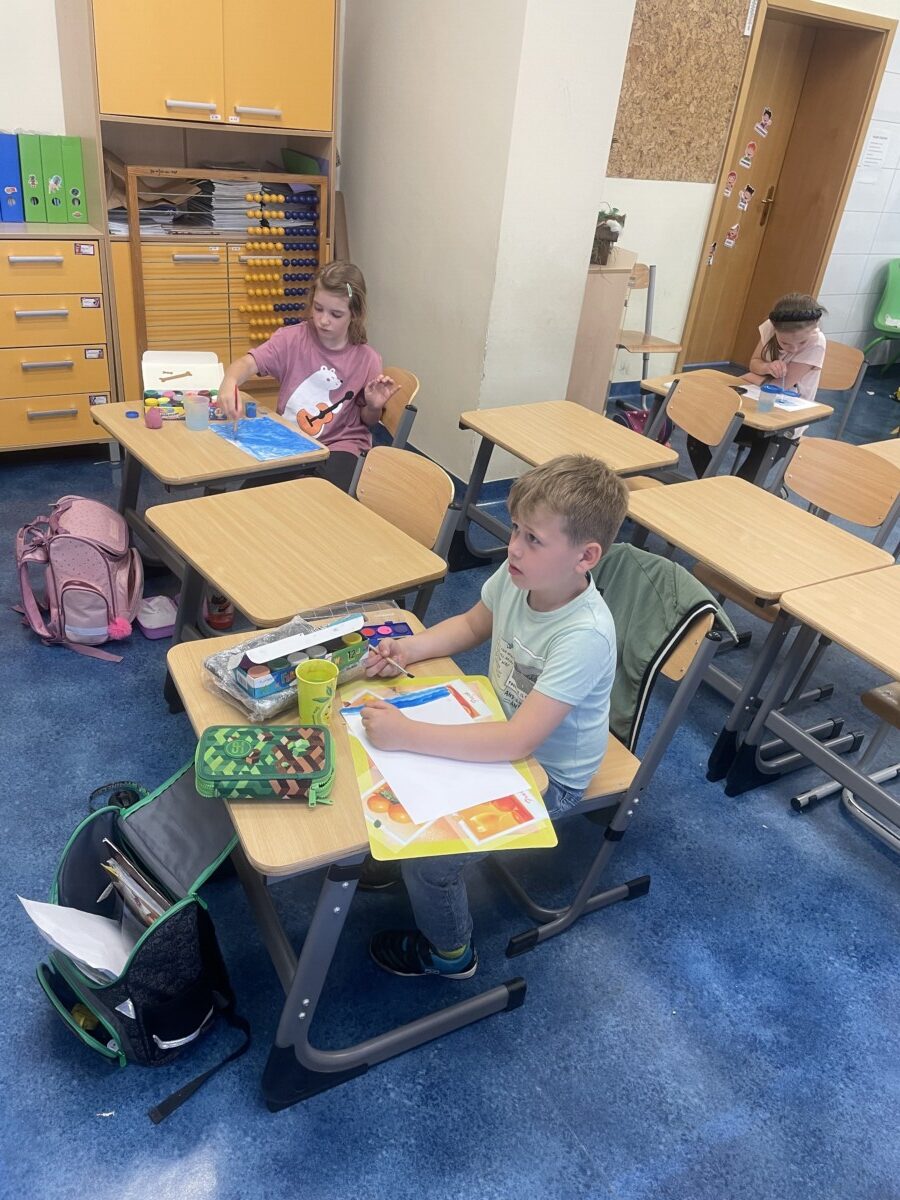 Dzięki tej różnorodności każdy obraz był unikalny i odzwierciedlał indywidualne podejście dziecka do tematu. Dzieci pracowały z zaangażowaniem i radością, a efekty ich starań można podziwiać na wystawie prac plastycznych w świetlicy. Takie zajęcia nie tylko rozwijają umiejętności plastyczne uczniów, ale również uczą pracy w skupieniu, wytrwałości oraz czerpania satysfakcji z własnych osiągnięć.