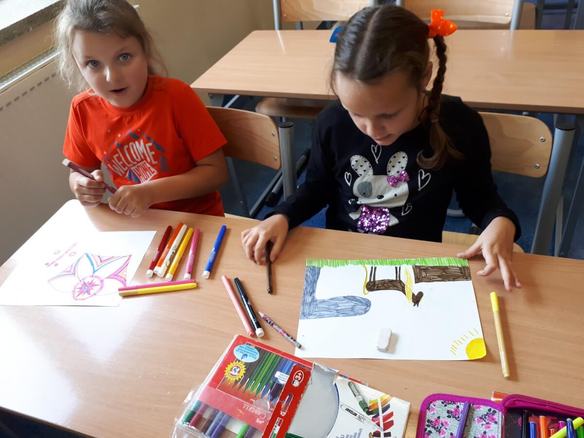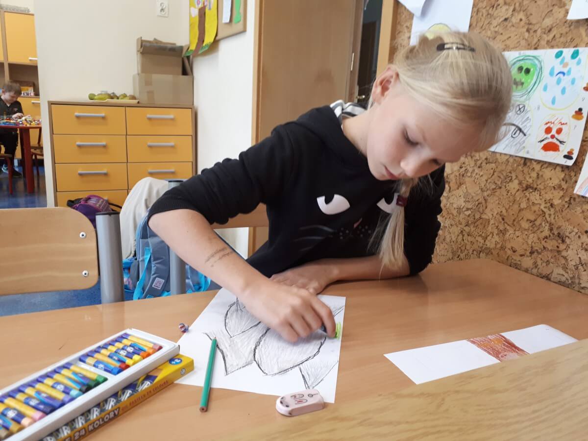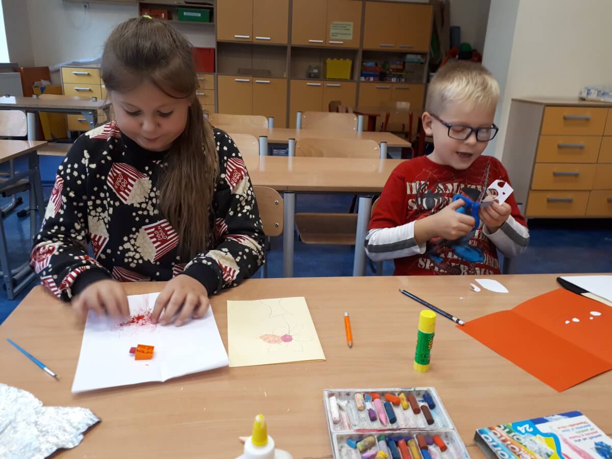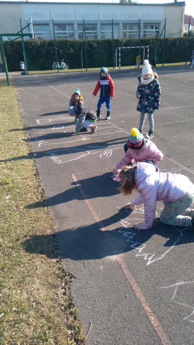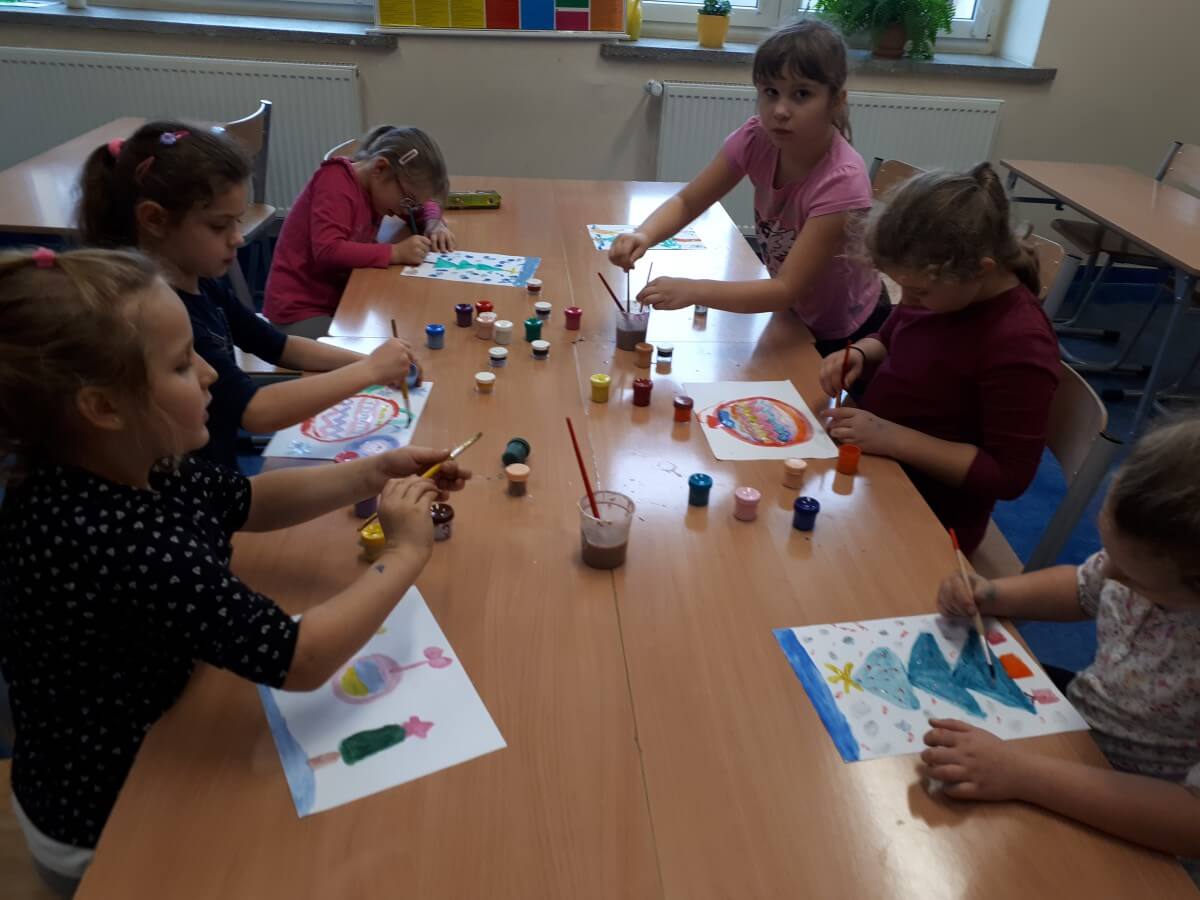 Oprócz aktywności fizycznych, na świetlicy szkolnej nie brakuje również kreatywnych zabaw, które rozwijają wyobraźnię i zdolności manualne dzieci. Malowanie kredą na chodniku, rysowanie na papierze, to tylko niektóre propozycje, które cieszą się dużym zainteresowaniem wśród uczniów.