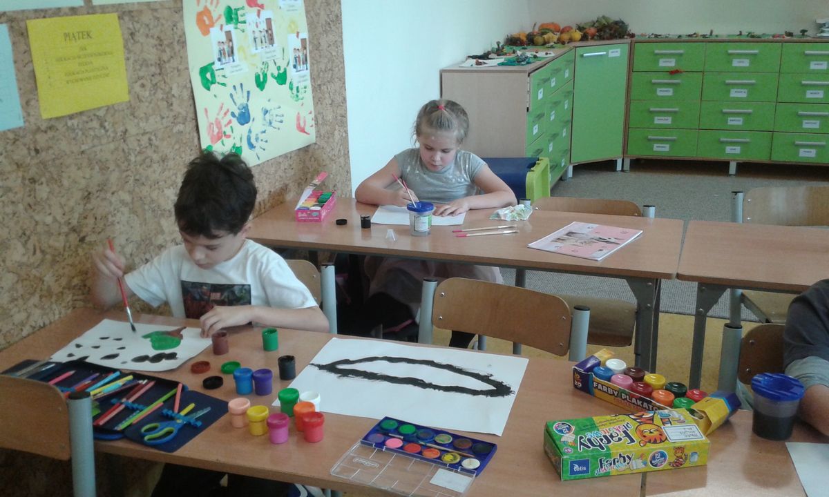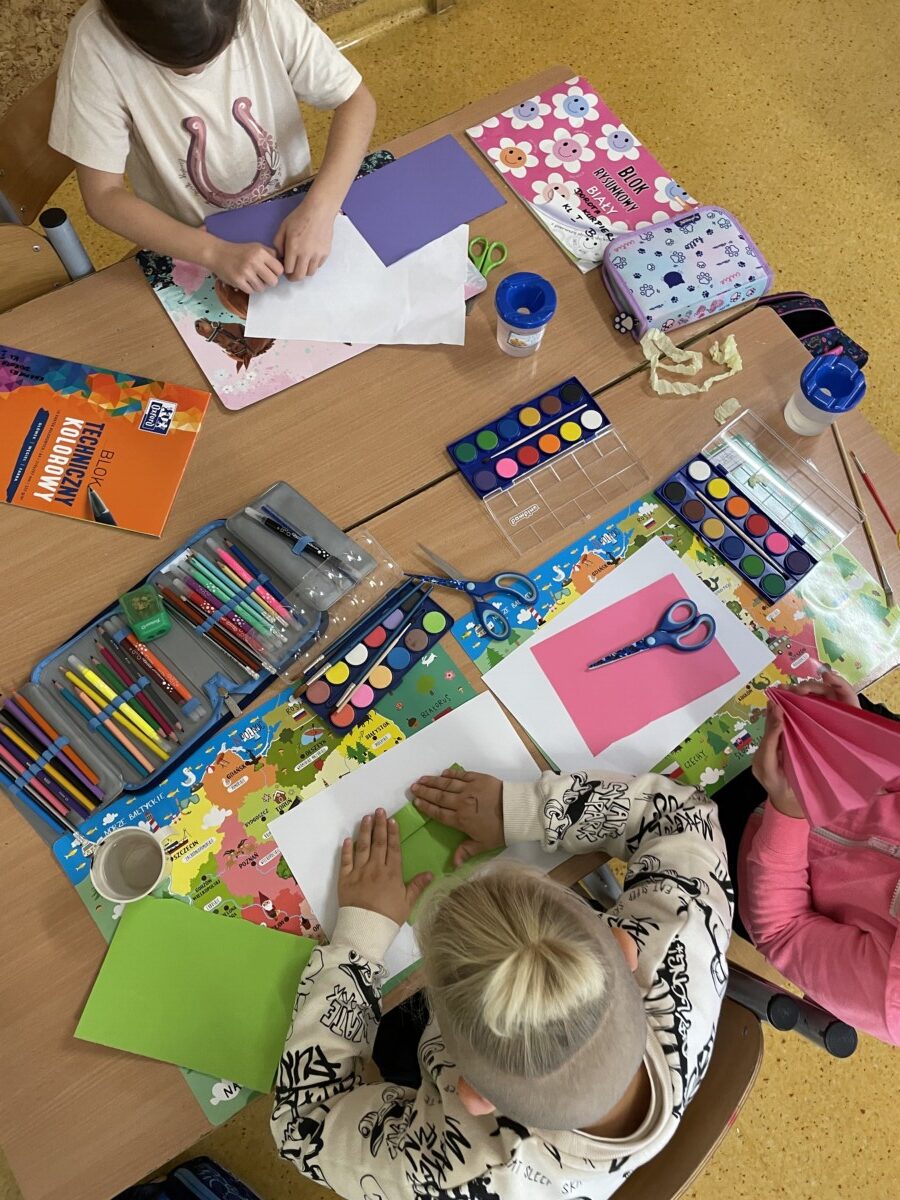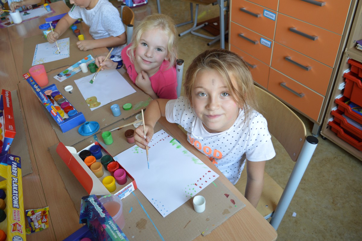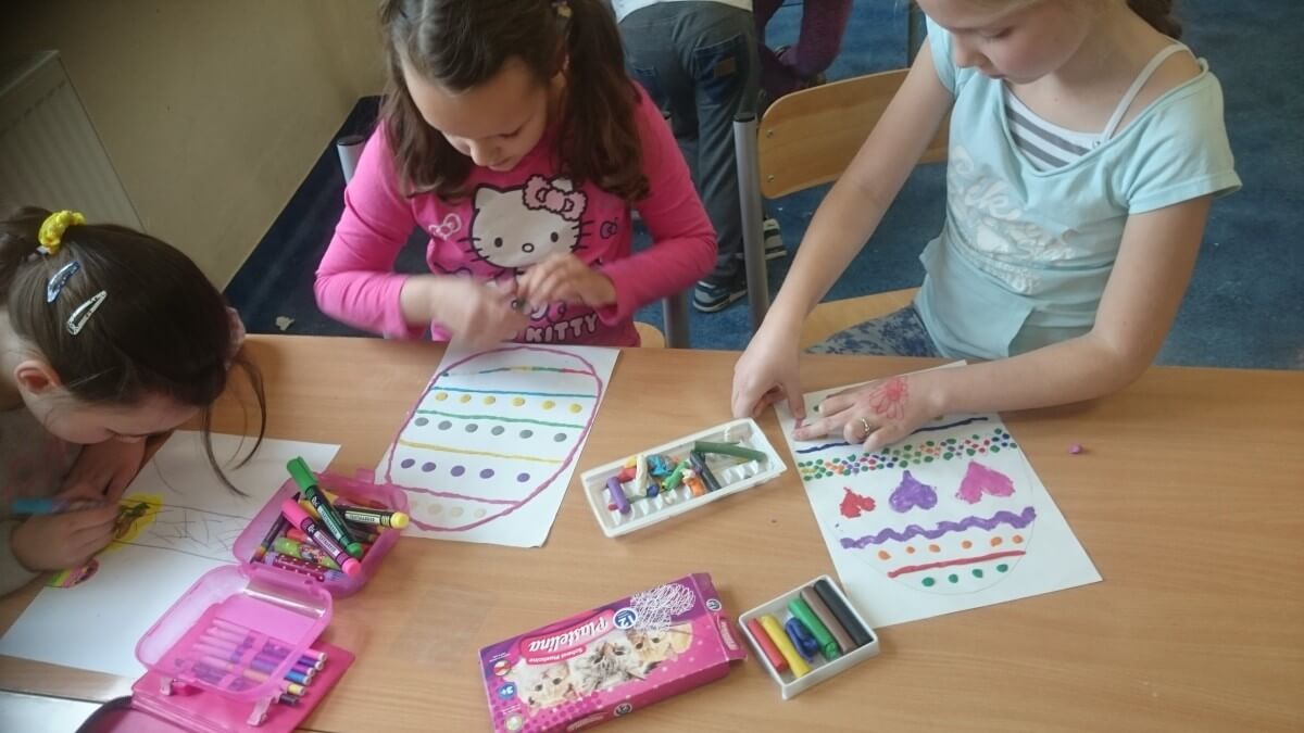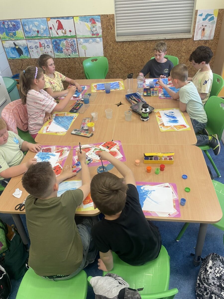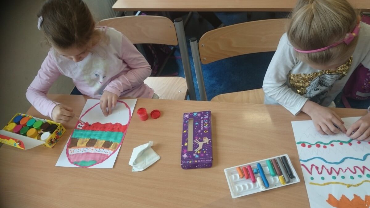 Oprócz aktywności fizycznych, na świetlicy szkolnej nie brakuje również kreatywnych zabaw, które rozwijają wyobraźnię i zdolności manualne dzieci. Malowanie kredą na chodniku, rysowanie na papierze, to tylko niektóre propozycje, które cieszą się dużym zainteresowaniem wśród uczniów.