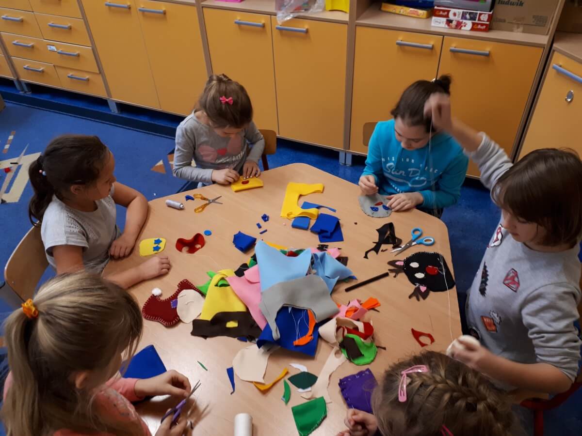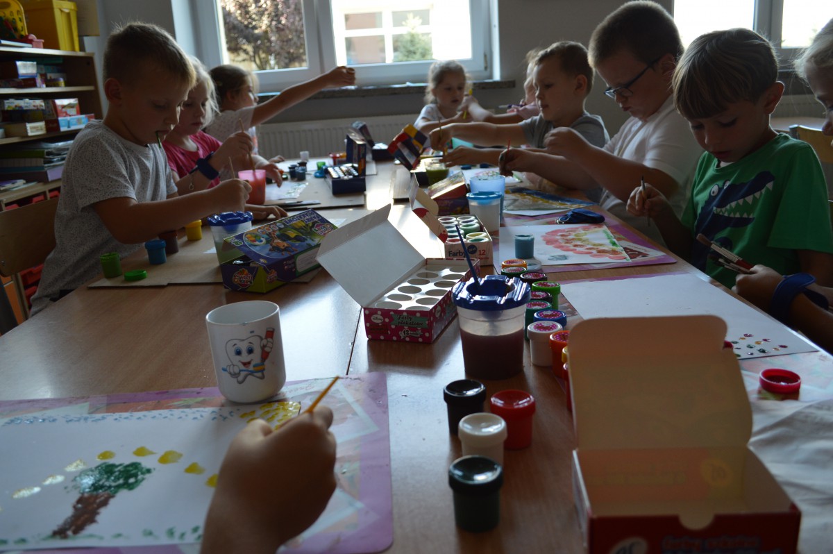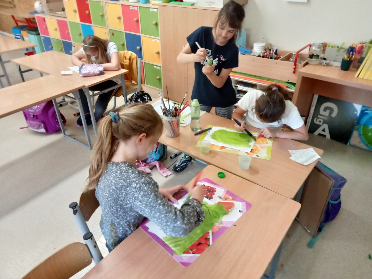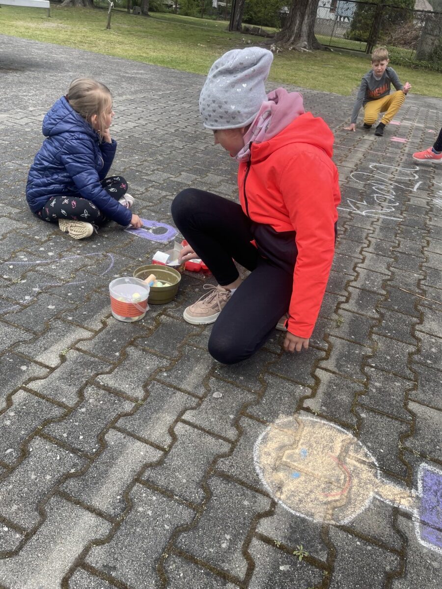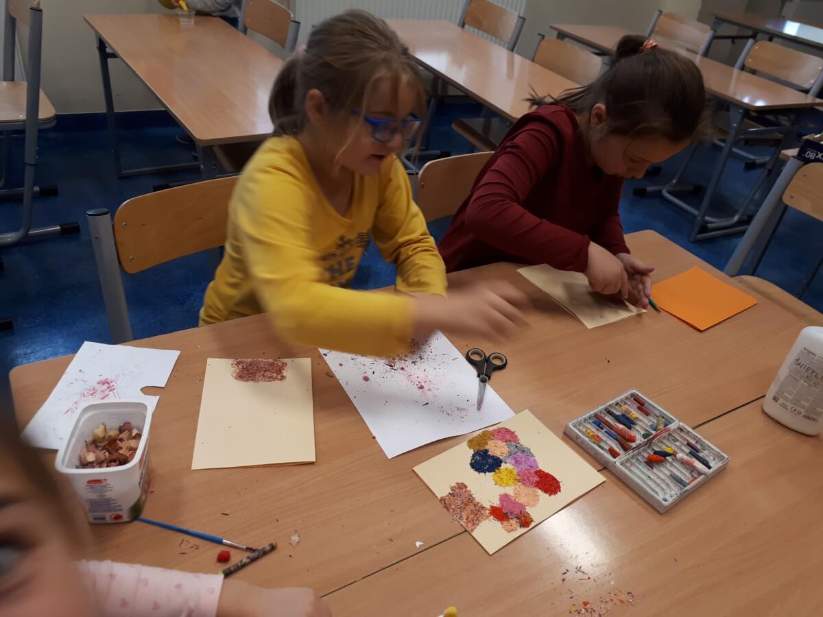 Oprócz aktywności fizycznych, na świetlicy szkolnej nie brakuje również kreatywnych zabaw, które rozwijają wyobraźnię i zdolności manualne dzieci. Malowanie kredą na chodniku, rysowanie na papierze, to tylko niektóre propozycje, które cieszą się dużym zainteresowaniem wśród uczniów.