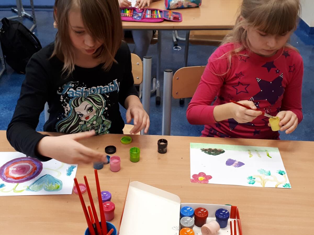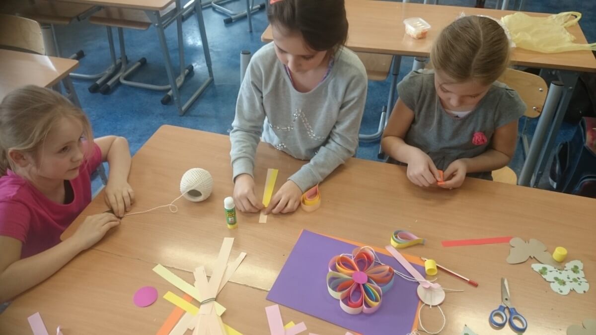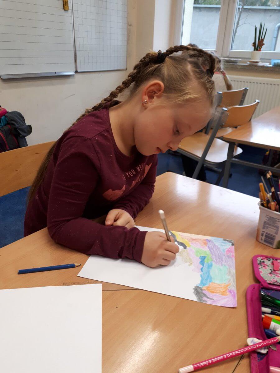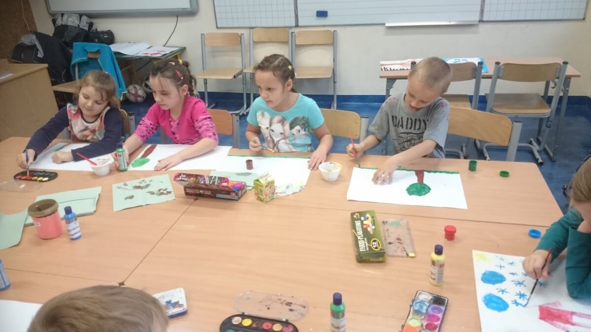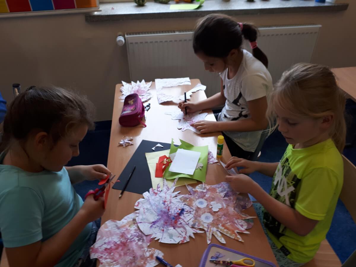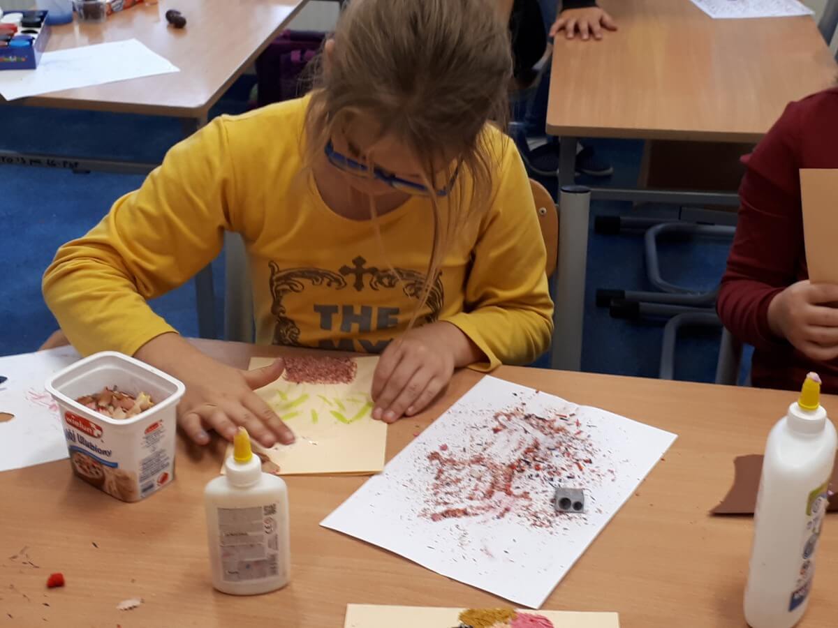 Oprócz aktywności fizycznych, na świetlicy szkolnej nie brakuje również kreatywnych zabaw, które rozwijają wyobraźnię i zdolności manualne dzieci. Malowanie kredą na chodniku, rysowanie na papierze, to tylko niektóre propozycje, które cieszą się dużym zainteresowaniem wśród uczniów.