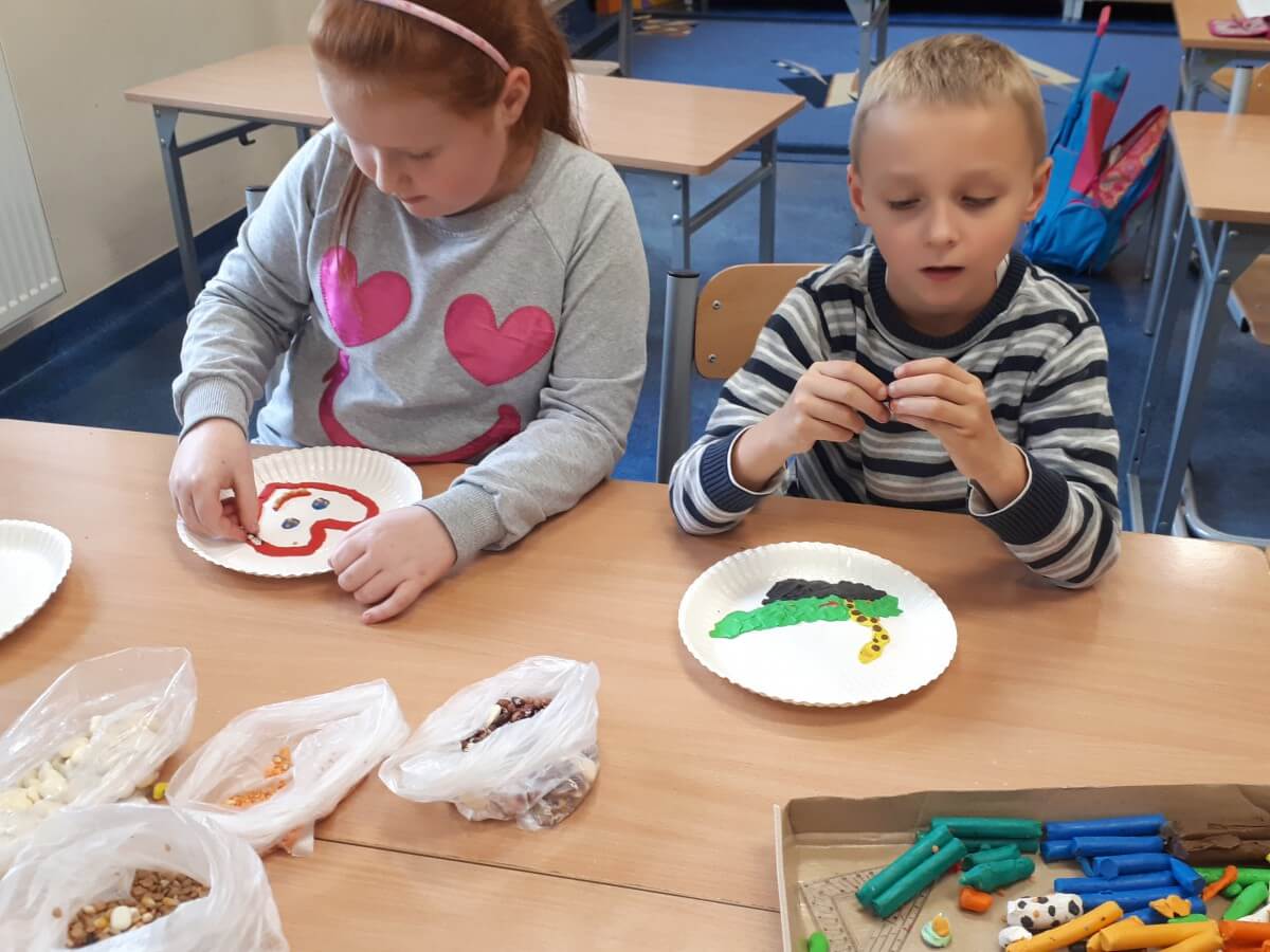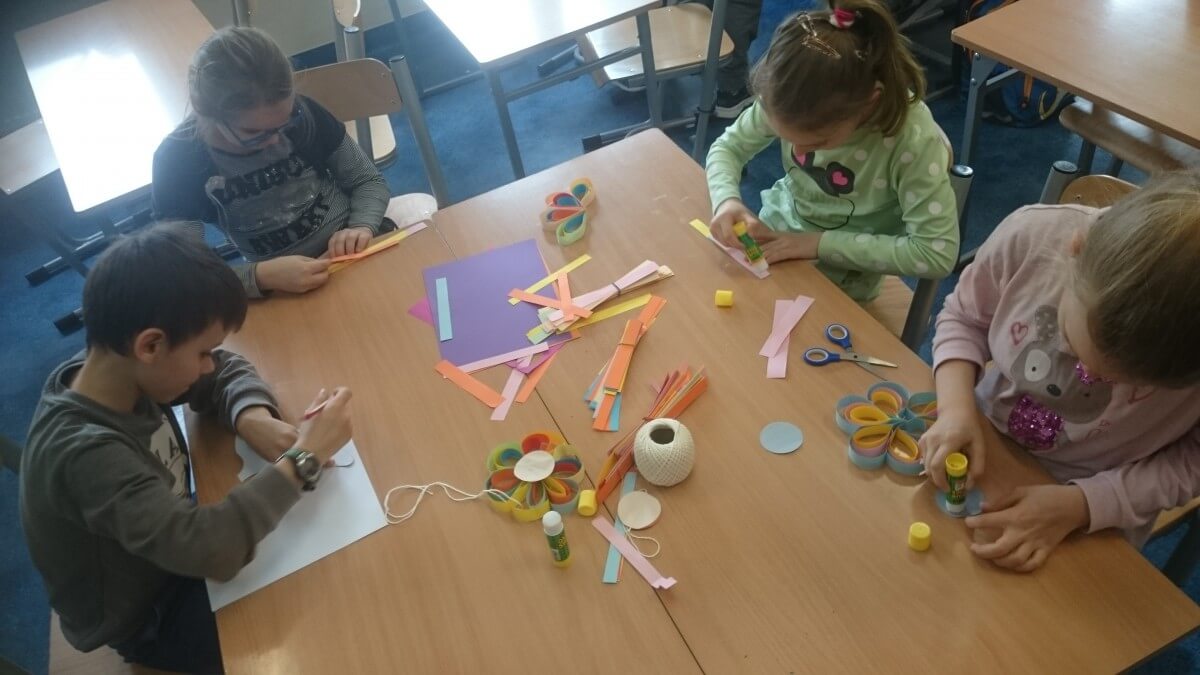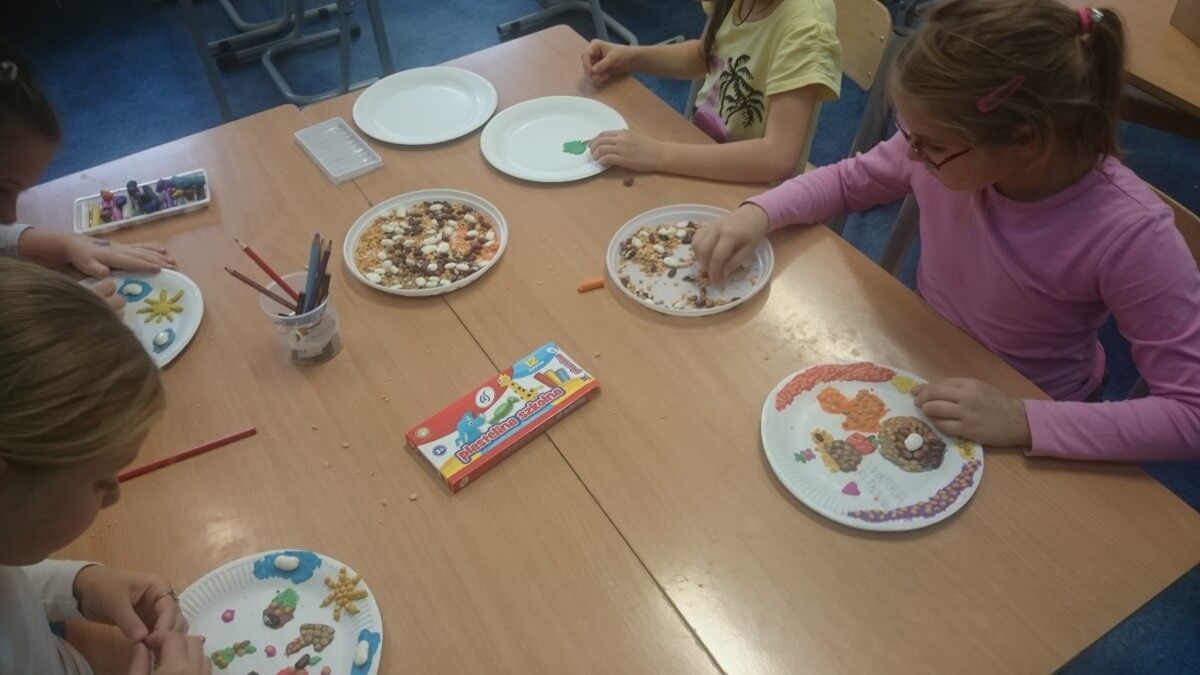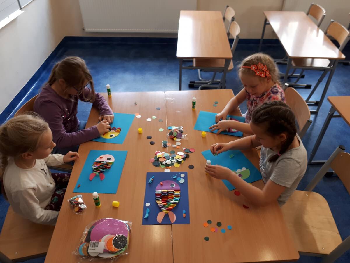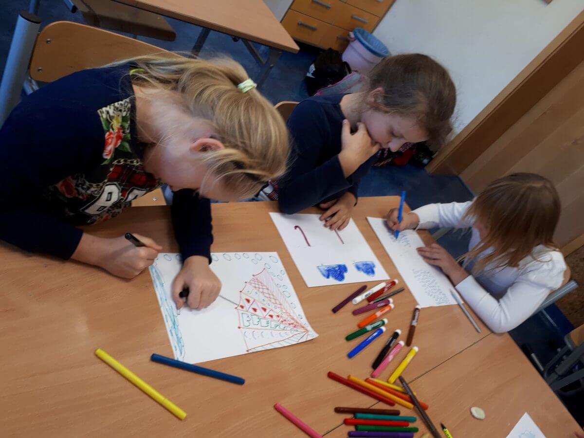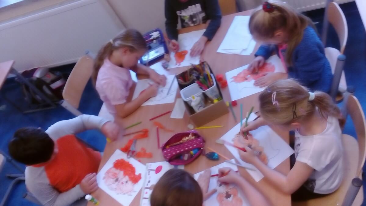 Oprócz aktywności fizycznych, na świetlicy szkolnej nie brakuje również kreatywnych zabaw, które rozwijają wyobraźnię i zdolności manualne dzieci. Malowanie kredą na chodniku, rysowanie na papierze, to tylko niektóre propozycje, które cieszą się dużym zainteresowaniem wśród uczniów.