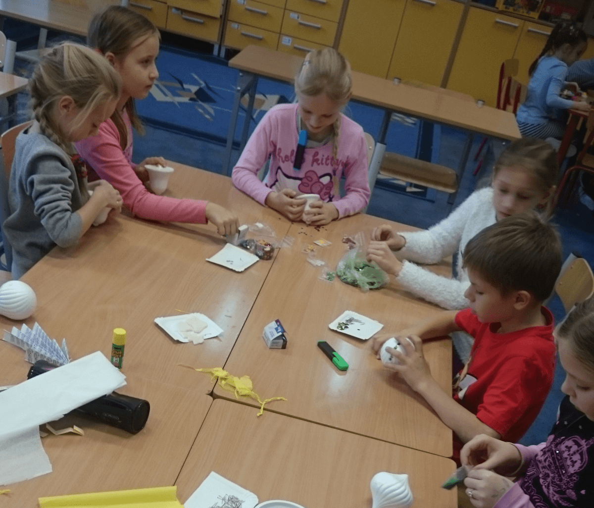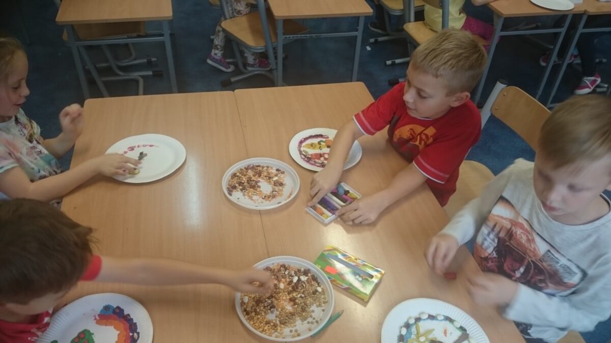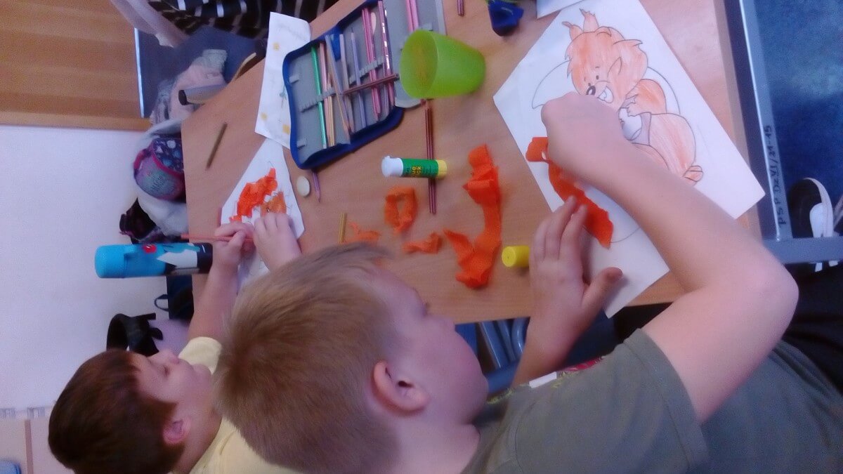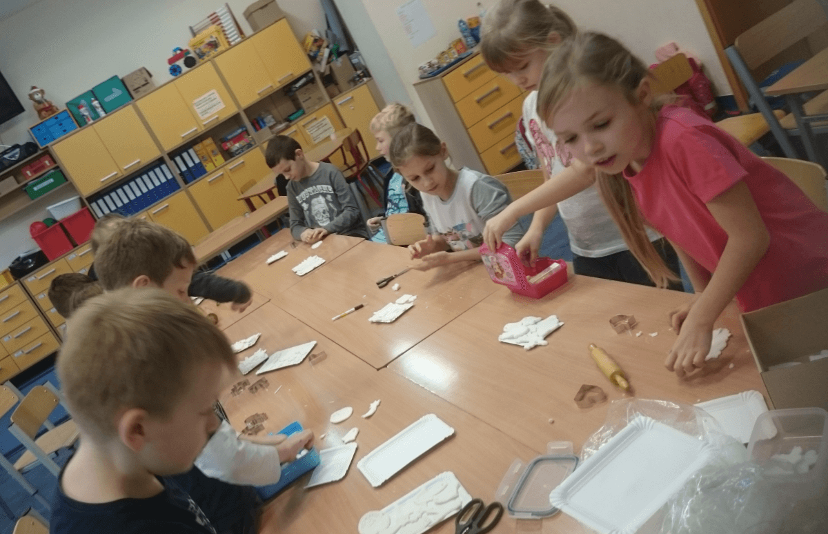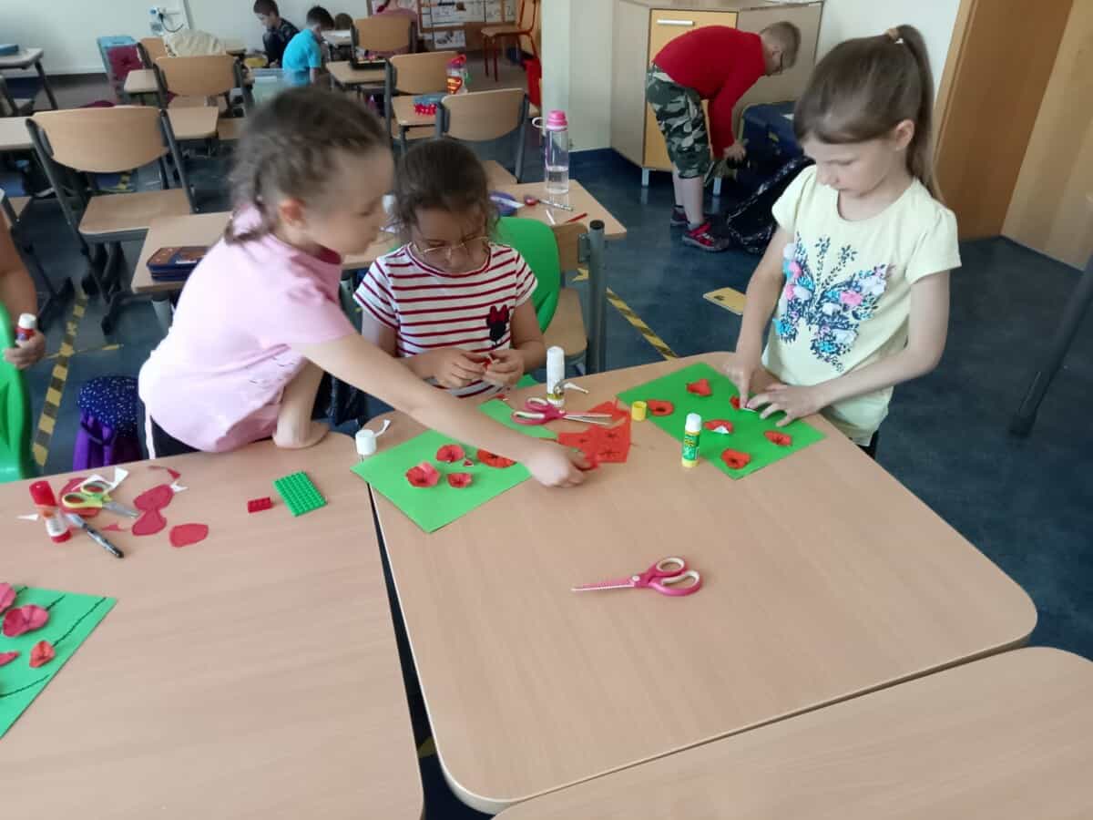 Oprócz aktywności fizycznych, na świetlicy szkolnej nie brakuje również kreatywnych zabaw, które rozwijają wyobraźnię i zdolności manualne dzieci. Malowanie kredą na chodniku, rysowanie na papierze, to tylko niektóre propozycje, które cieszą się dużym zainteresowaniem wśród uczniów.