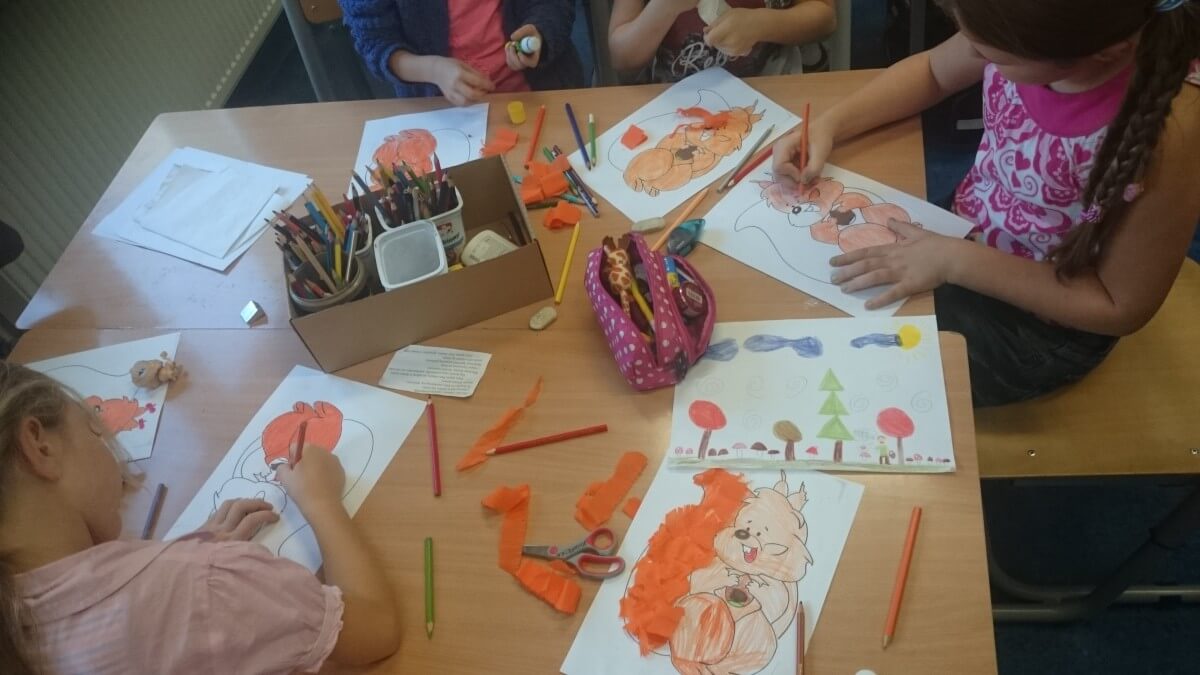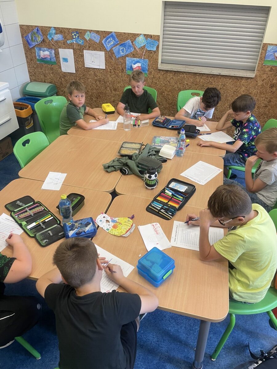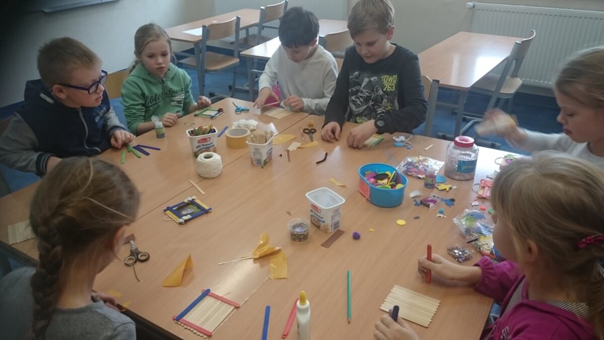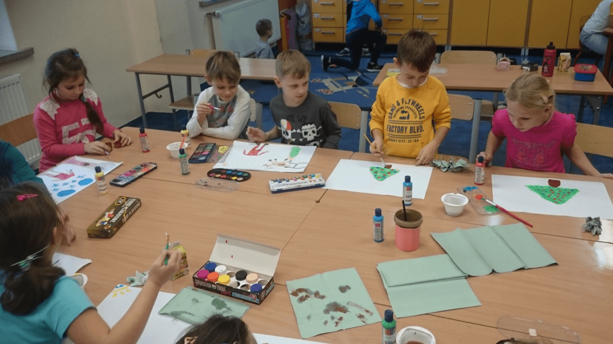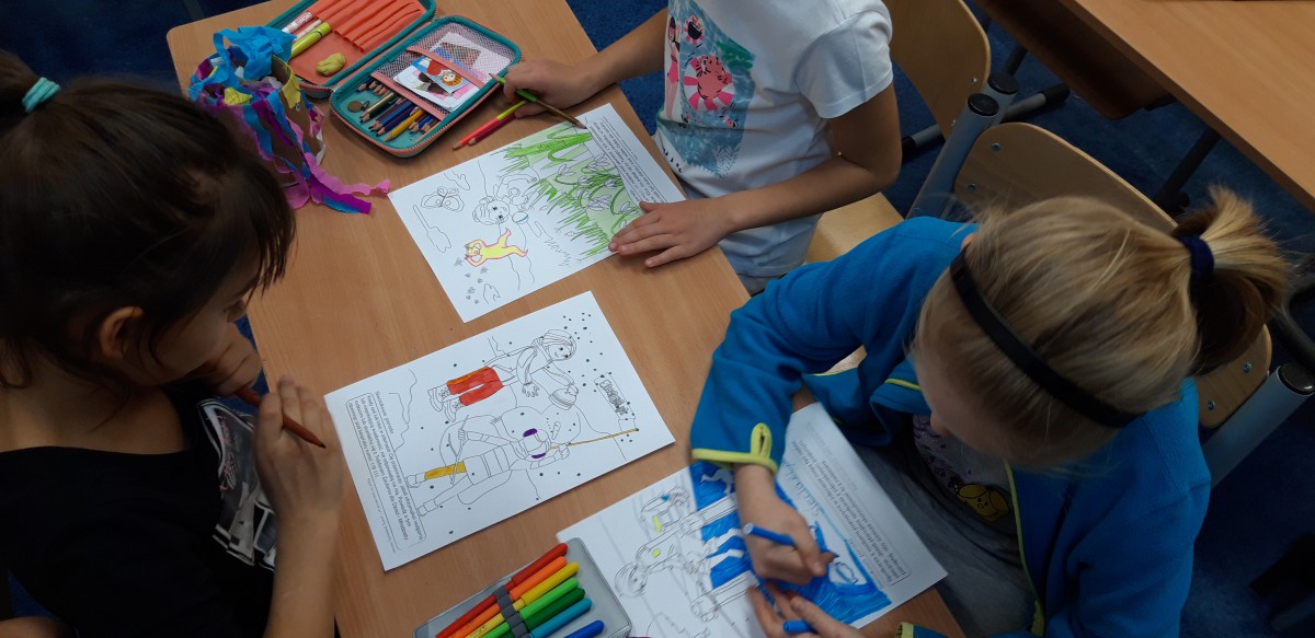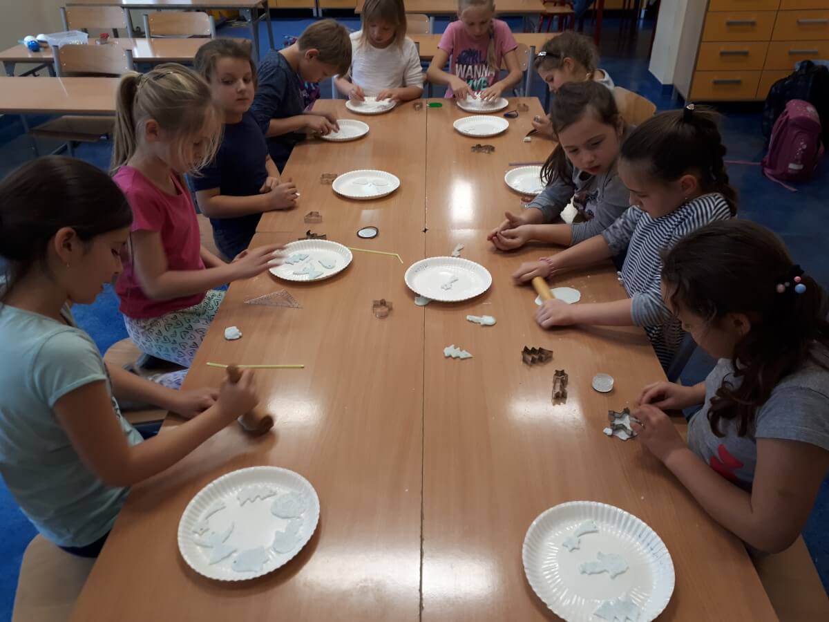 Oprócz aktywności fizycznych, na świetlicy szkolnej nie brakuje również kreatywnych zabaw, które rozwijają wyobraźnię i zdolności manualne dzieci. Malowanie kredą na chodniku, rysowanie na papierze, to tylko niektóre propozycje, które cieszą się dużym zainteresowaniem wśród uczniów.