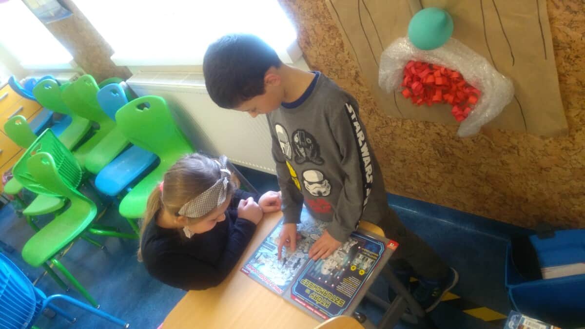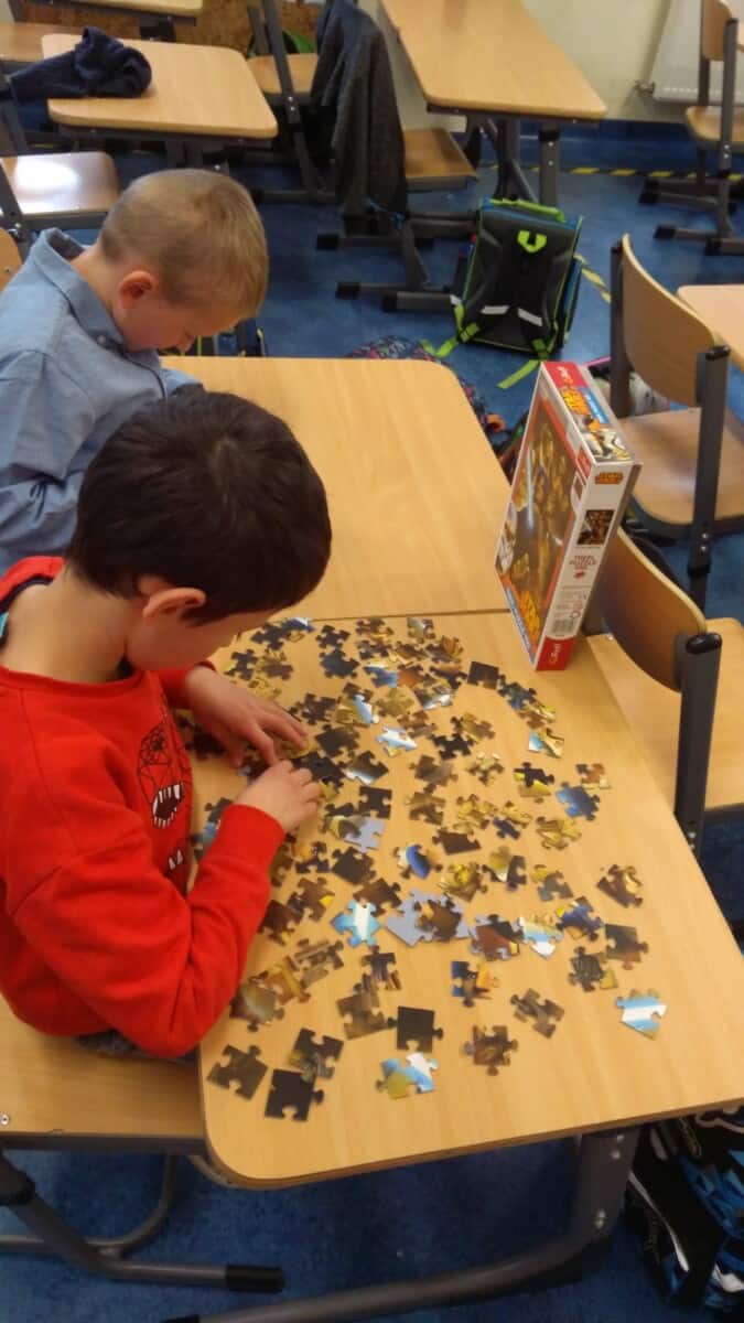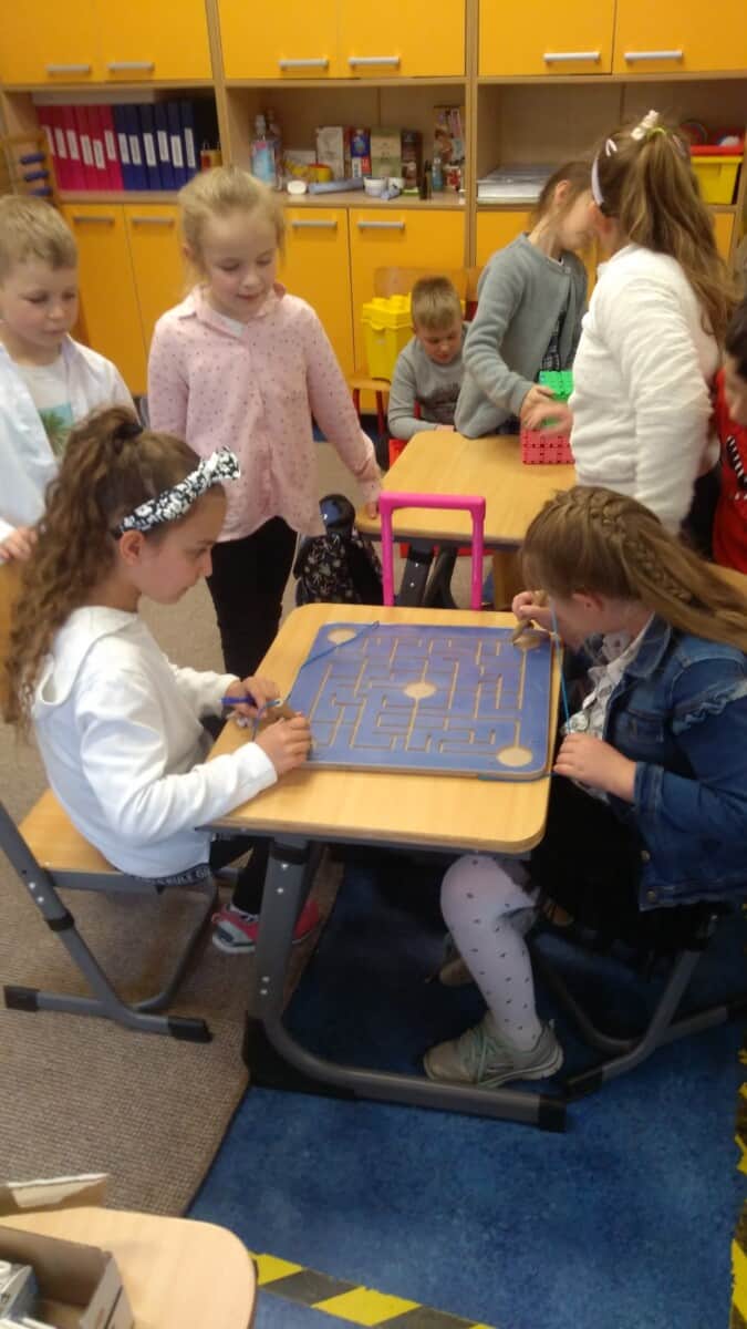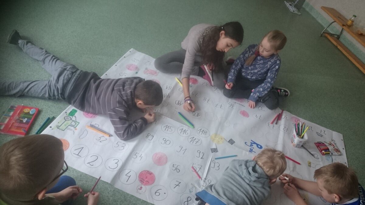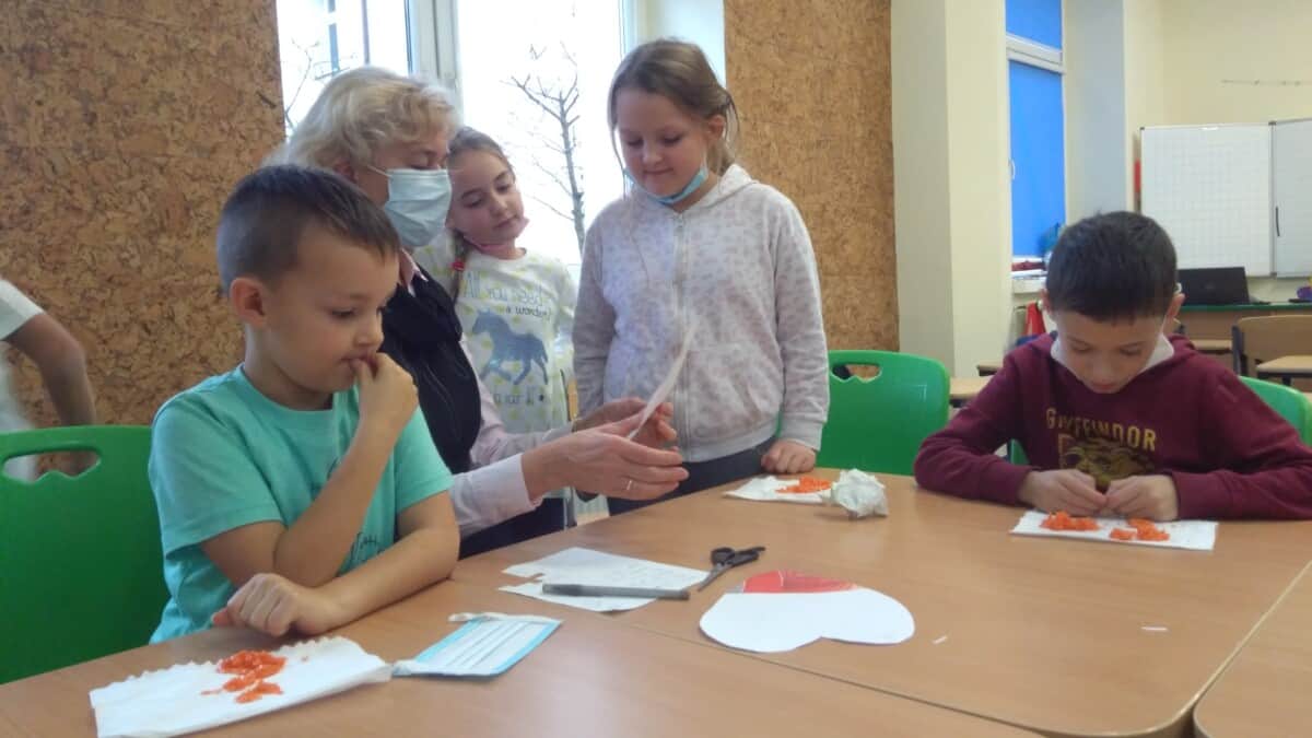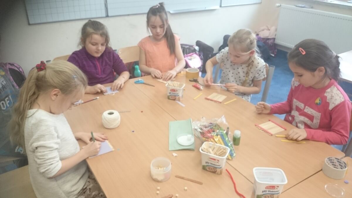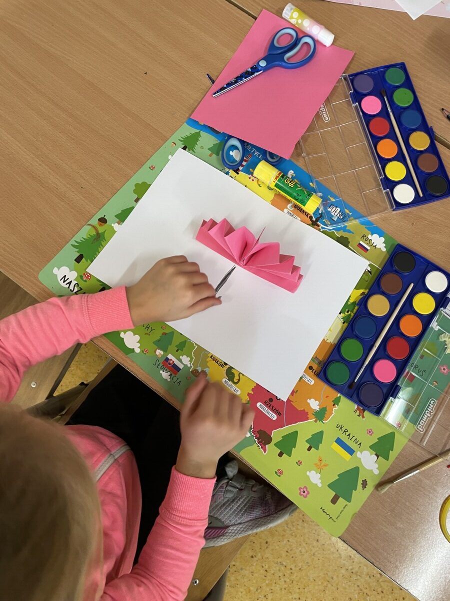 Oprócz aktywności fizycznych, na świetlicy szkolnej nie brakuje również kreatywnych zabaw, które rozwijają wyobraźnię i zdolności manualne dzieci. Malowanie kredą na chodniku, rysowanie na papierze, to tylko niektóre propozycje, które cieszą się dużym zainteresowaniem wśród uczniów.