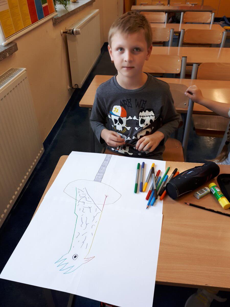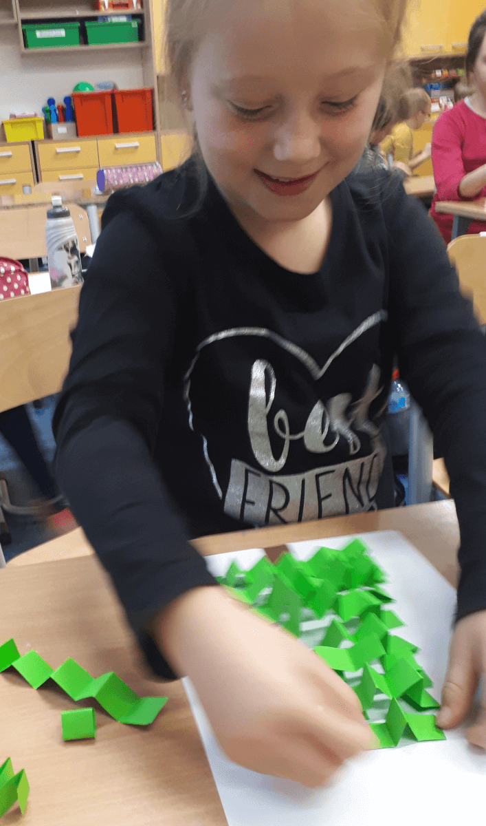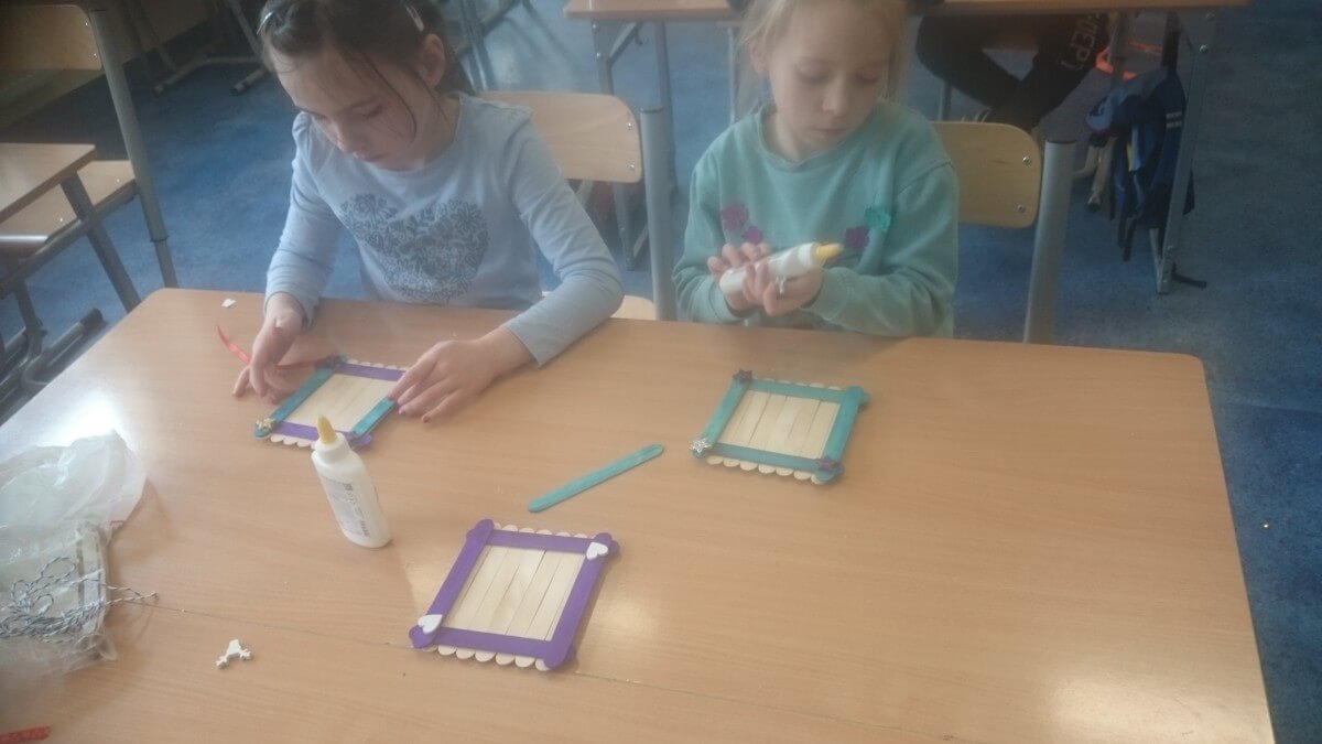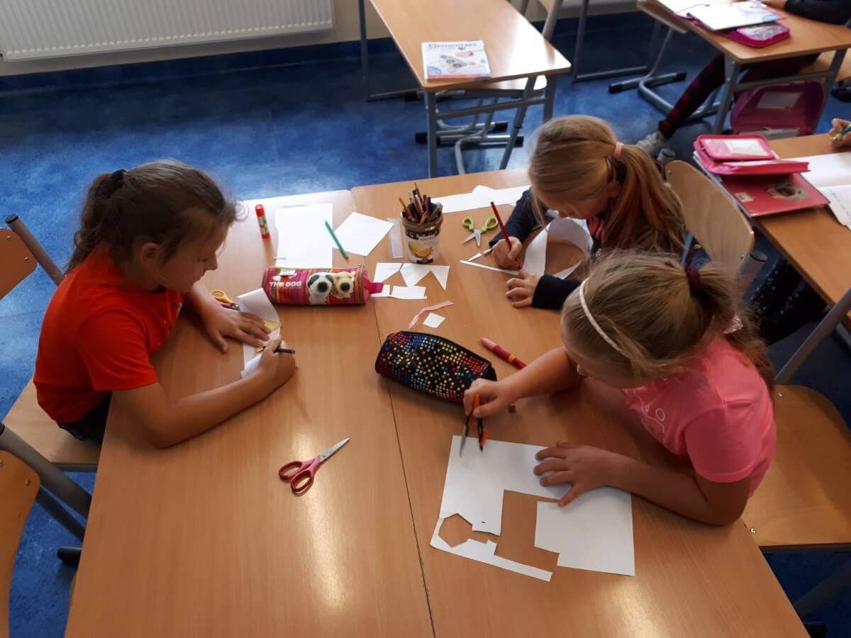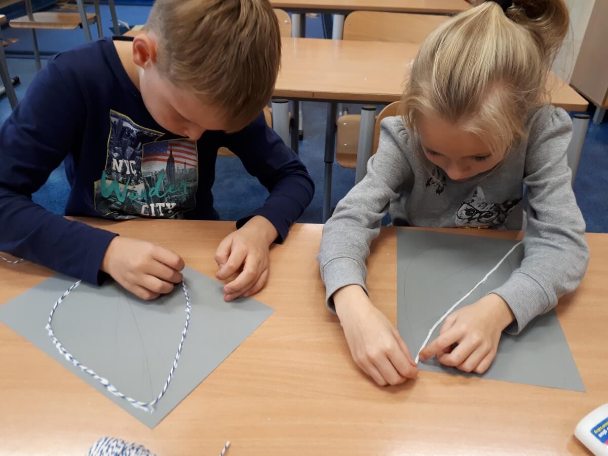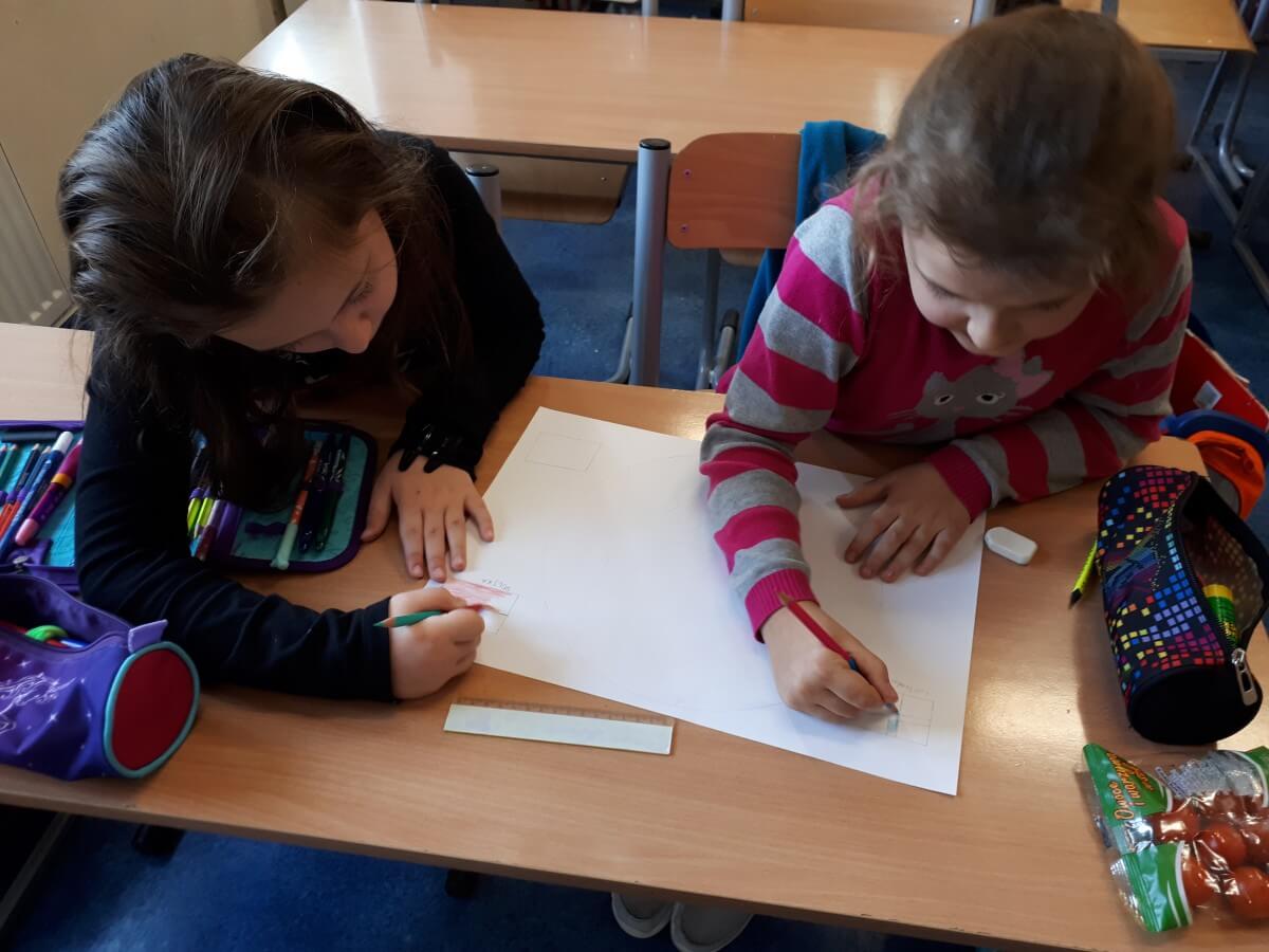 W ramach kolejnych zajęć kształtujących kreatywność uczniowie tym razem wykonywali kolorowe szachownice. To tego zadania wykorzystywali szablon kratki szachownicy, kolorowy papier, klej i nożyczki. Pod koniec lekcji wyszły tęczowe szachownice.