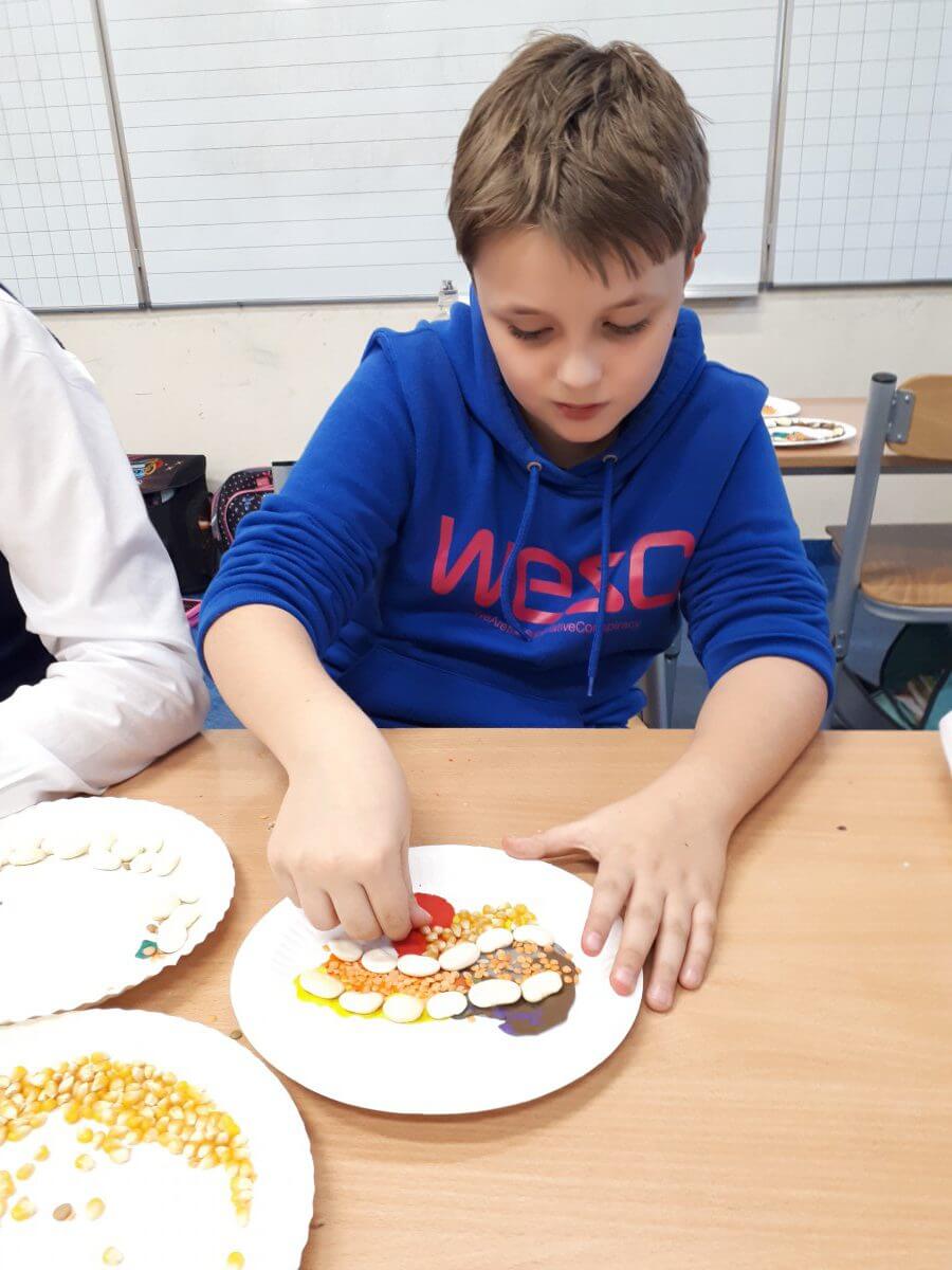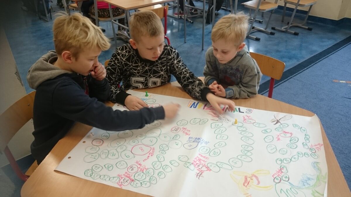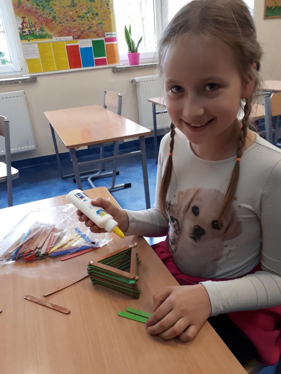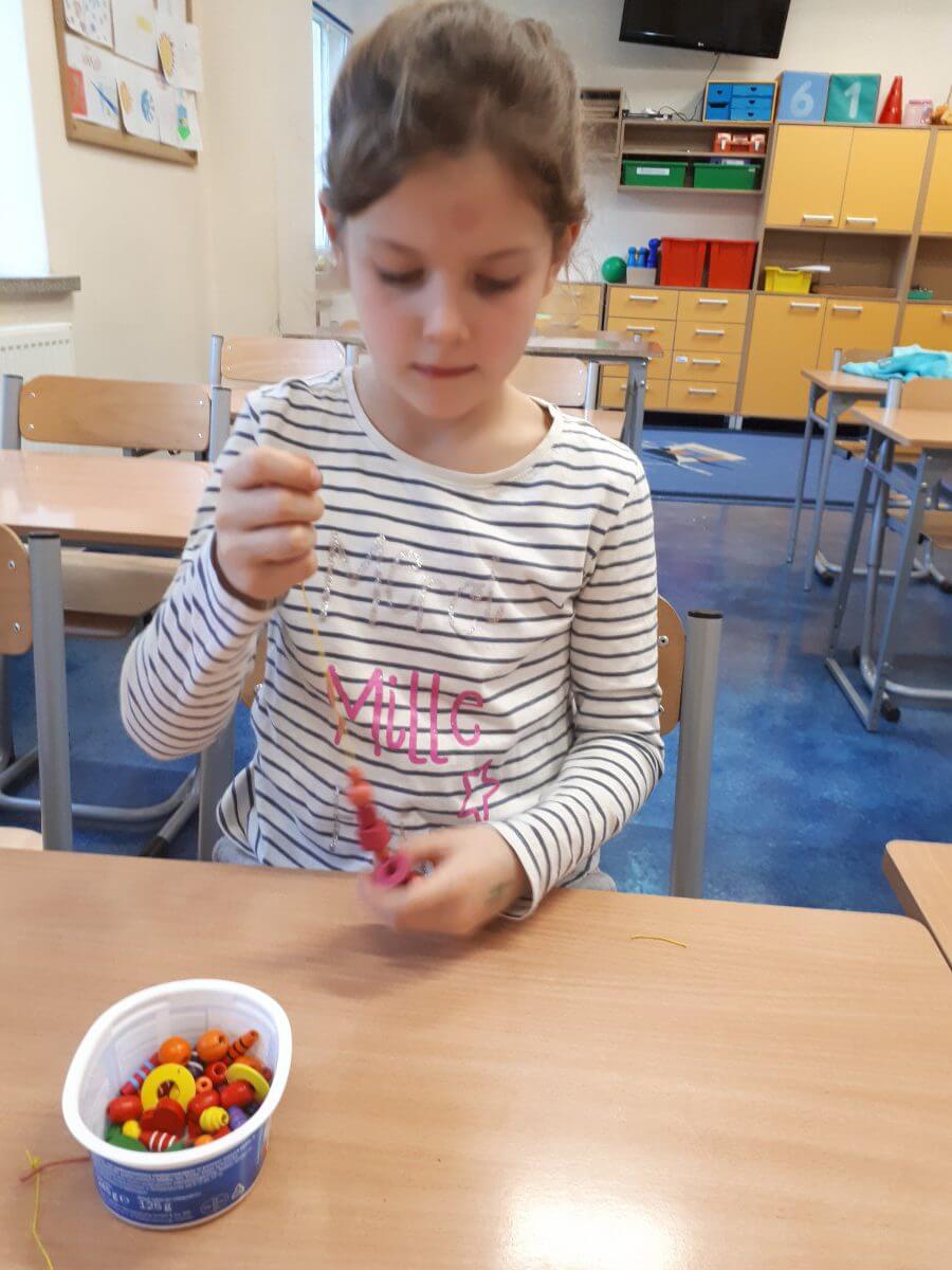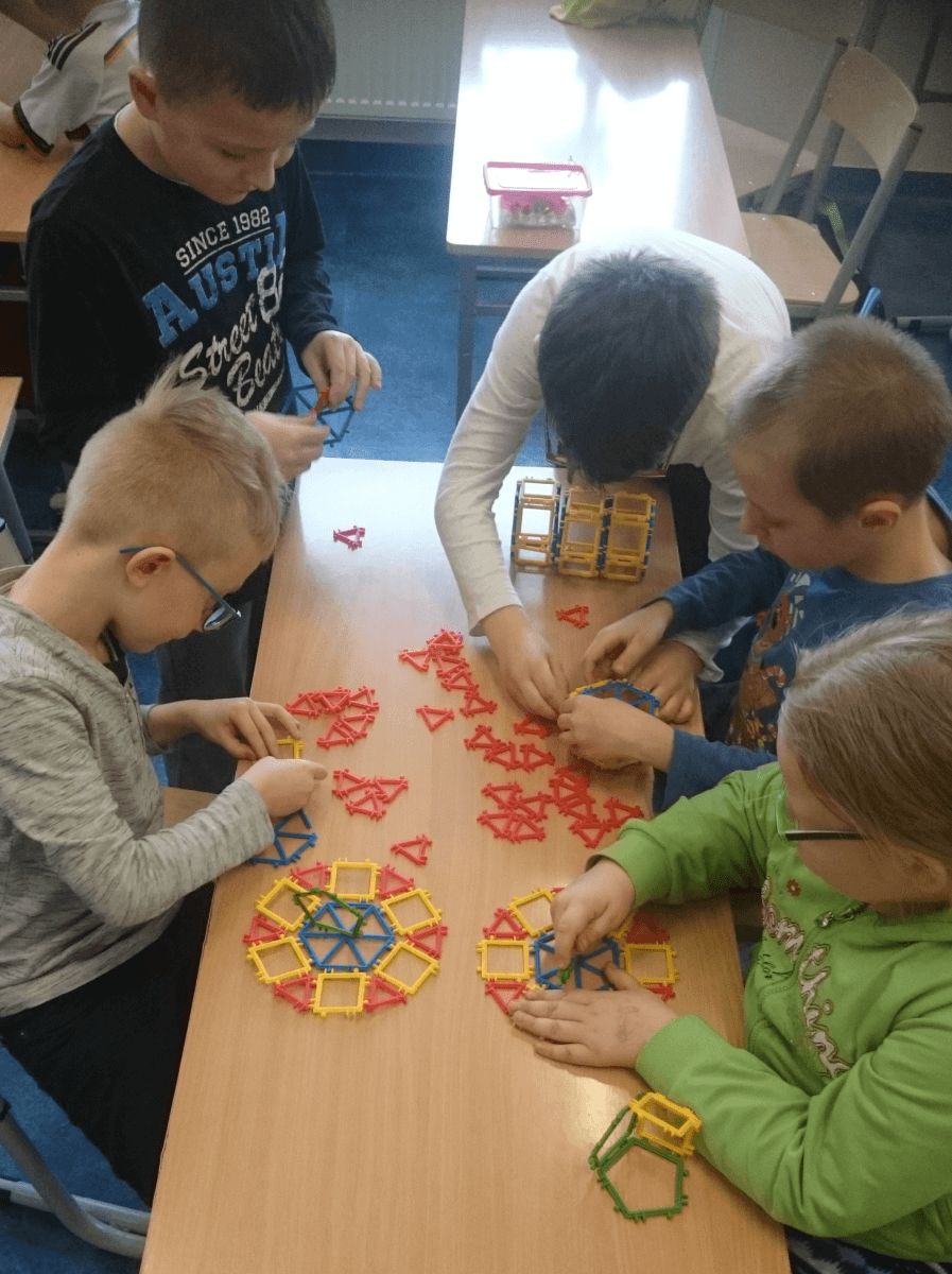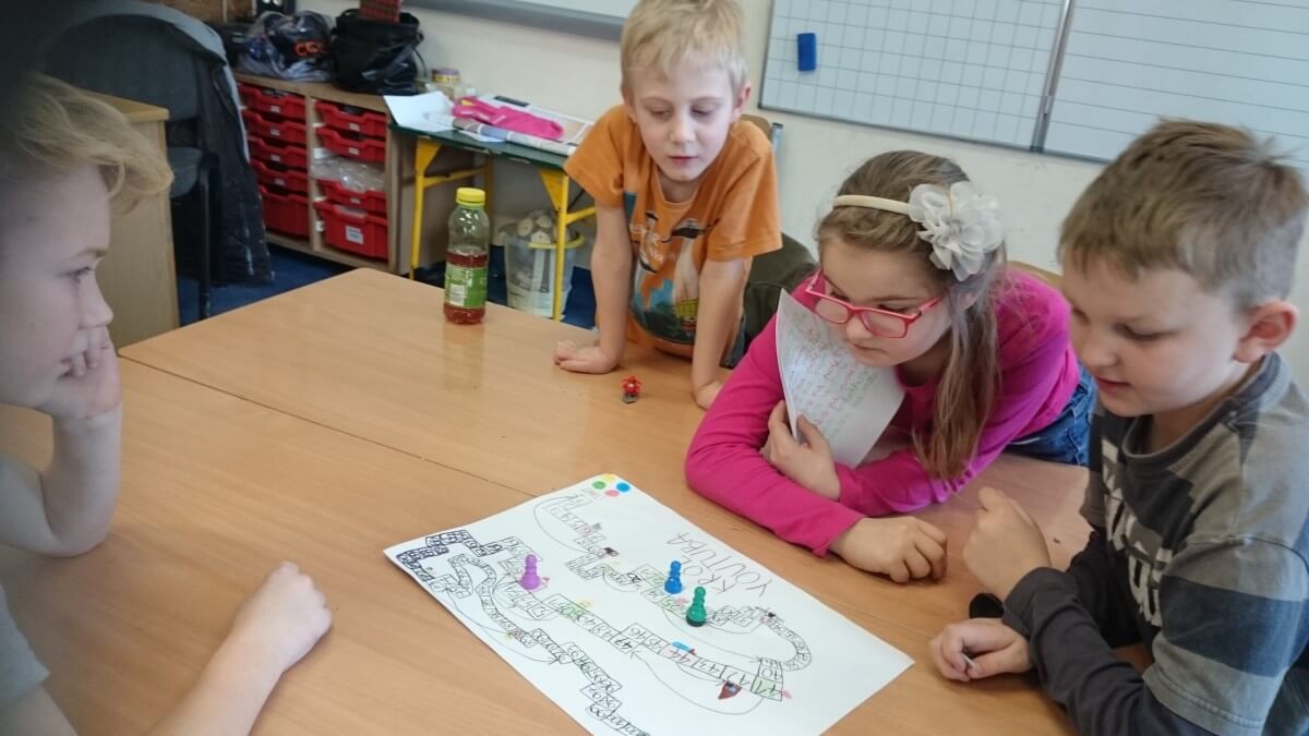 W ramach kolejnych zajęć kształtujących kreatywność uczniowie tym razem wykonywali kolorowe szachownice. To tego zadania wykorzystywali szablon kratki szachownicy, kolorowy papier, klej i nożyczki. Pod koniec lekcji wyszły tęczowe szachownice.