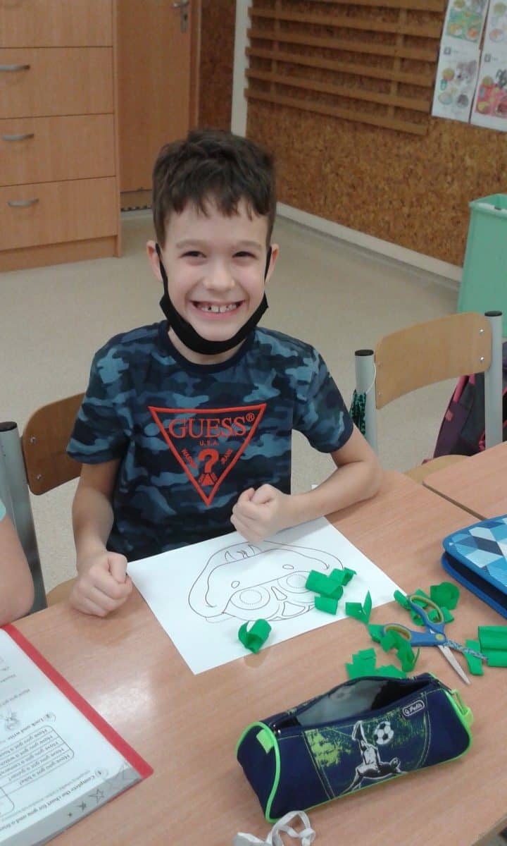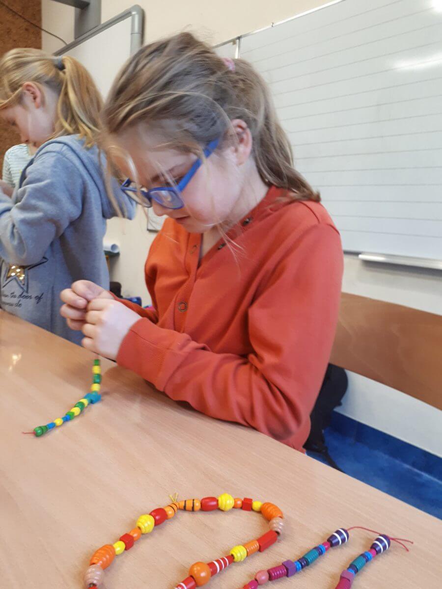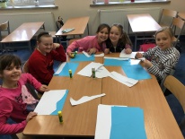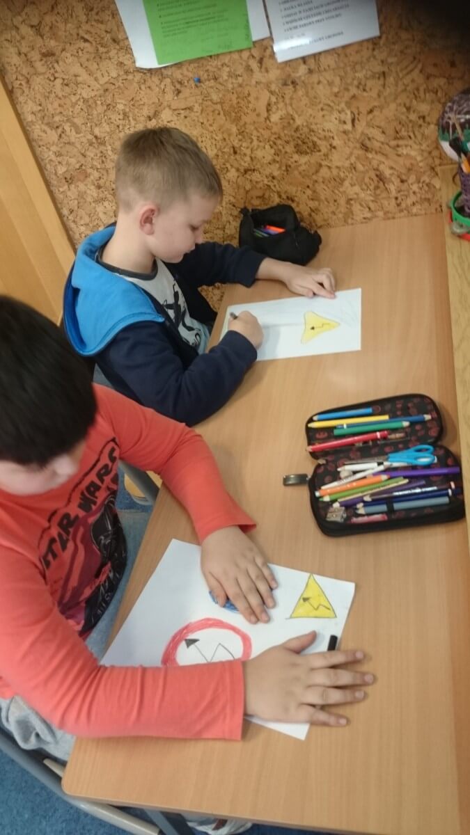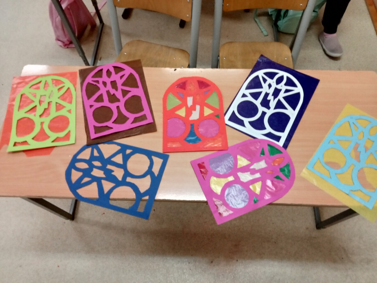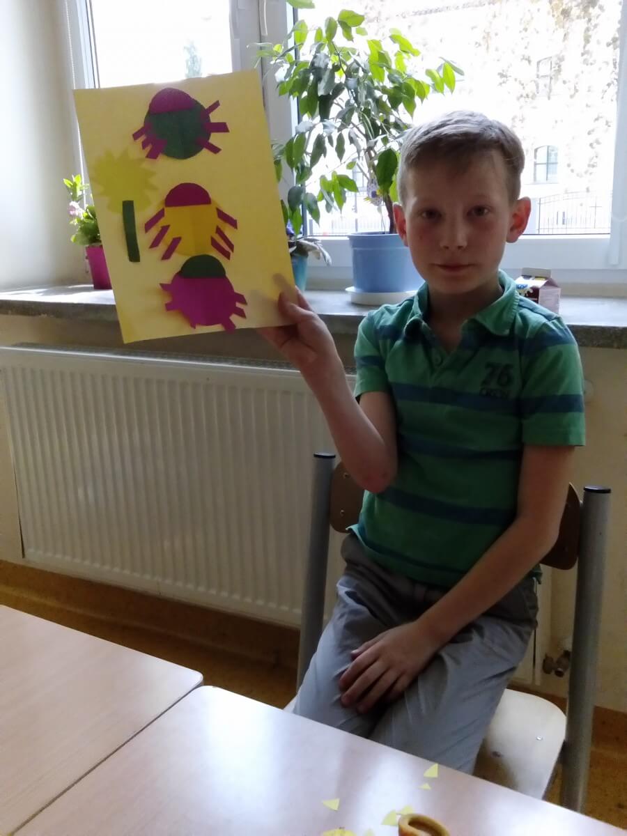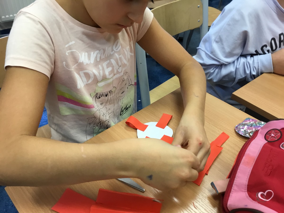 W ramach kolejnych zajęć kształtujących kreatywność uczniowie tym razem wykonywali kolorowe szachownice. To tego zadania wykorzystywali szablon kratki szachownicy, kolorowy papier, klej i nożyczki. Pod koniec lekcji wyszły tęczowe szachownice.