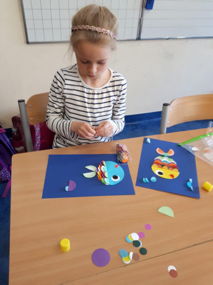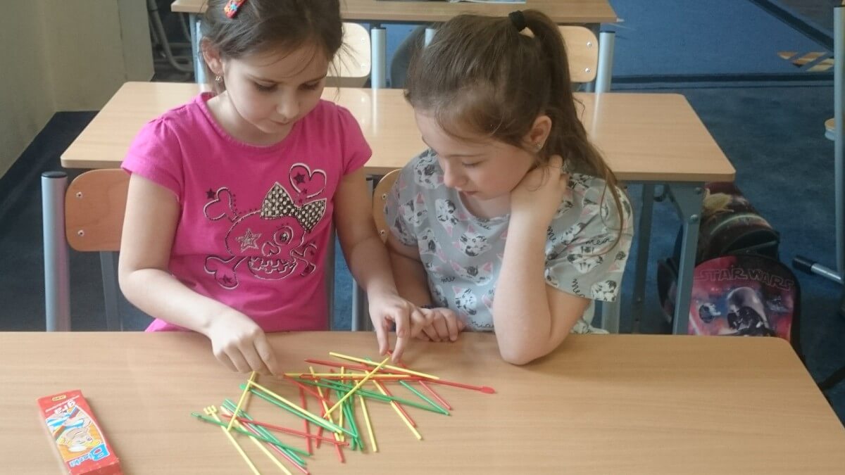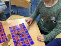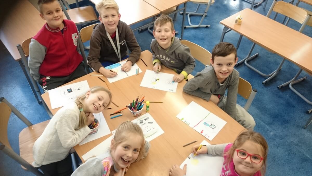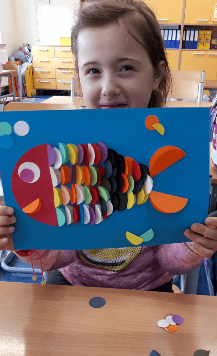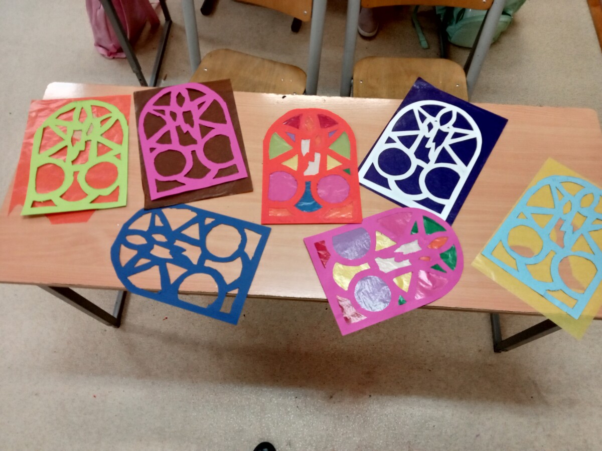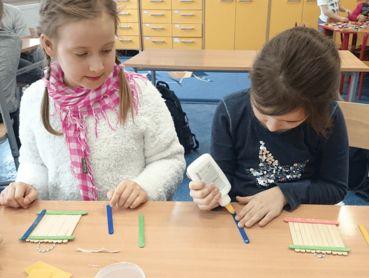 W ramach kolejnych zajęć kształtujących kreatywność uczniowie tym razem wykonywali kolorowe szachownice. To tego zadania wykorzystywali szablon kratki szachownicy, kolorowy papier, klej i nożyczki. Pod koniec lekcji wyszły tęczowe szachownice.