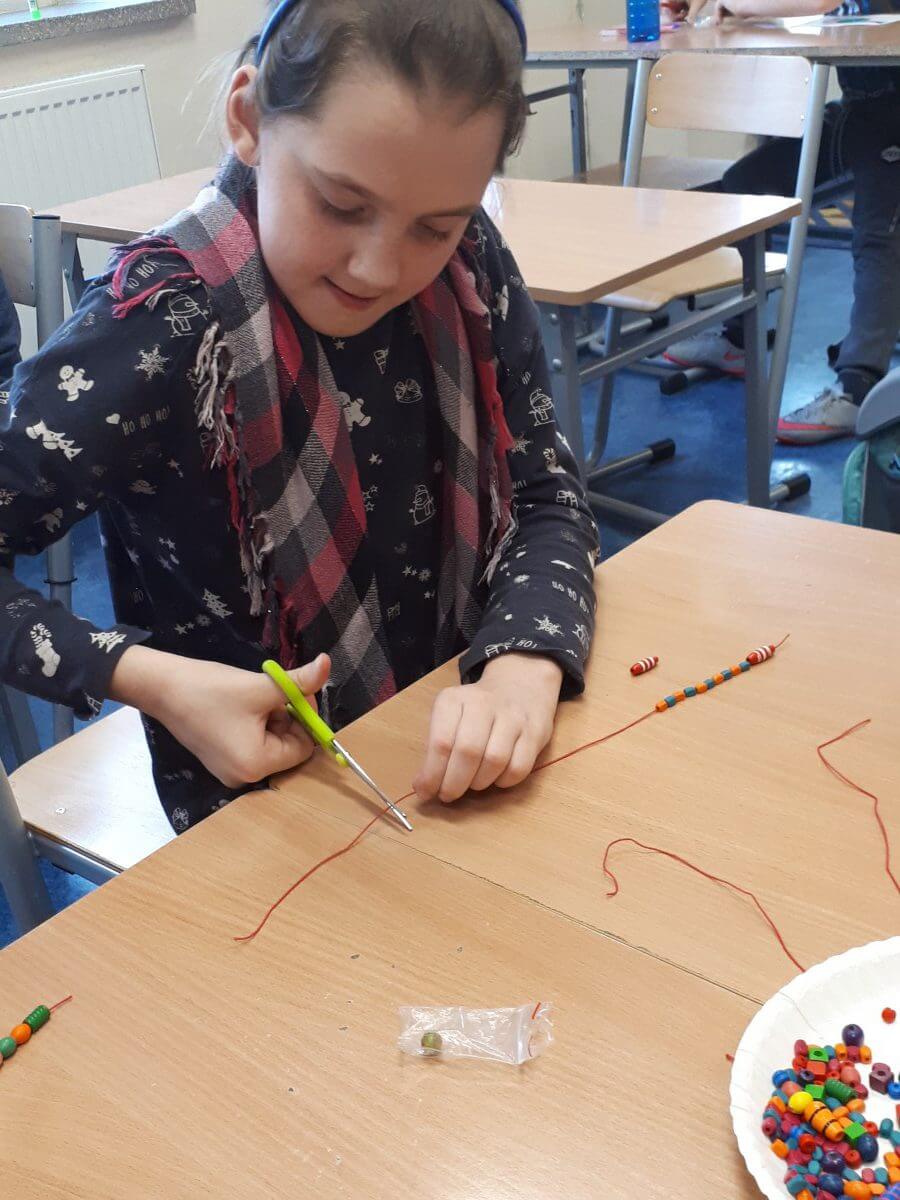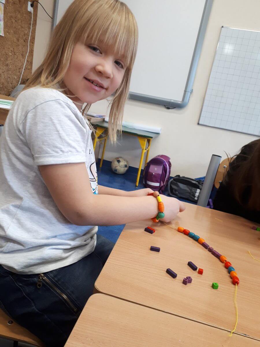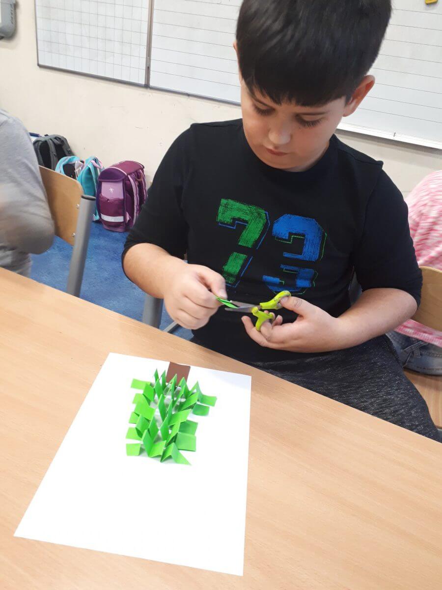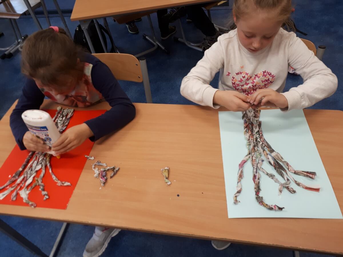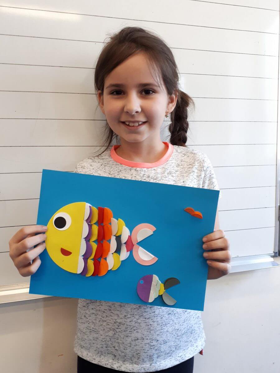 W ramach kolejnych zajęć kształtujących kreatywność uczniowie tym razem wykonywali kolorowe szachownice. To tego zadania wykorzystywali szablon kratki szachownicy, kolorowy papier, klej i nożyczki. Pod koniec lekcji wyszły tęczowe szachownice.