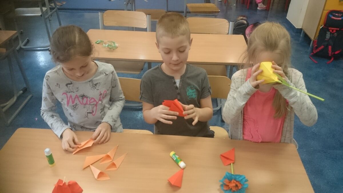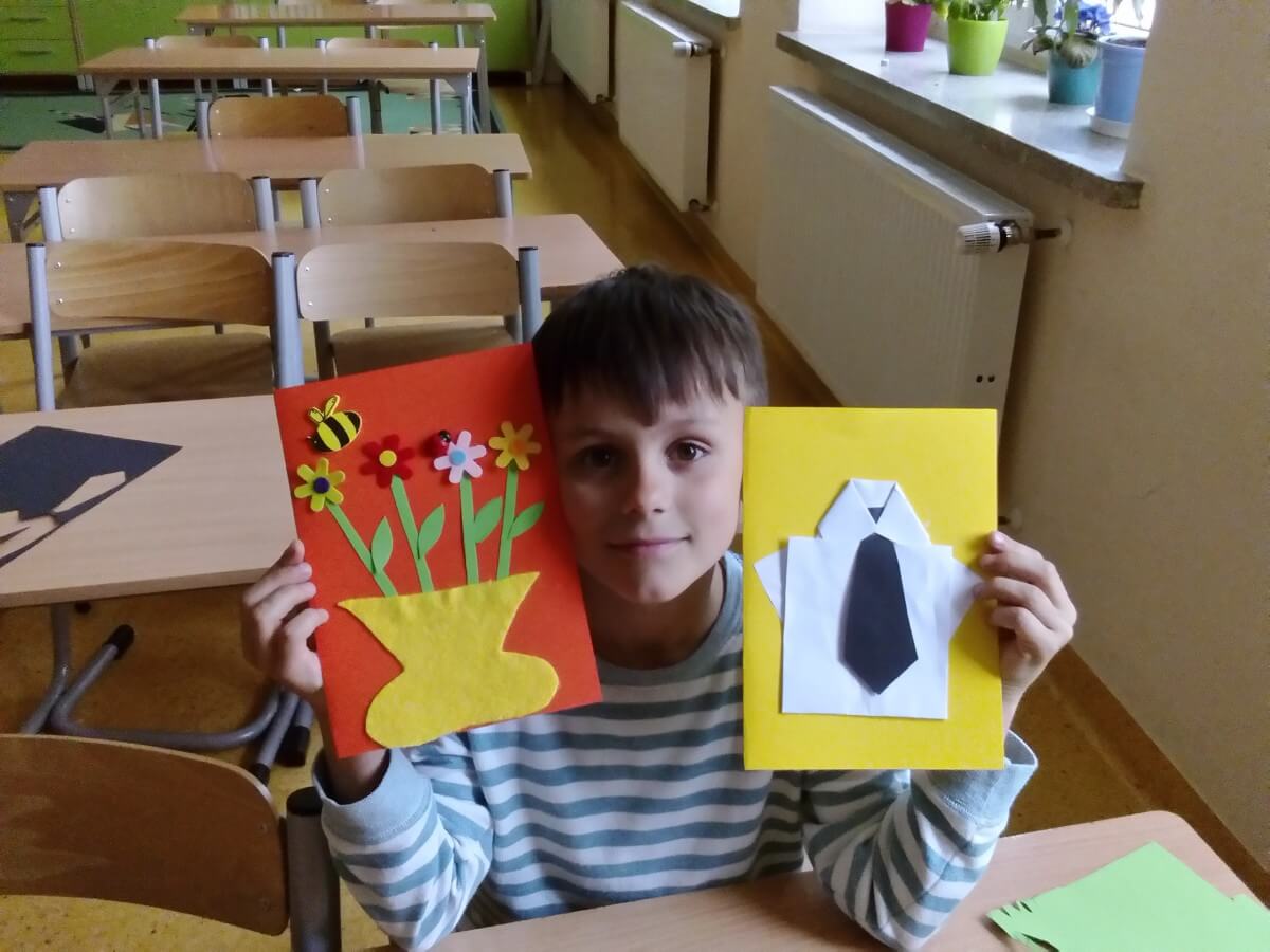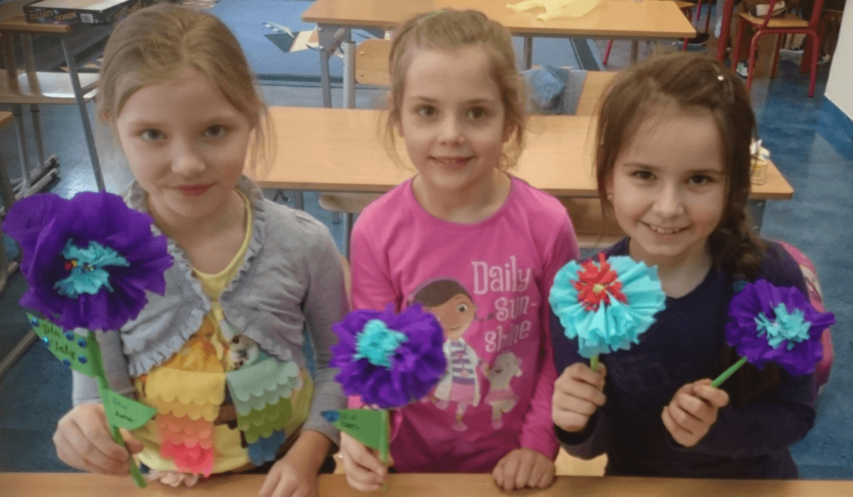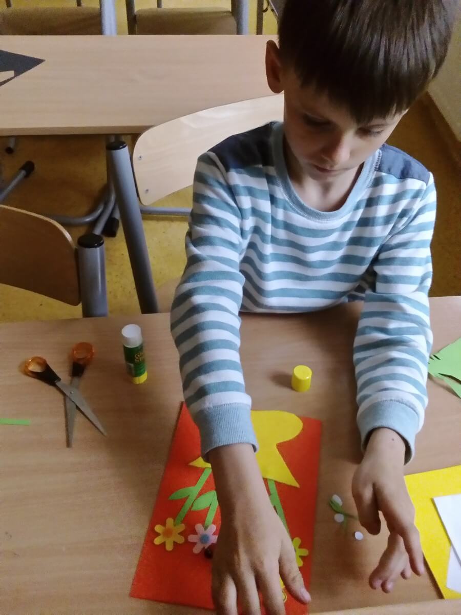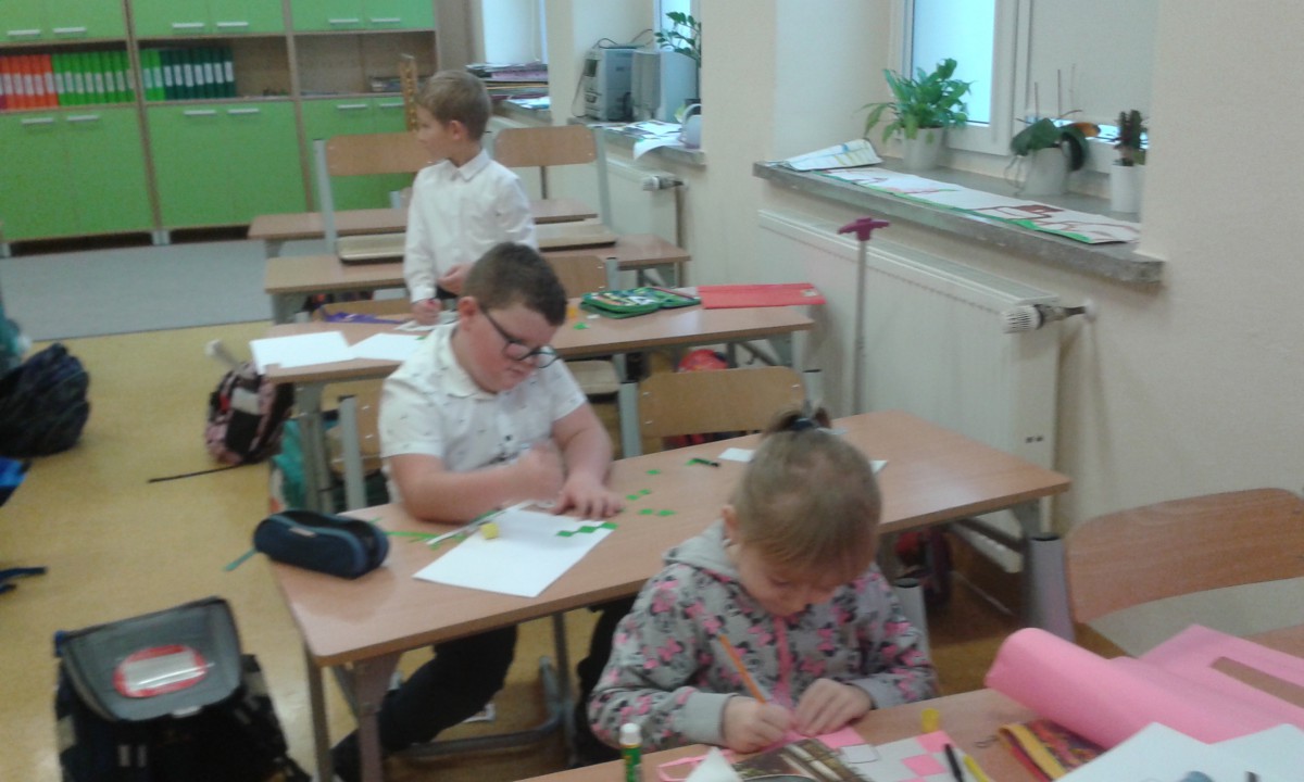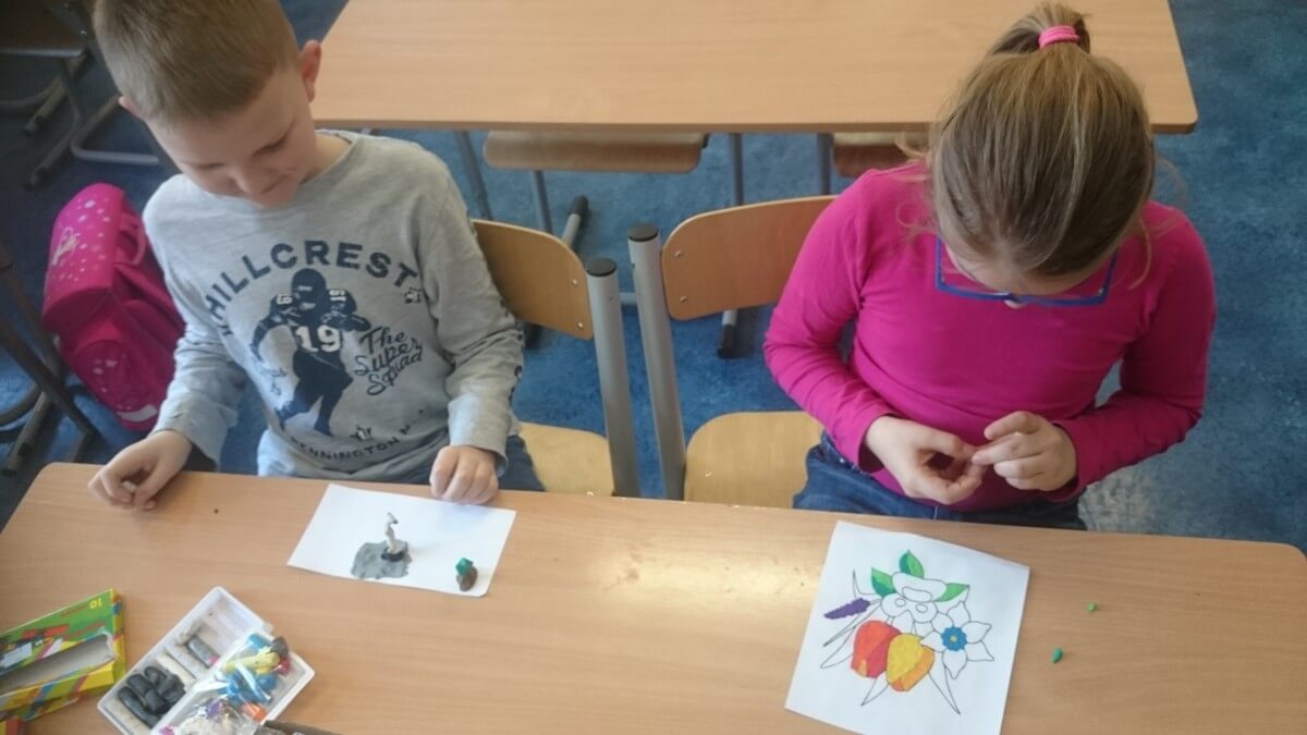 Uczniowie klas pierwszych przygotowali w ramach zajęć świetlicowych niespodzianki dla nauczycieli. Najpierw poznali opolskie wzory zdobnicze, wykorzystywane w malowaniu porcelany, a później sami pomalowali doniczki, wzorami wg własnej koncepcji. Wielką radość sprawiła dzieciom możliwość