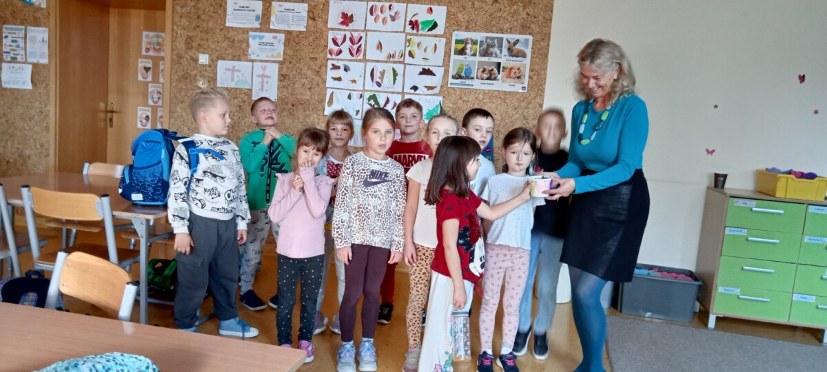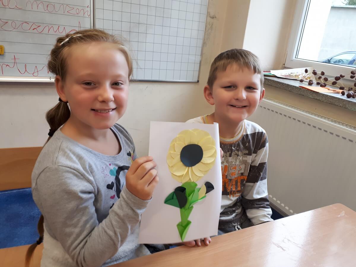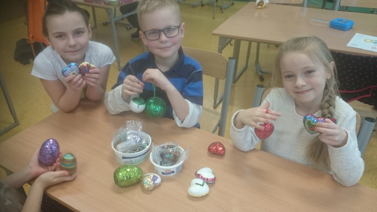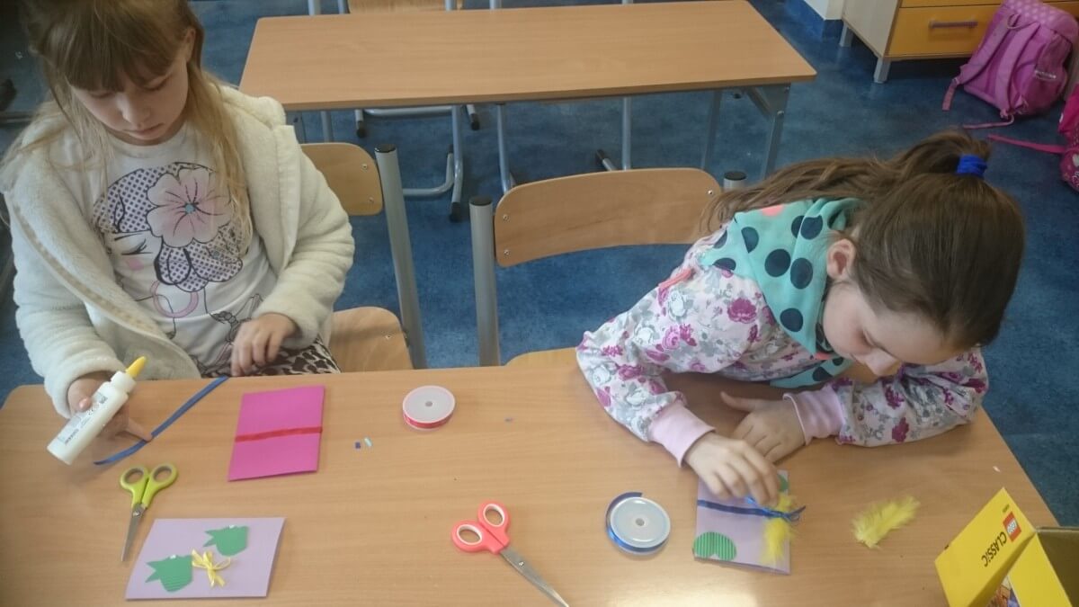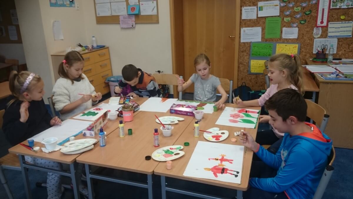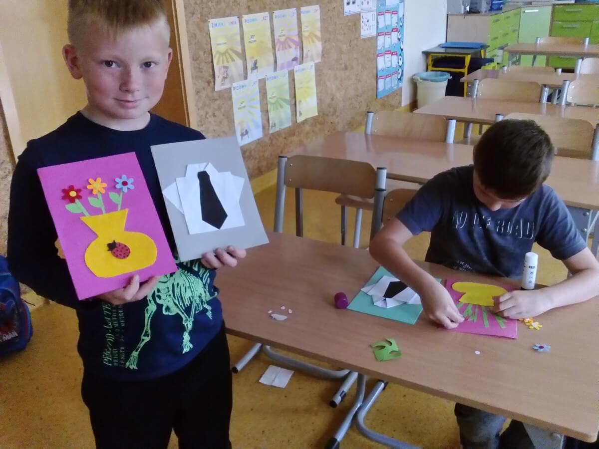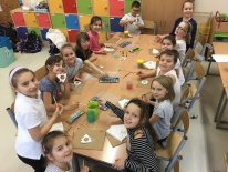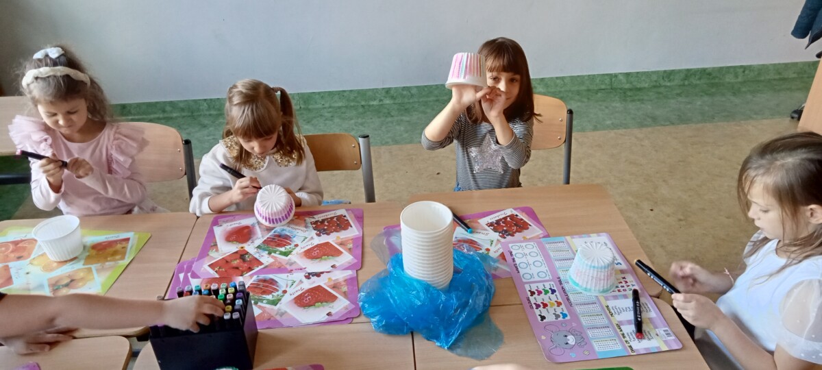 Uczniowie klas pierwszych przygotowali w ramach zajęć świetlicowych niespodzianki dla nauczycieli. Najpierw poznali opolskie wzory zdobnicze, wykorzystywane w malowaniu porcelany, a później sami pomalowali doniczki, wzorami wg własnej koncepcji. Wielką radość sprawiła dzieciom możliwość