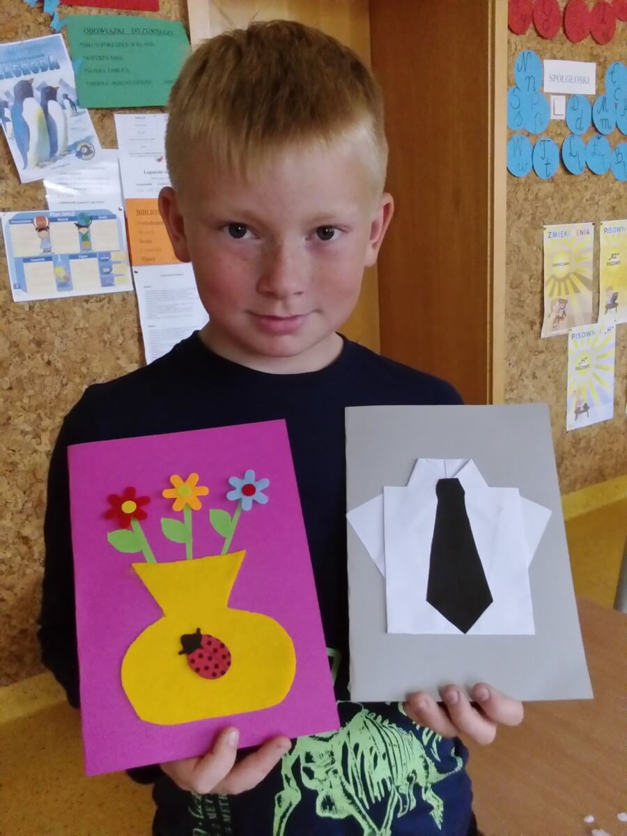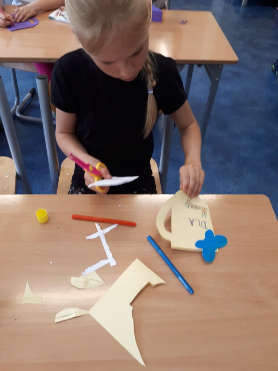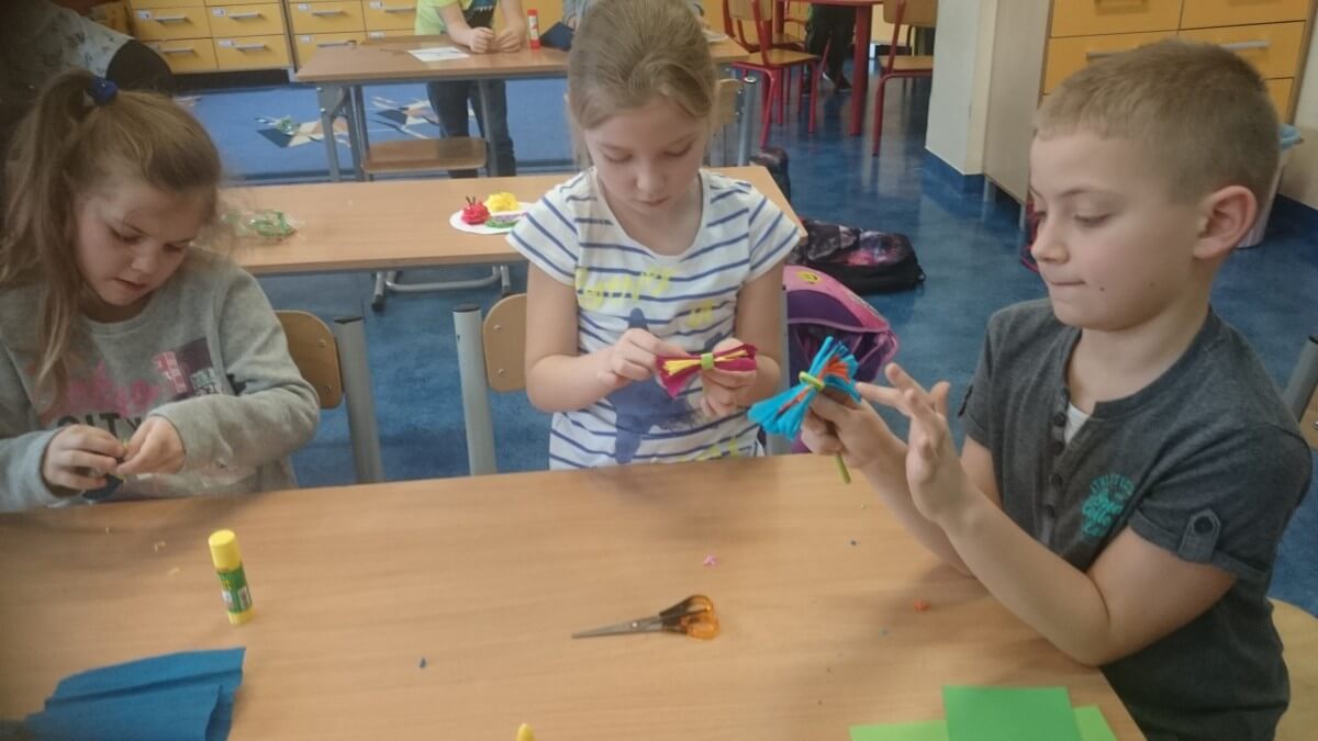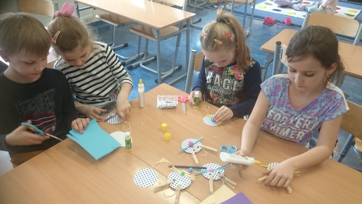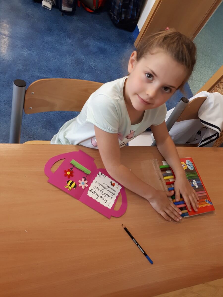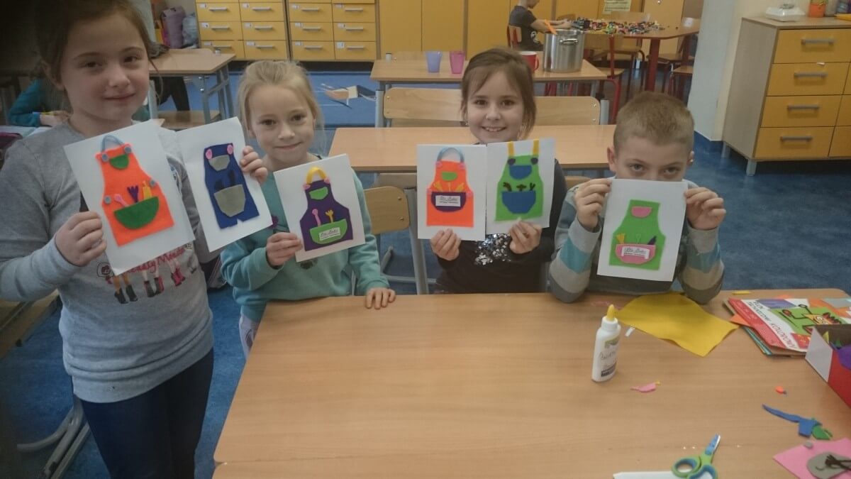 Uczniowie klas pierwszych przygotowali w ramach zajęć świetlicowych niespodzianki dla nauczycieli. Najpierw poznali opolskie wzory zdobnicze, wykorzystywane w malowaniu porcelany, a później sami pomalowali doniczki, wzorami wg własnej koncepcji. Wielką radość sprawiła dzieciom możliwość