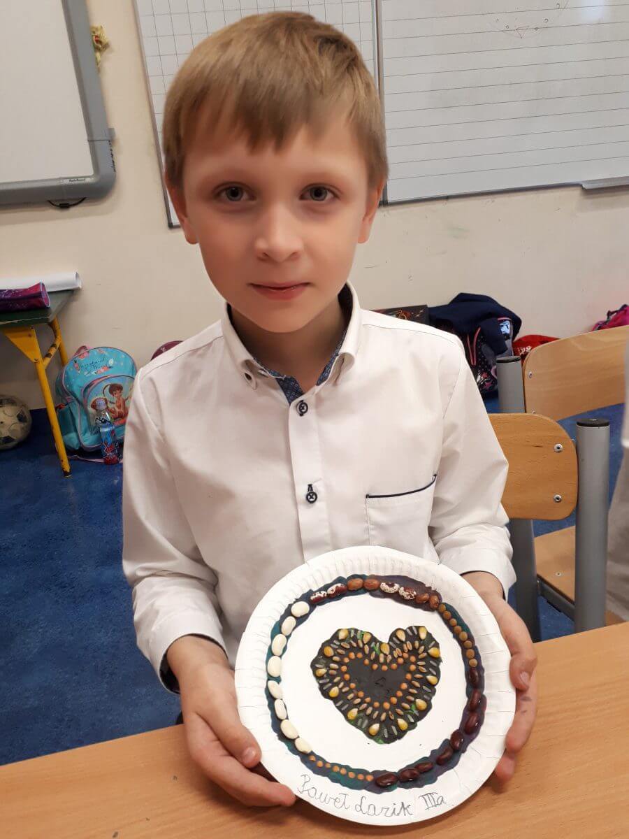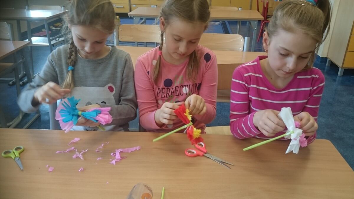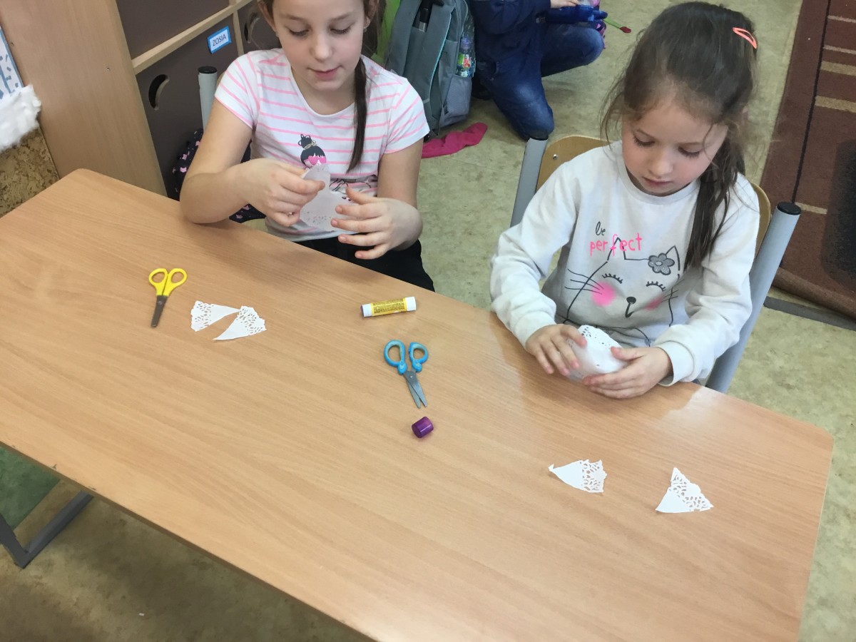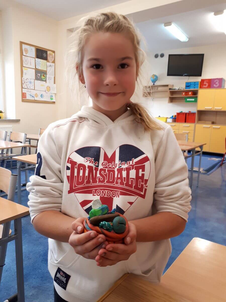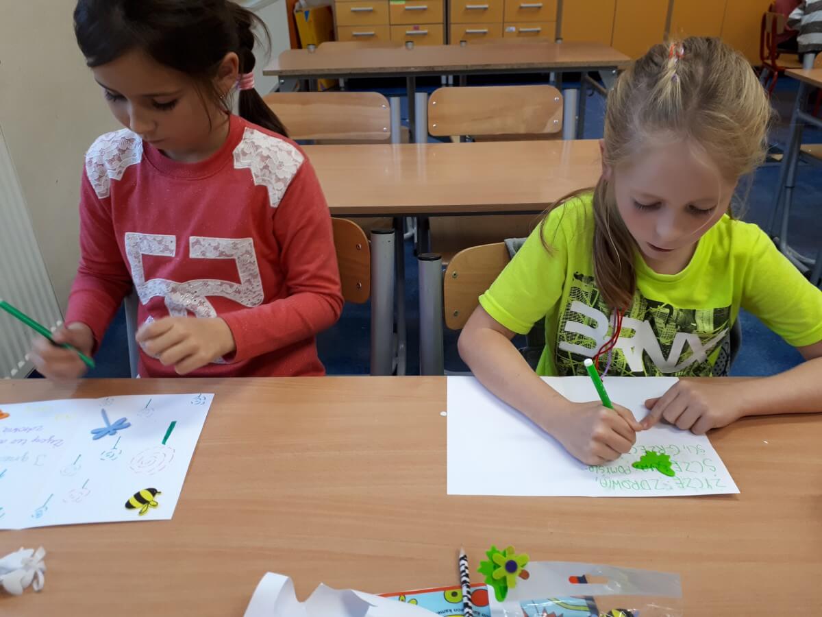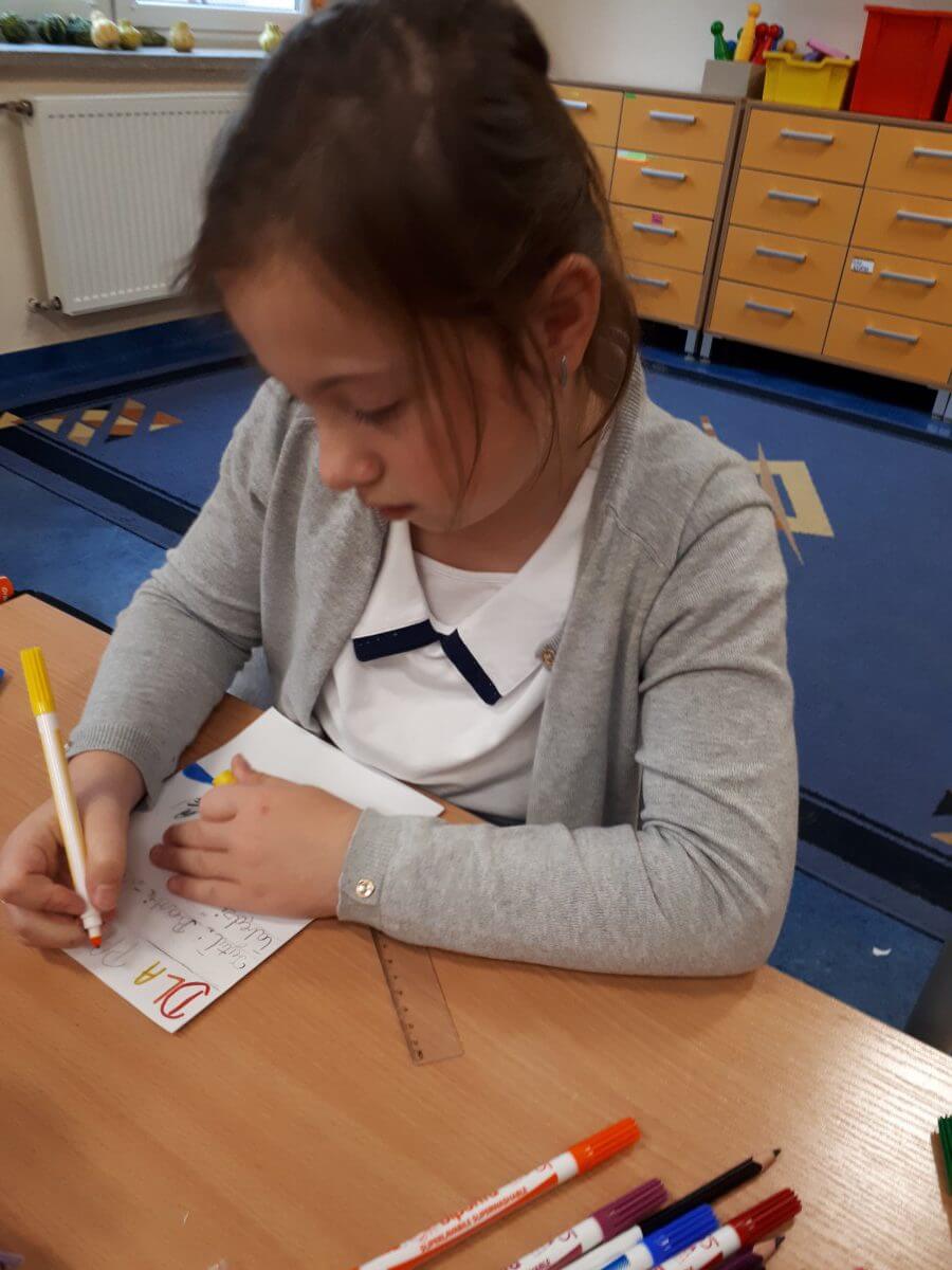 Uczniowie klas pierwszych przygotowali w ramach zajęć świetlicowych niespodzianki dla nauczycieli. Najpierw poznali opolskie wzory zdobnicze, wykorzystywane w malowaniu porcelany, a później sami pomalowali doniczki, wzorami wg własnej koncepcji. Wielką radość sprawiła dzieciom możliwość