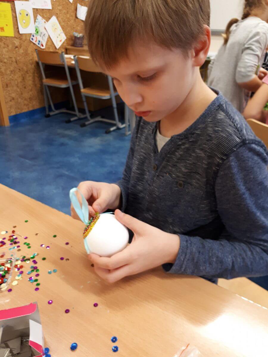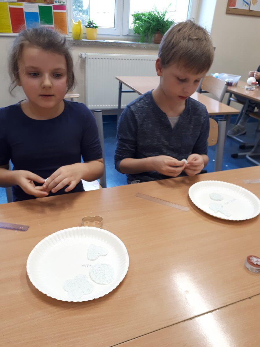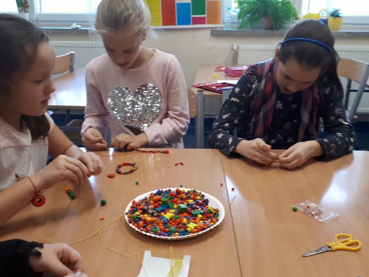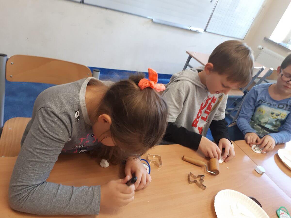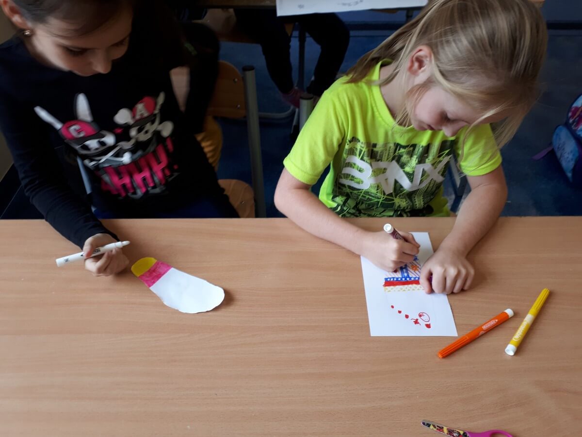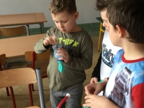 Uczniowie klas pierwszych przygotowali w ramach zajęć świetlicowych niespodzianki dla nauczycieli. Najpierw poznali opolskie wzory zdobnicze, wykorzystywane w malowaniu porcelany, a później sami pomalowali doniczki, wzorami wg własnej koncepcji. Wielką radość sprawiła dzieciom możliwość