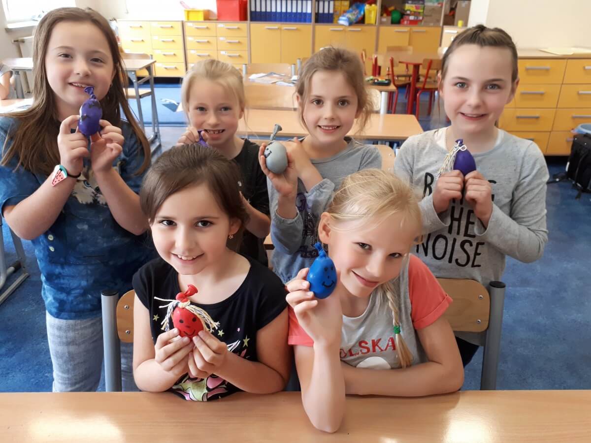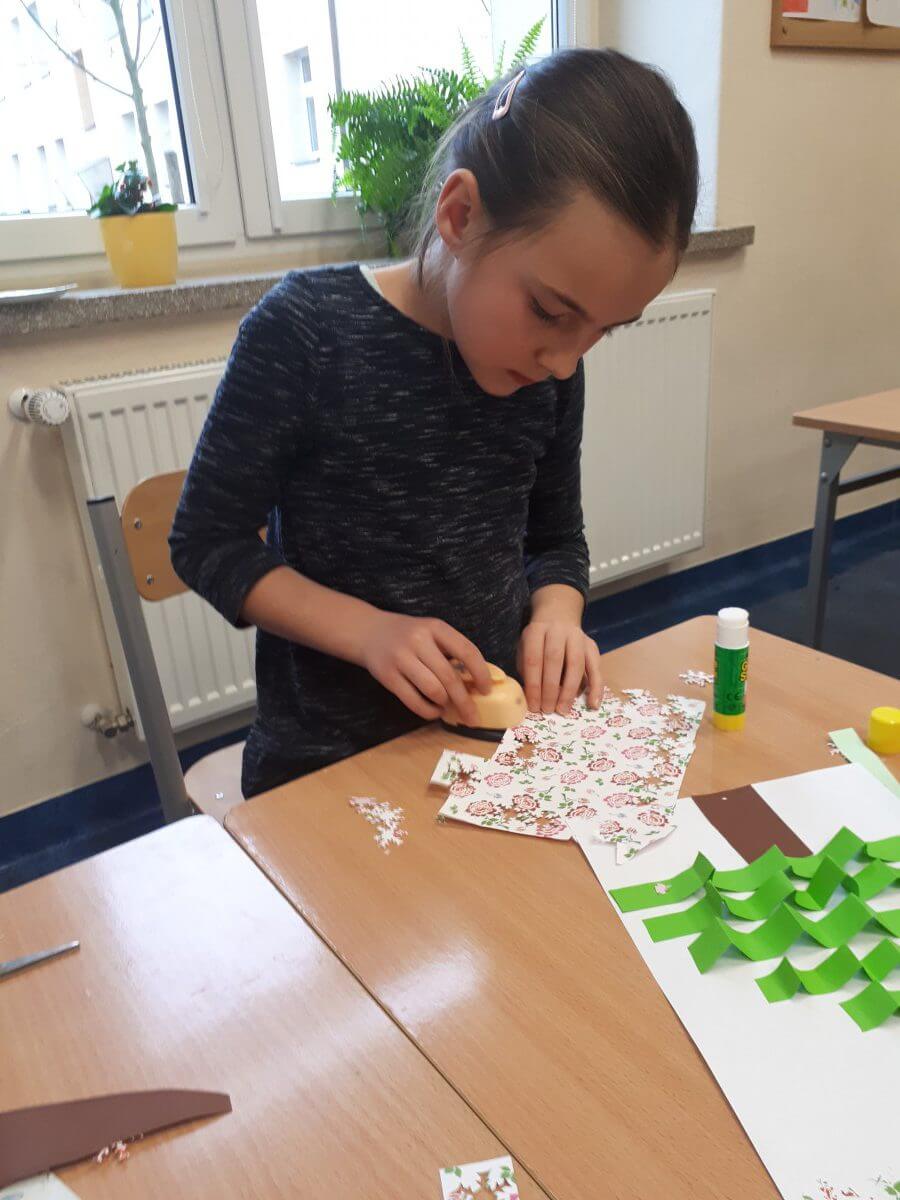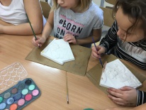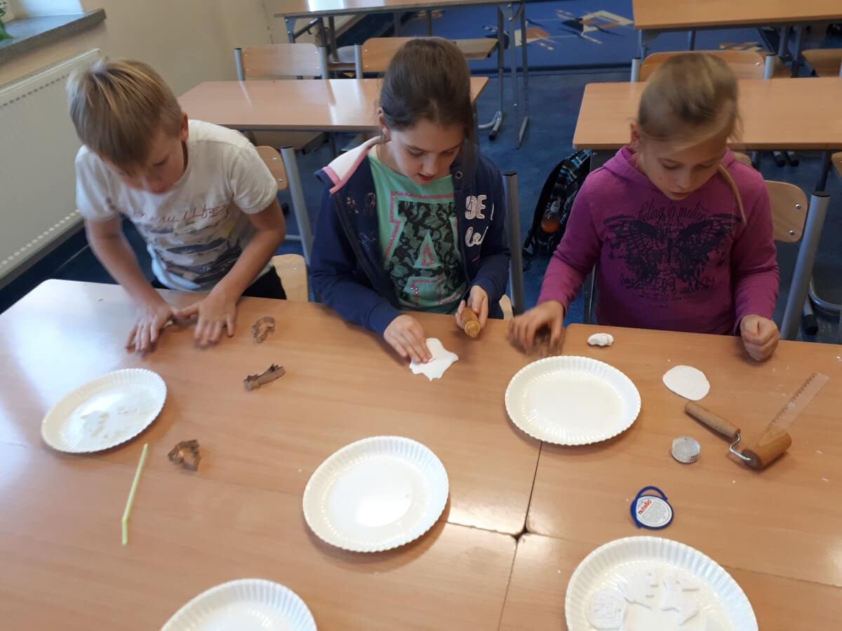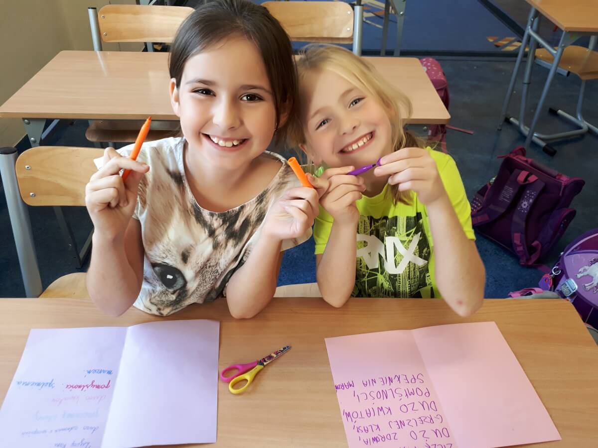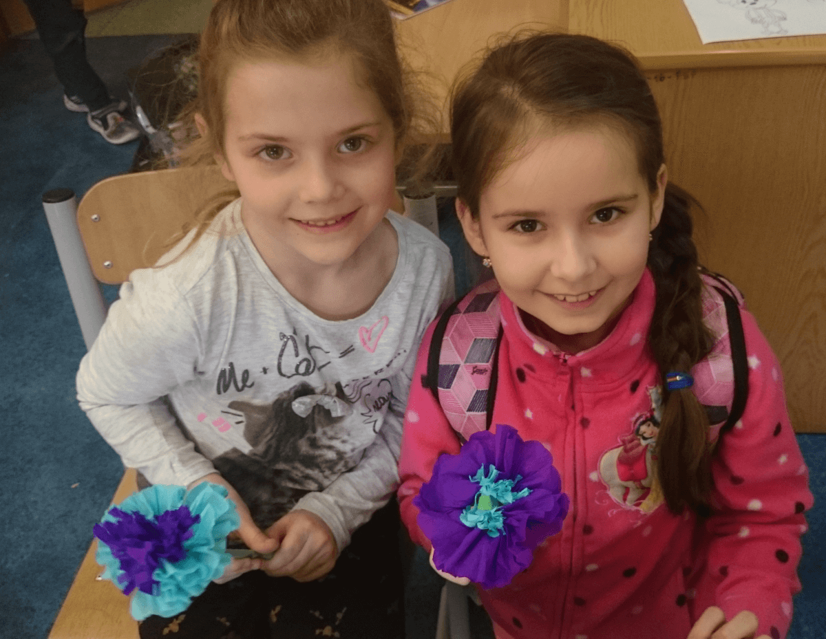 Uczniowie klas pierwszych przygotowali w ramach zajęć świetlicowych niespodzianki dla nauczycieli. Najpierw poznali opolskie wzory zdobnicze, wykorzystywane w malowaniu porcelany, a później sami pomalowali doniczki, wzorami wg własnej koncepcji. Wielką radość sprawiła dzieciom możliwość