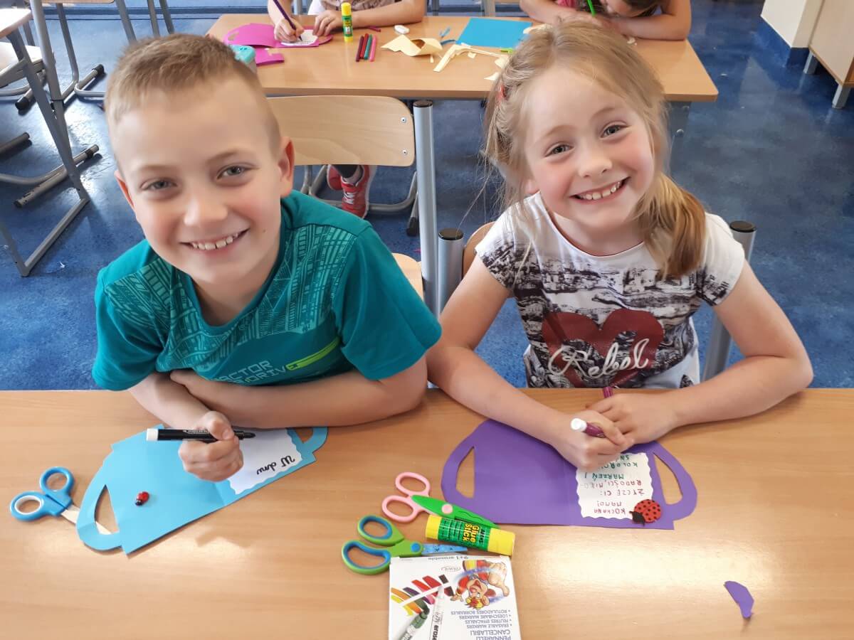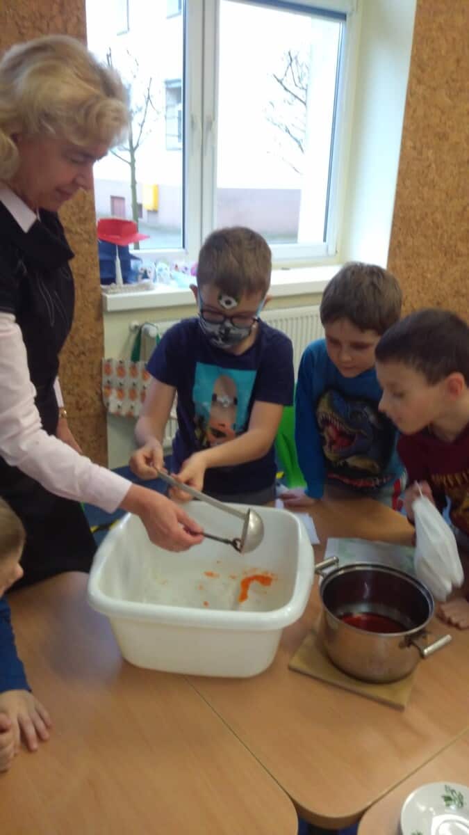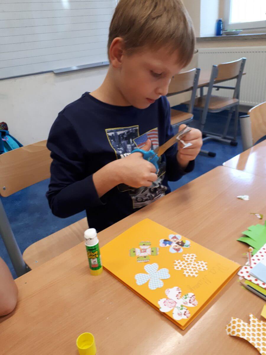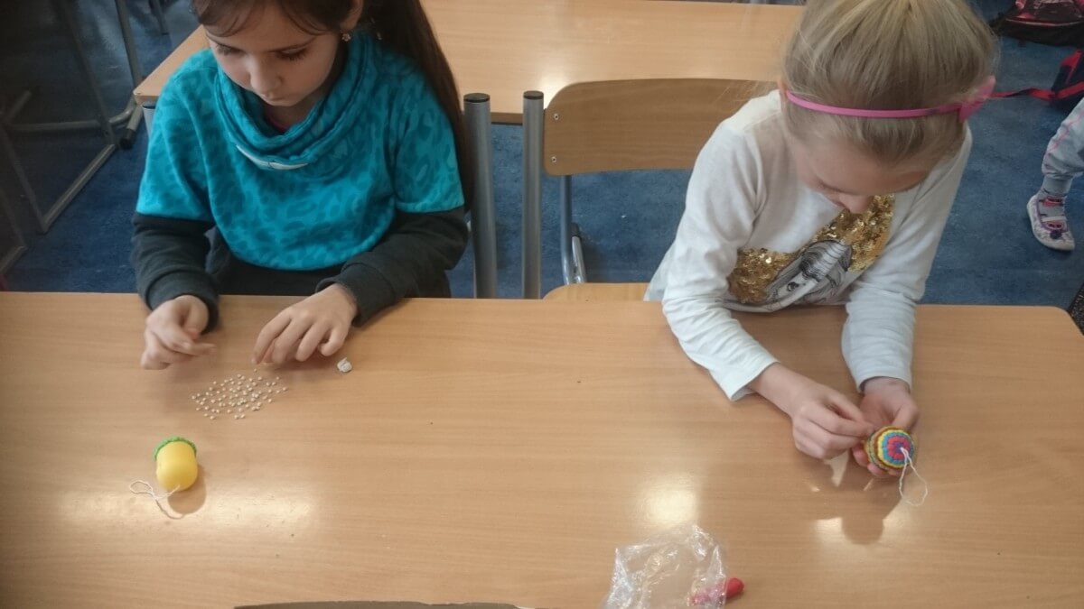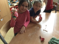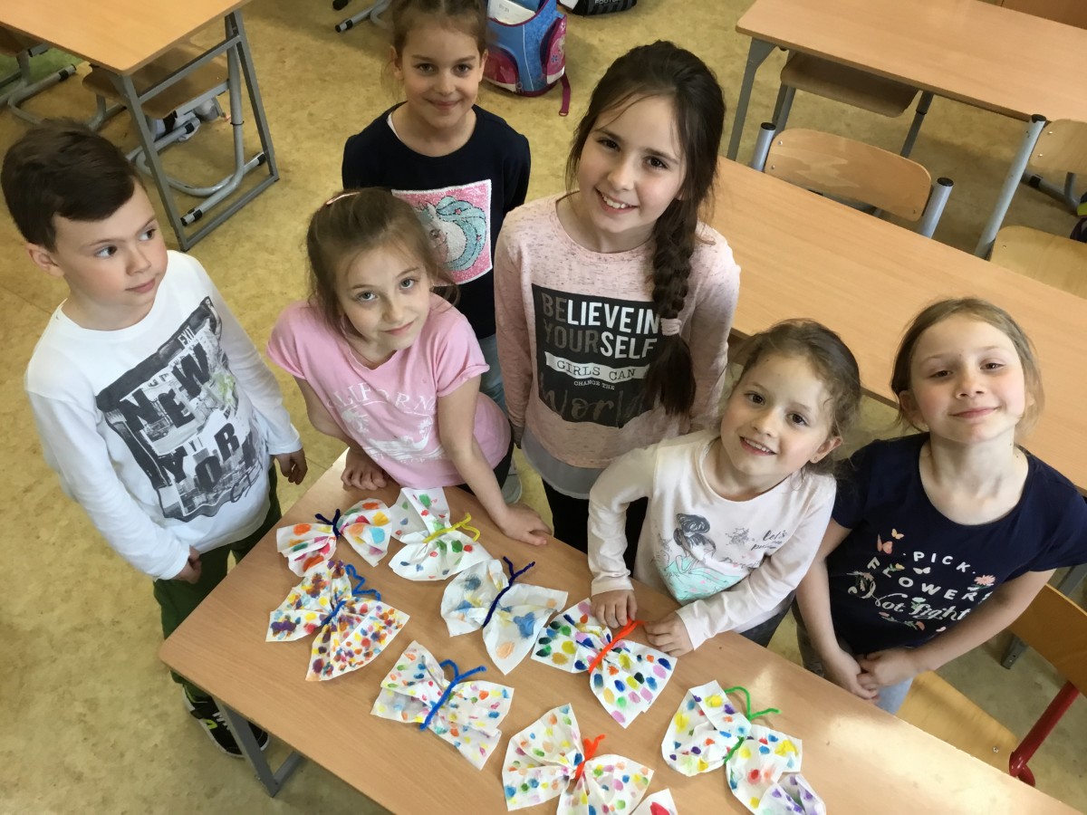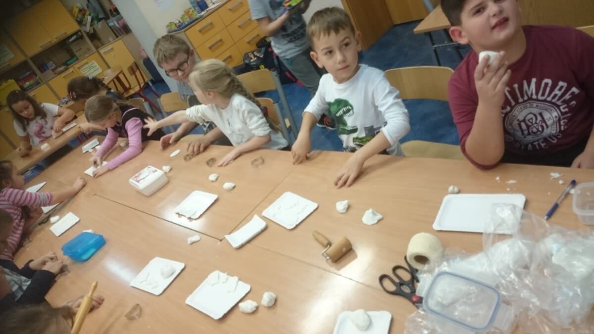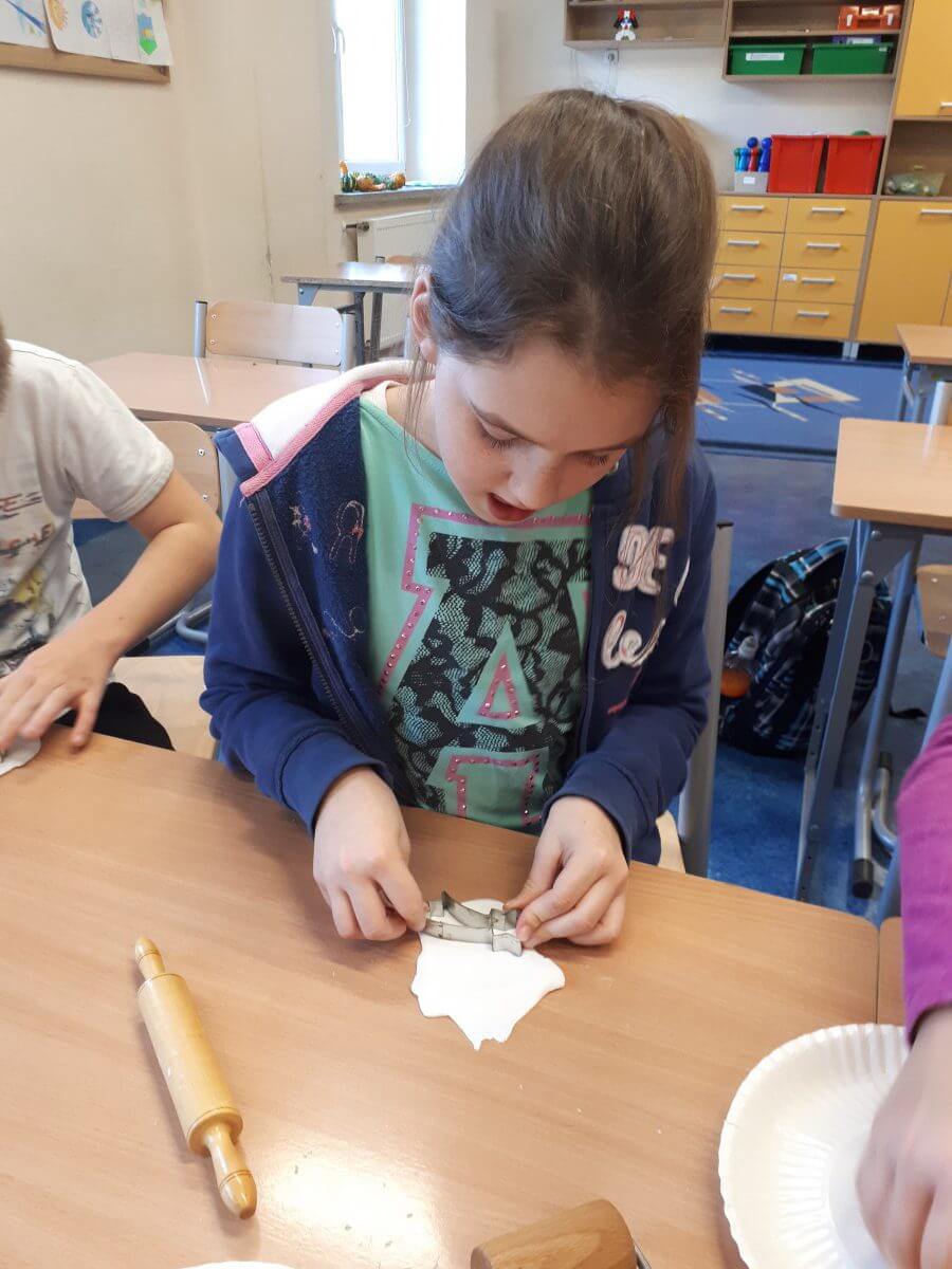 Uczniowie klas pierwszych przygotowali w ramach zajęć świetlicowych niespodzianki dla nauczycieli. Najpierw poznali opolskie wzory zdobnicze, wykorzystywane w malowaniu porcelany, a później sami pomalowali doniczki, wzorami wg własnej koncepcji. Wielką radość sprawiła dzieciom możliwość