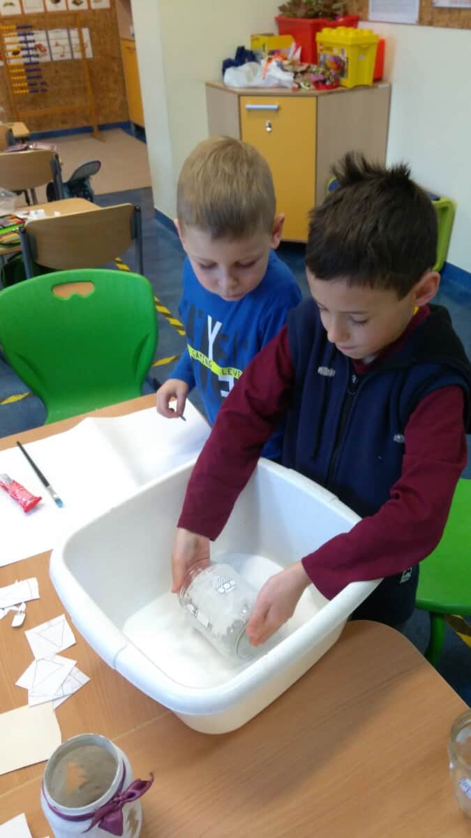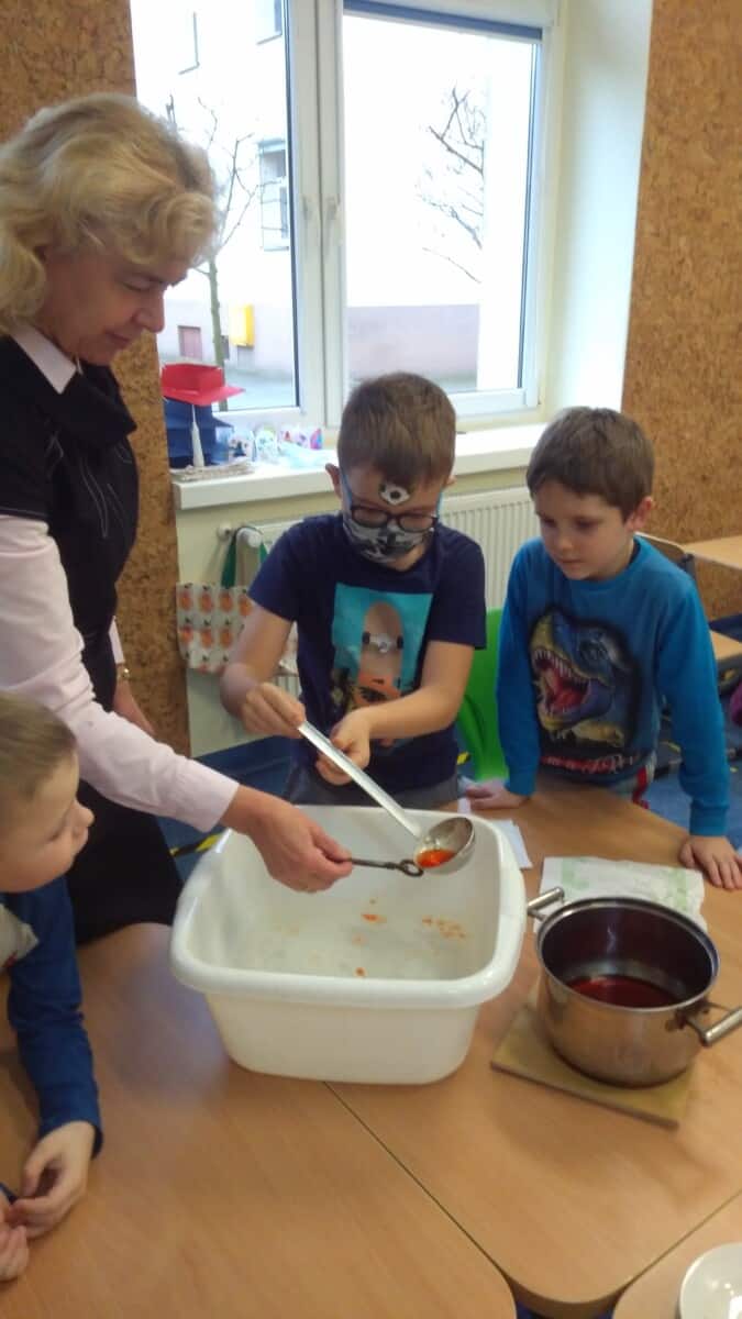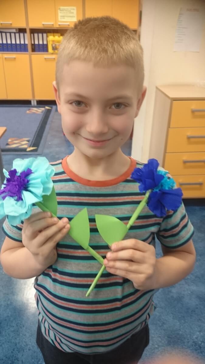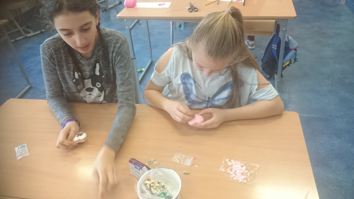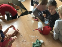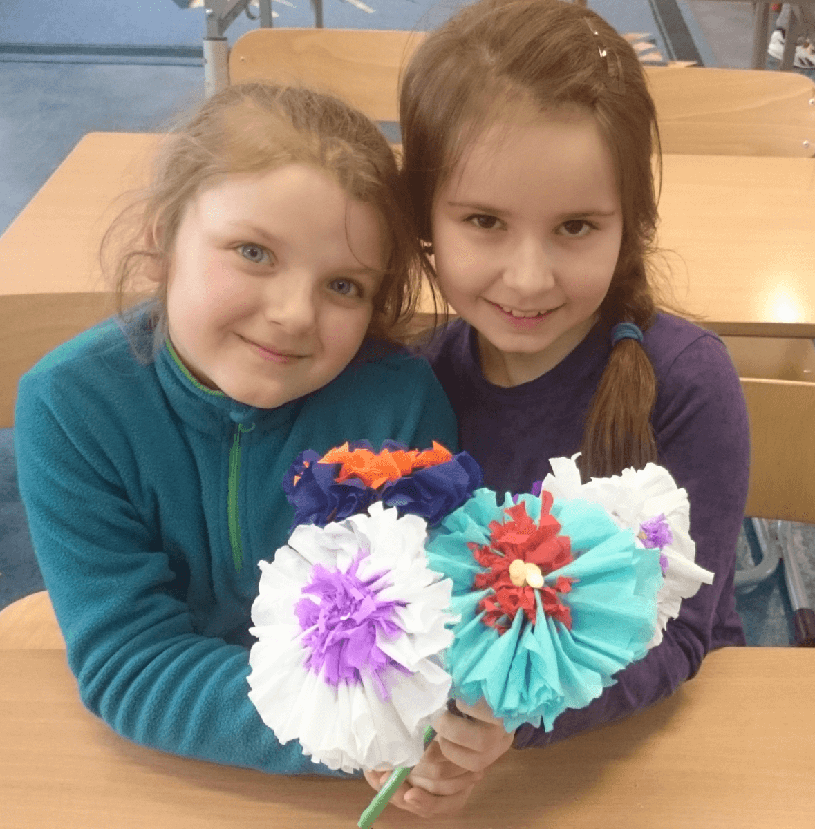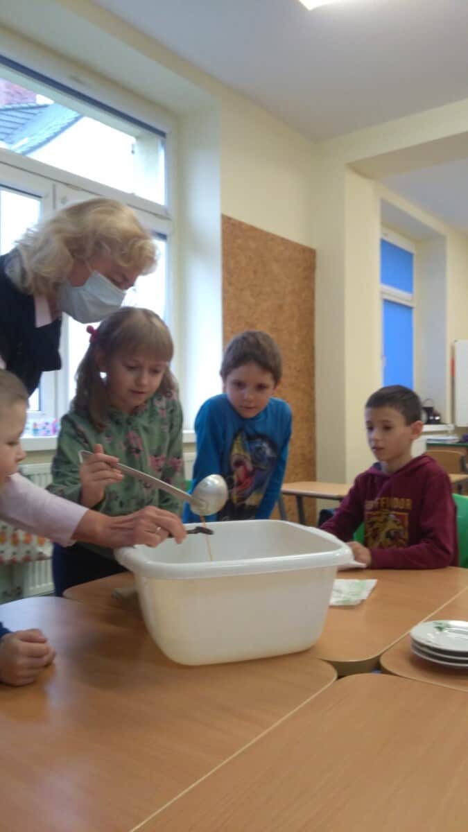 Uczniowie klas pierwszych przygotowali w ramach zajęć świetlicowych niespodzianki dla nauczycieli. Najpierw poznali opolskie wzory zdobnicze, wykorzystywane w malowaniu porcelany, a później sami pomalowali doniczki, wzorami wg własnej koncepcji. Wielką radość sprawiła dzieciom możliwość