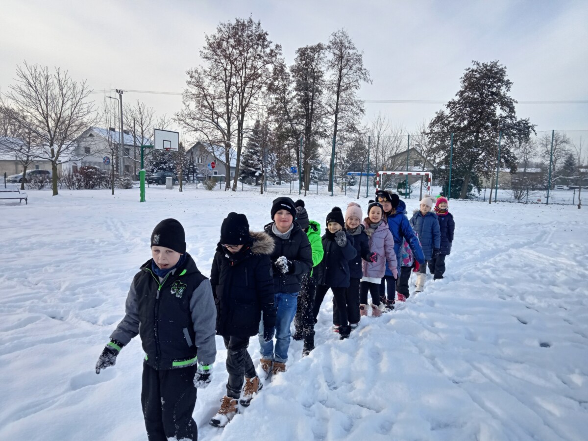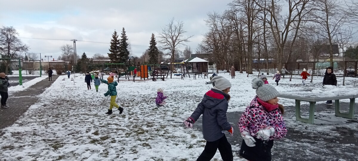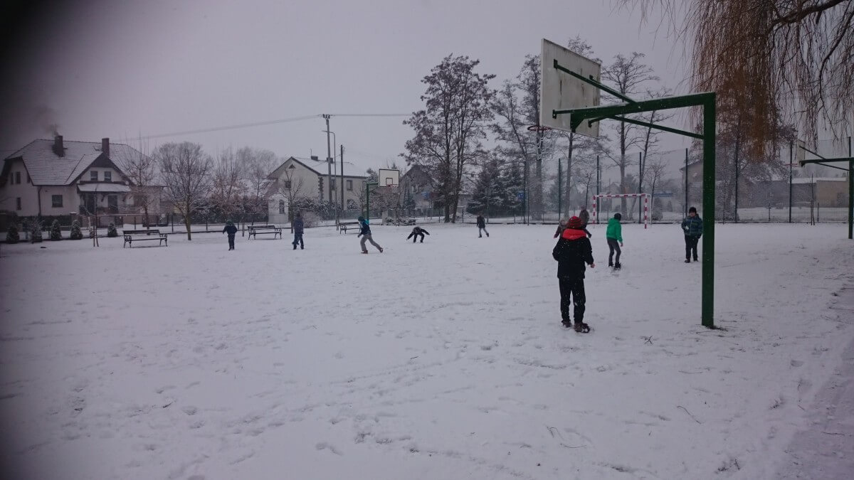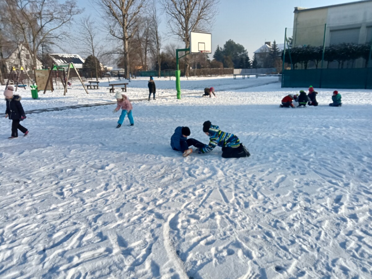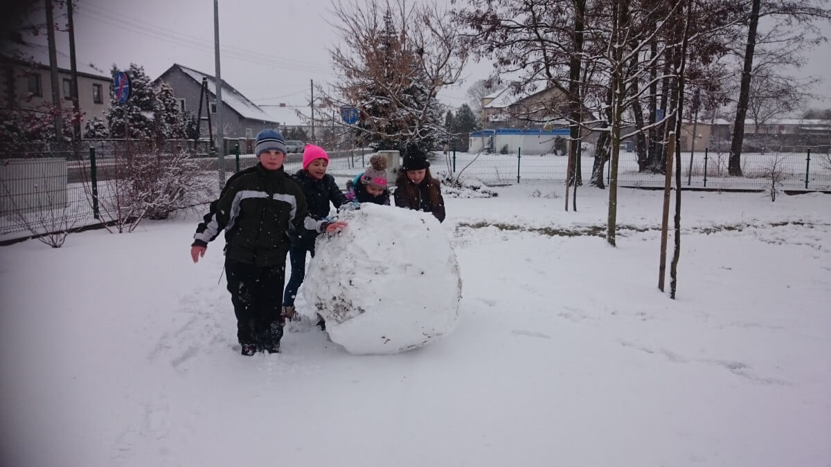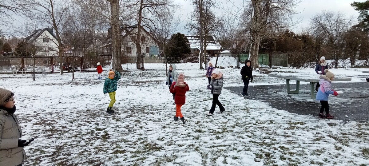 W tym roku zima nietypowa, bo pogoda zupełnie do zimy niepodobna. Tylko parę dni mieliśmy trochę radości, więc z przyjemnością wybraliśmy się na podwórko szkolne. Śniegu co prawda było mało, ale zabawa w śnieżki i tak nam się udała