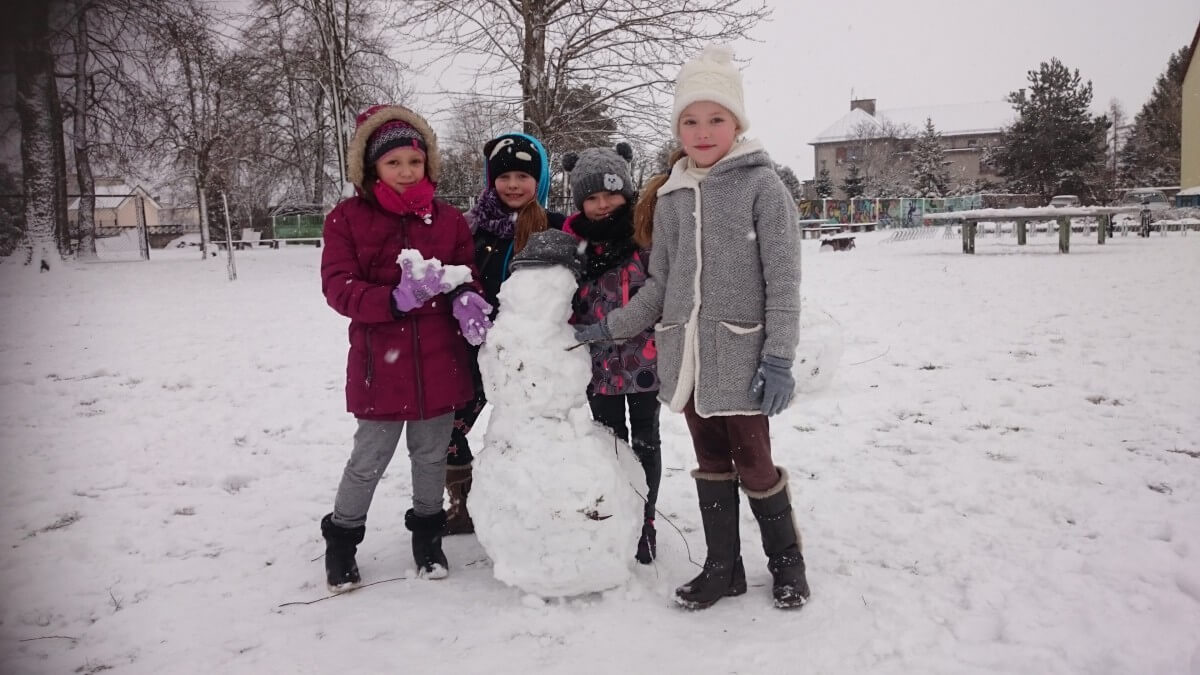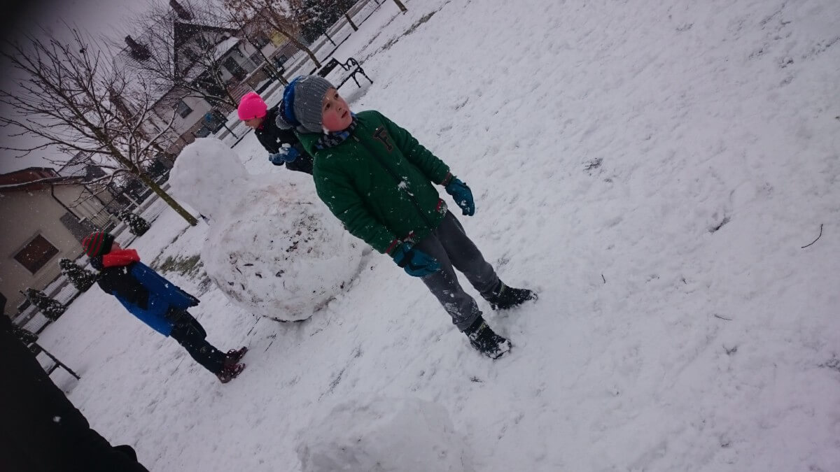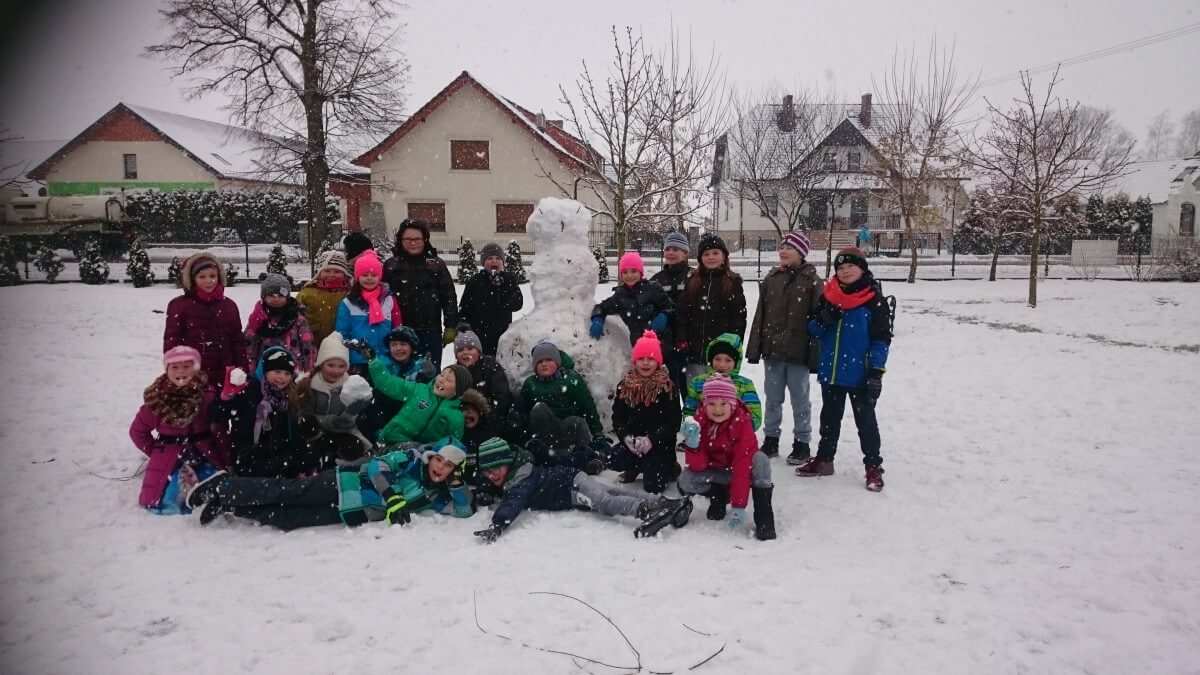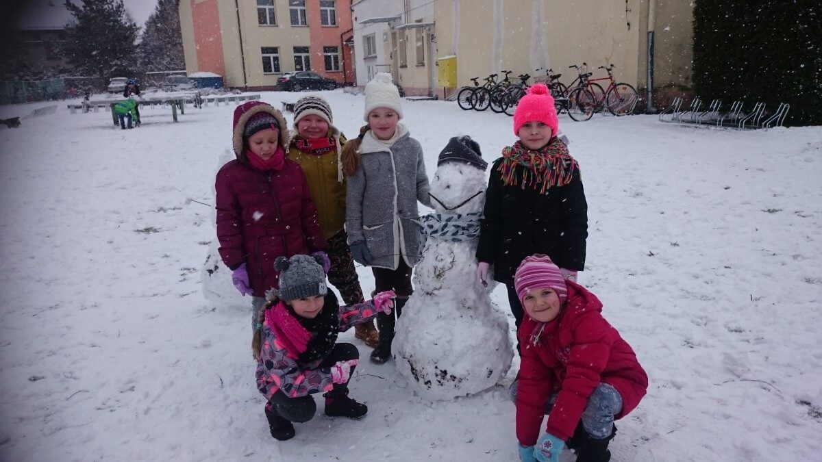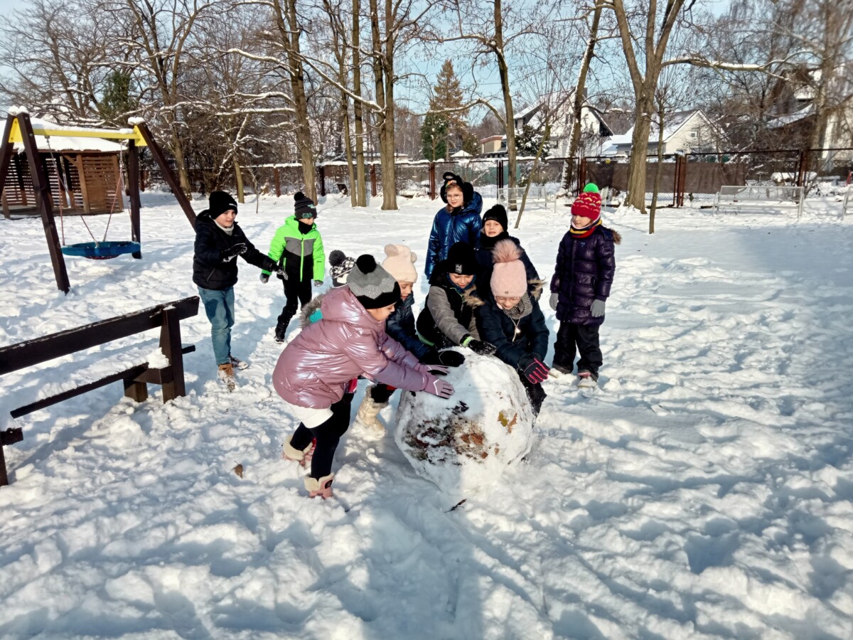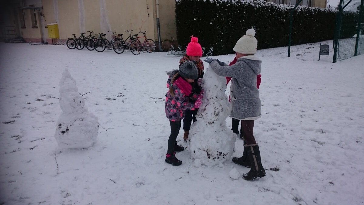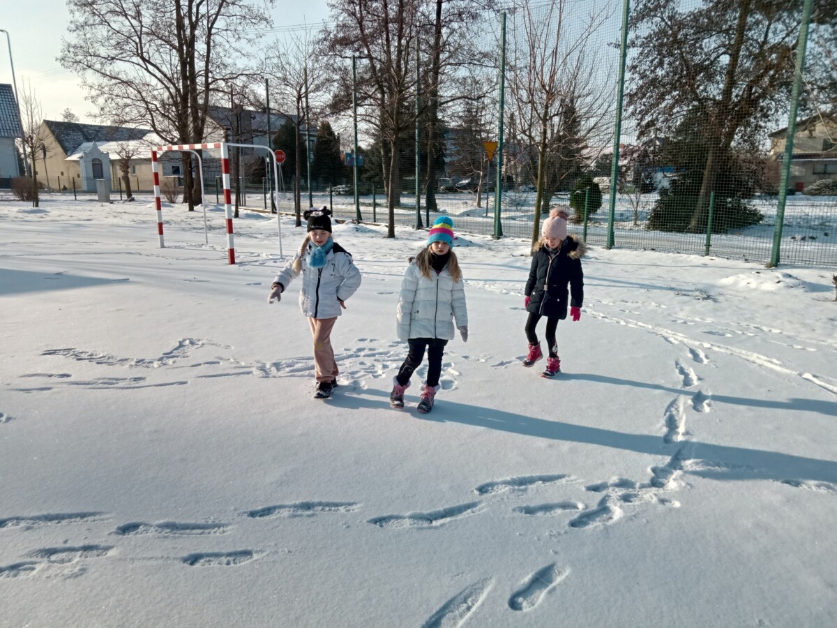 W tym roku zima nietypowa, bo pogoda zupełnie do zimy niepodobna. Tylko parę dni mieliśmy trochę radości, więc z przyjemnością wybraliśmy się na podwórko szkolne. Śniegu co prawda było mało, ale zabawa w śnieżki i tak nam się udała