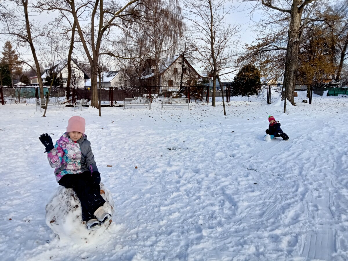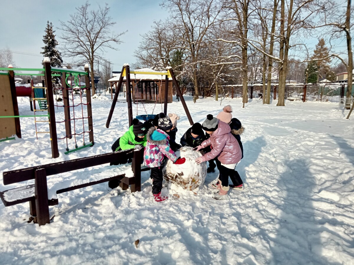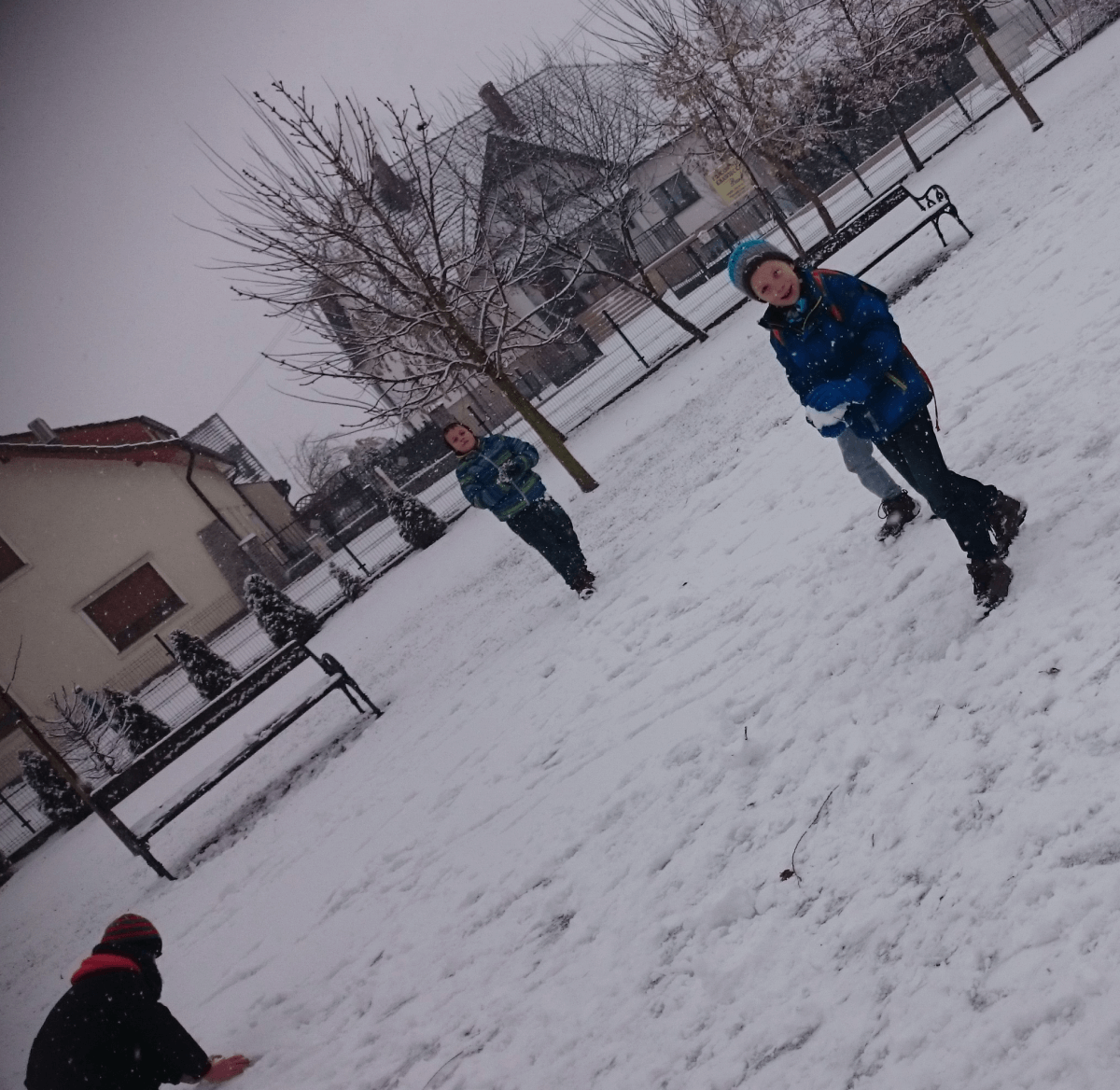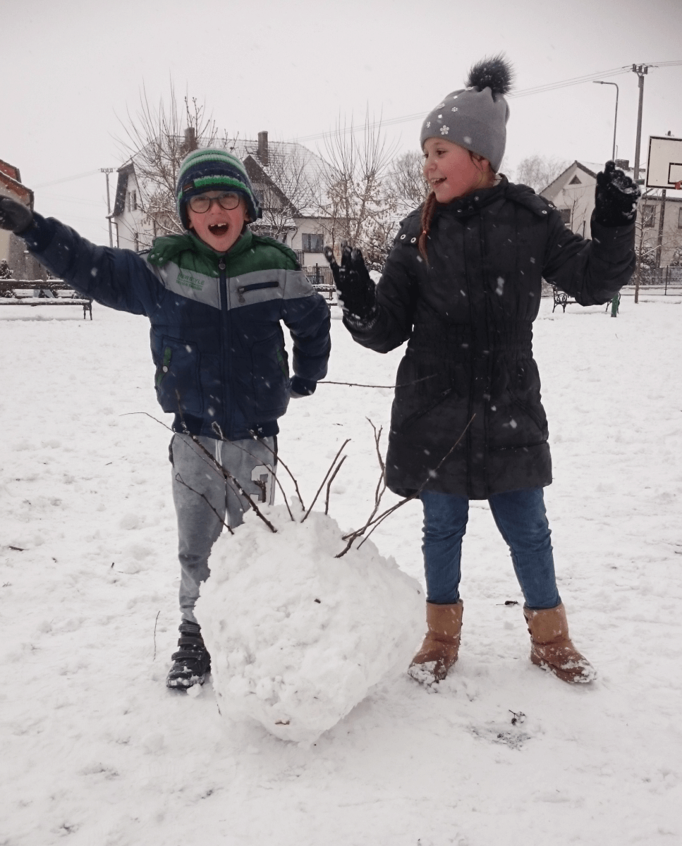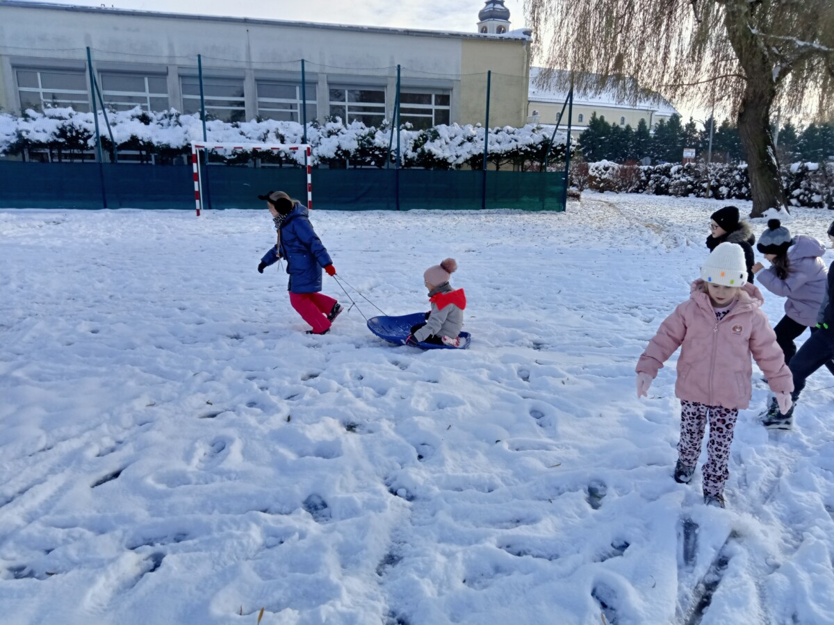 W tym roku zima nietypowa, bo pogoda zupełnie do zimy niepodobna. Tylko parę dni mieliśmy trochę radości, więc z przyjemnością wybraliśmy się na podwórko szkolne. Śniegu co prawda było mało, ale zabawa w śnieżki i tak nam się udała