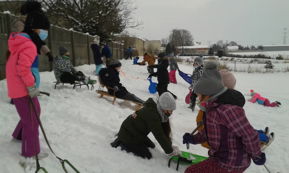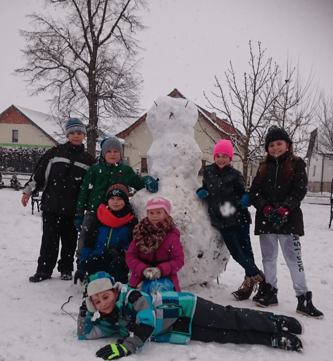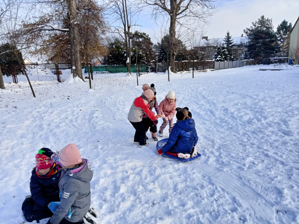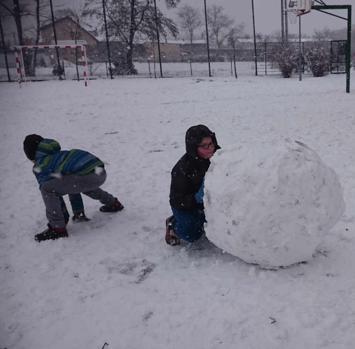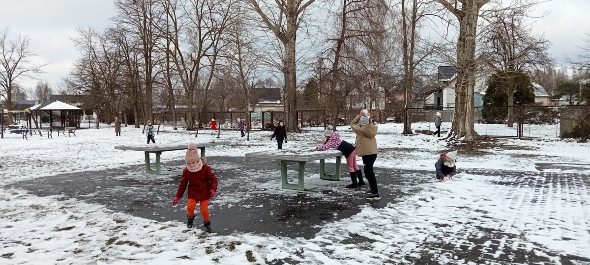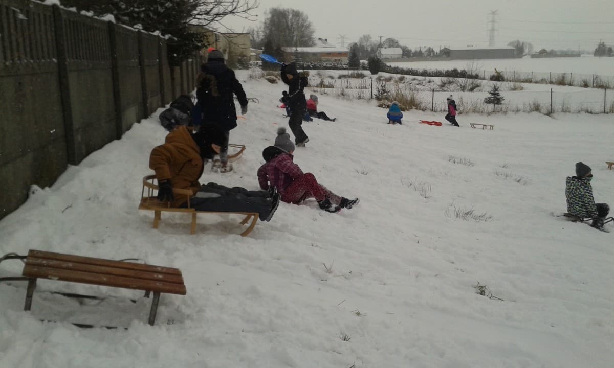 W tym roku zima nietypowa, bo pogoda zupełnie do zimy niepodobna. Tylko parę dni mieliśmy trochę radości, więc z przyjemnością wybraliśmy się na podwórko szkolne. Śniegu co prawda było mało, ale zabawa w śnieżki i tak nam się udała