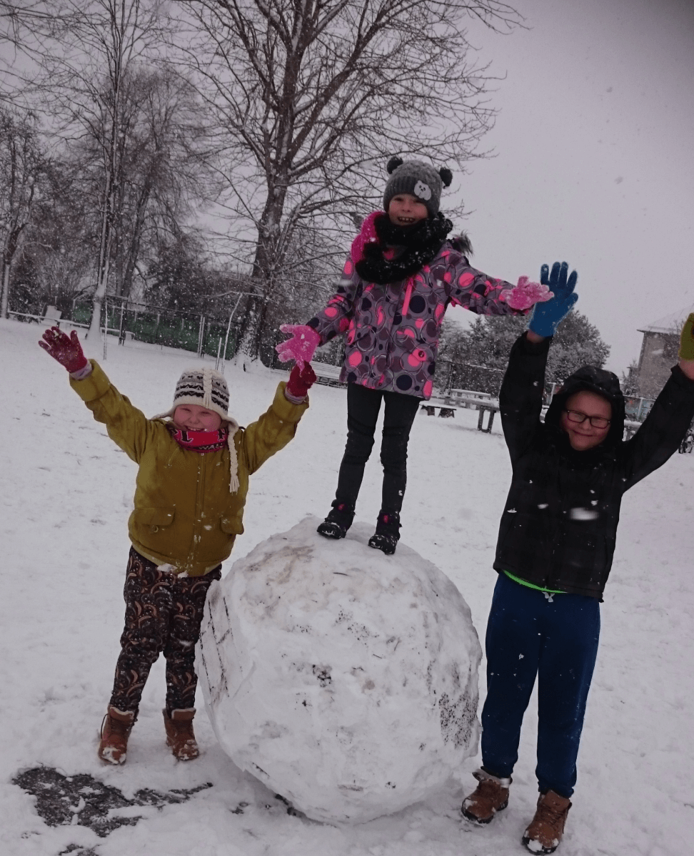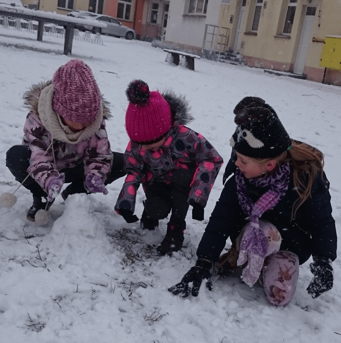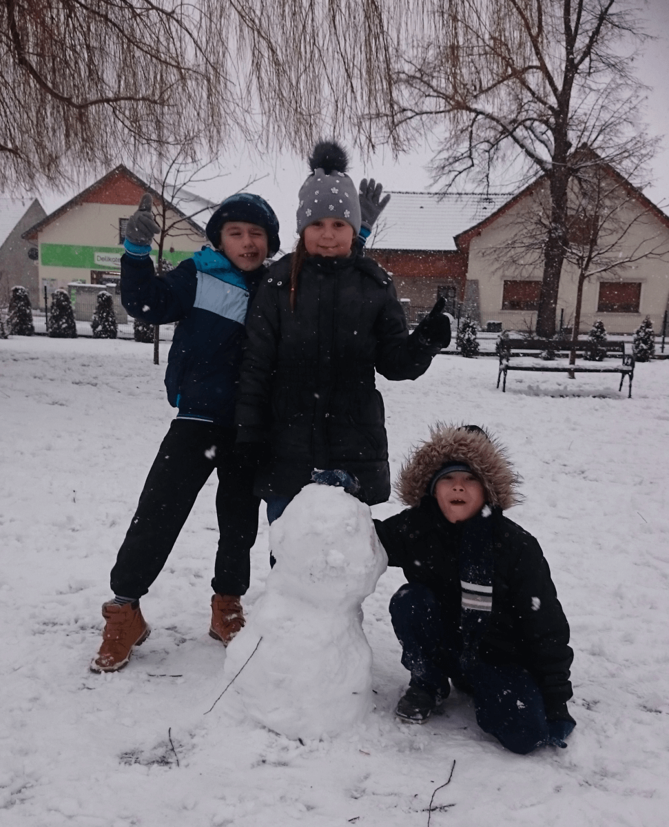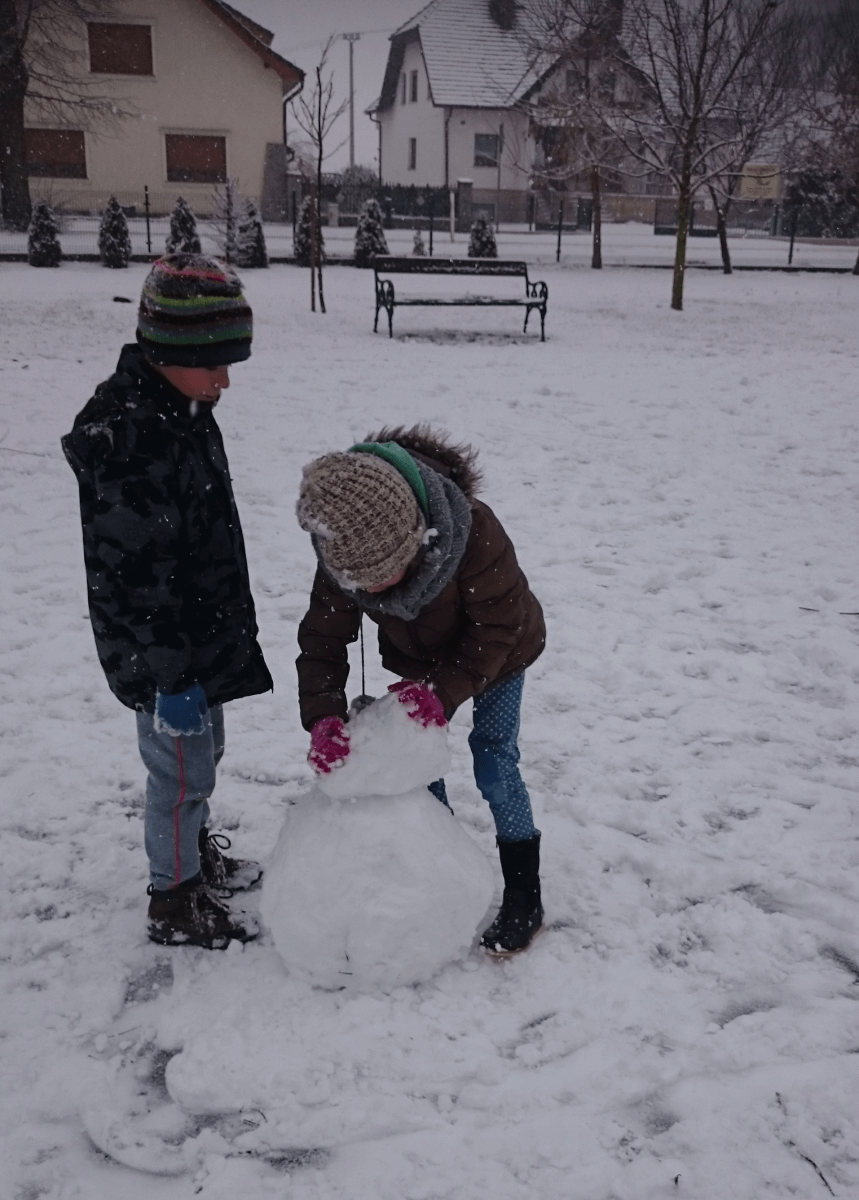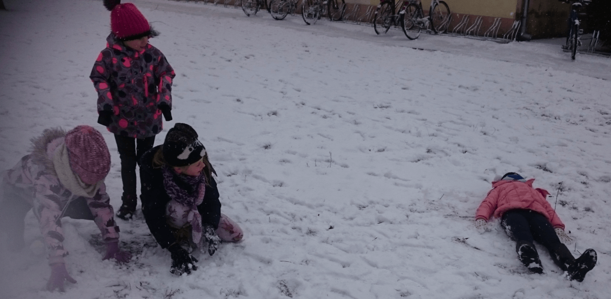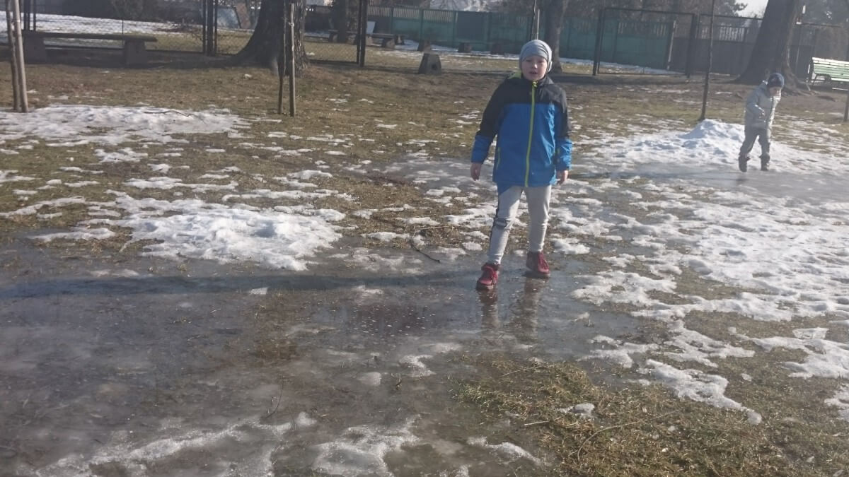 W tym roku zima nietypowa, bo pogoda zupełnie do zimy niepodobna. Tylko parę dni mieliśmy trochę radości, więc z przyjemnością wybraliśmy się na podwórko szkolne. Śniegu co prawda było mało, ale zabawa w śnieżki i tak nam się udała