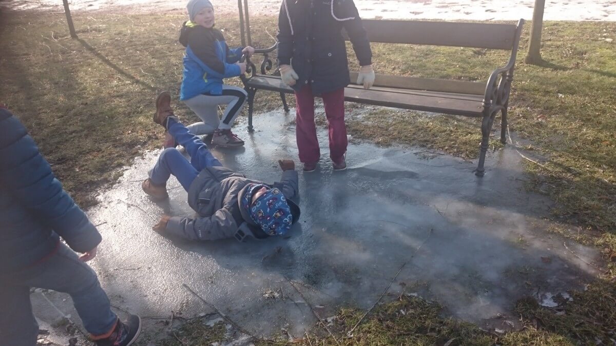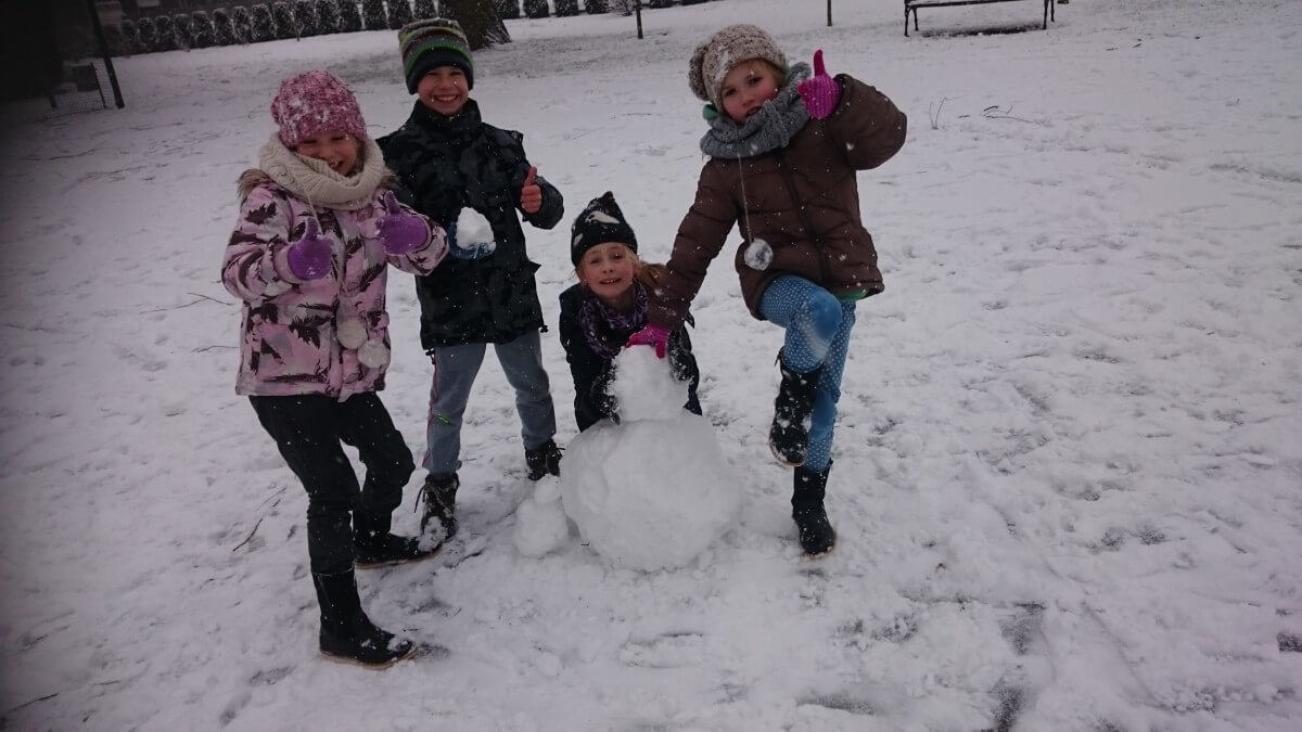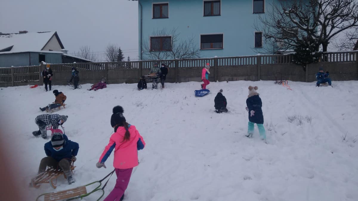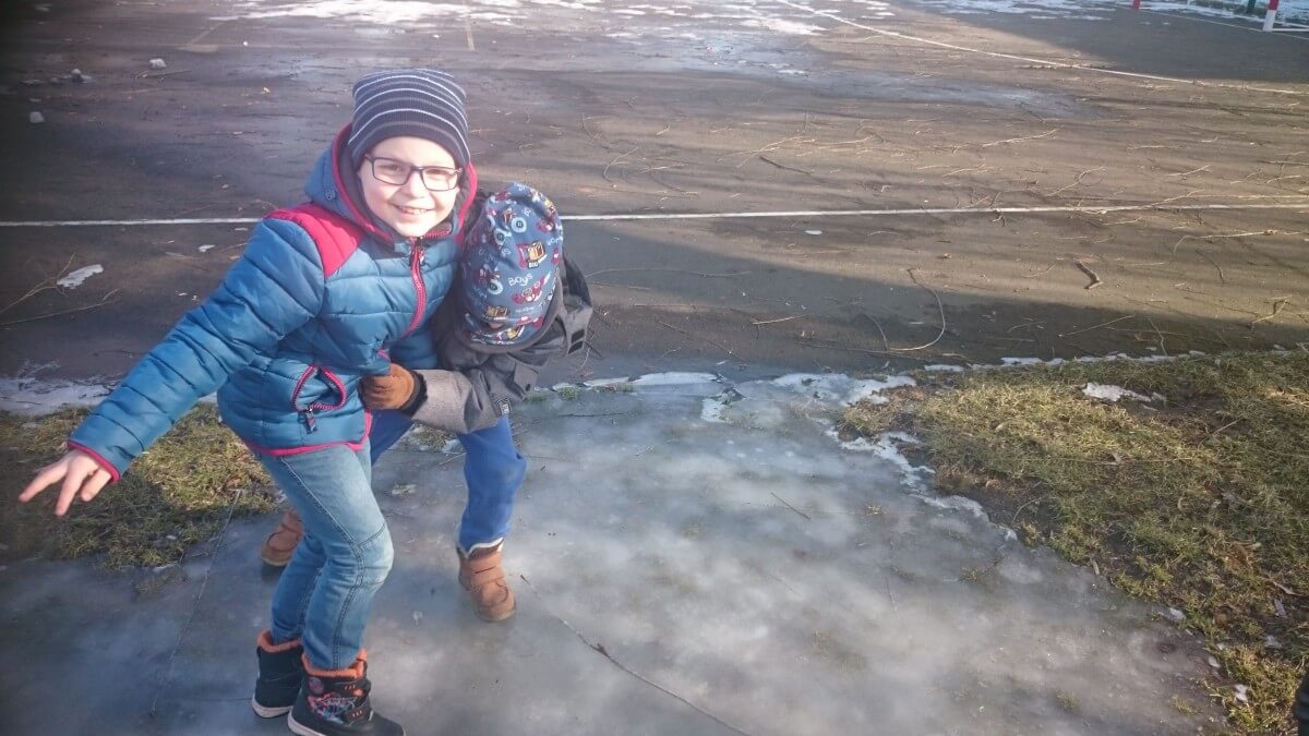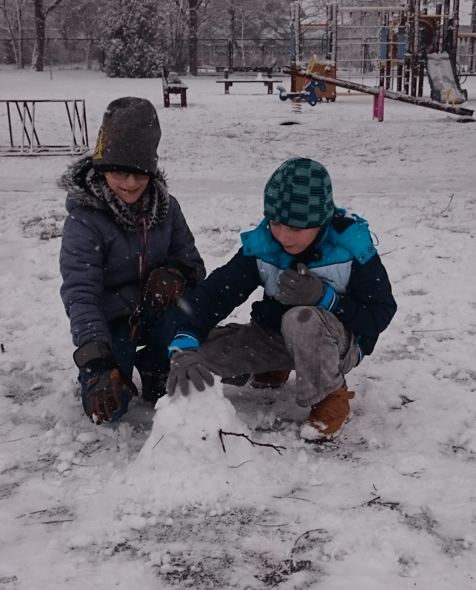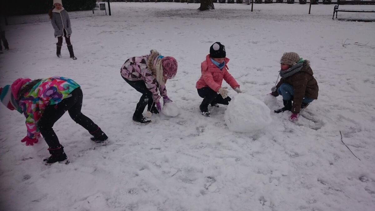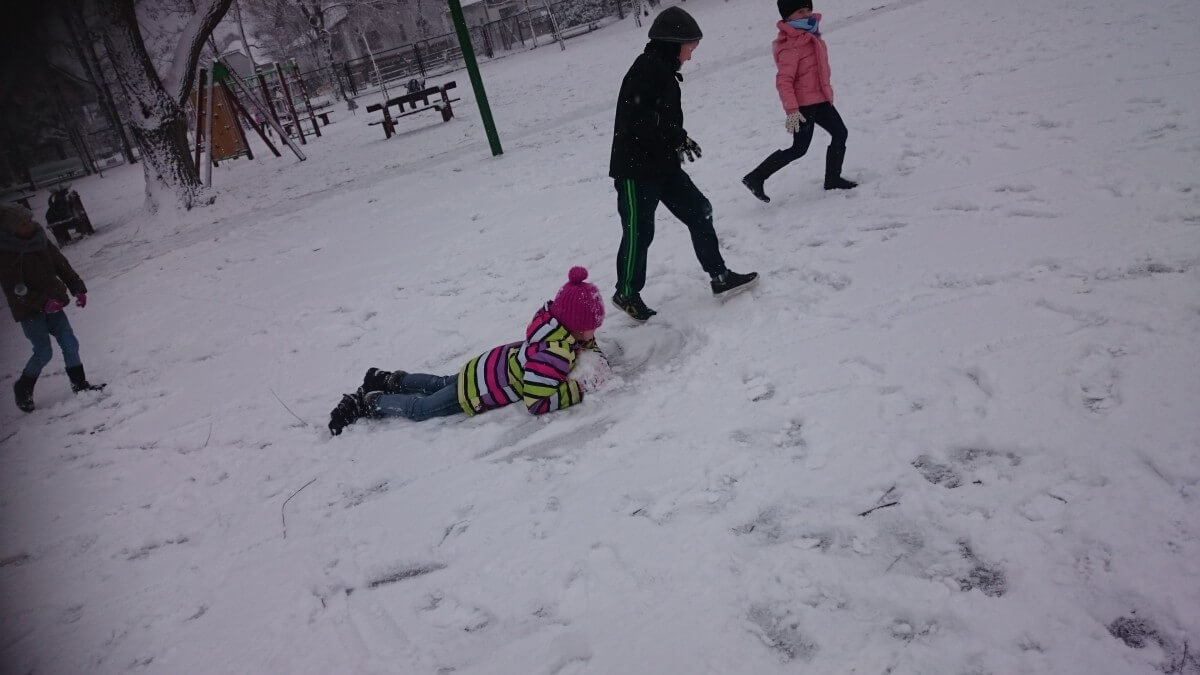 W tym roku zima nietypowa, bo pogoda zupełnie do zimy niepodobna. Tylko parę dni mieliśmy trochę radości, więc z przyjemnością wybraliśmy się na podwórko szkolne. Śniegu co prawda było mało, ale zabawa w śnieżki i tak nam się udała