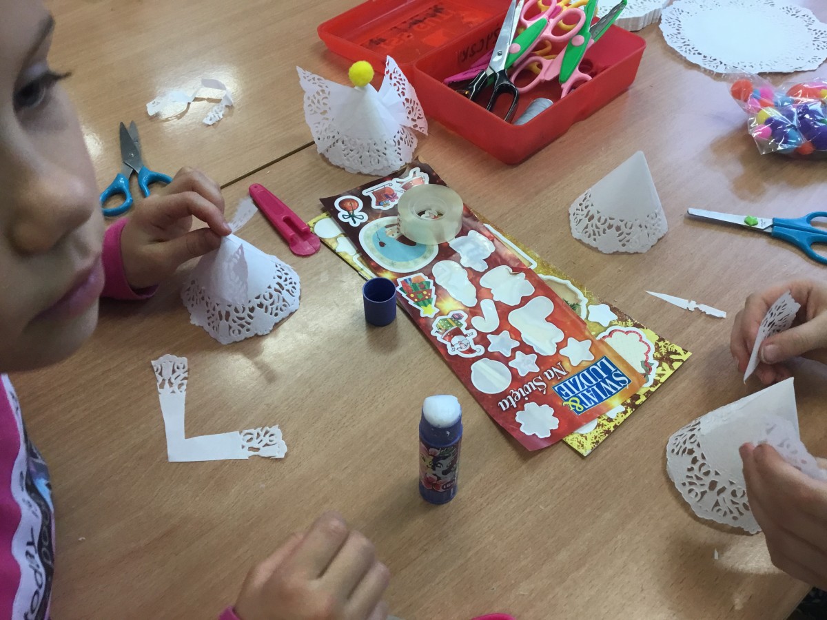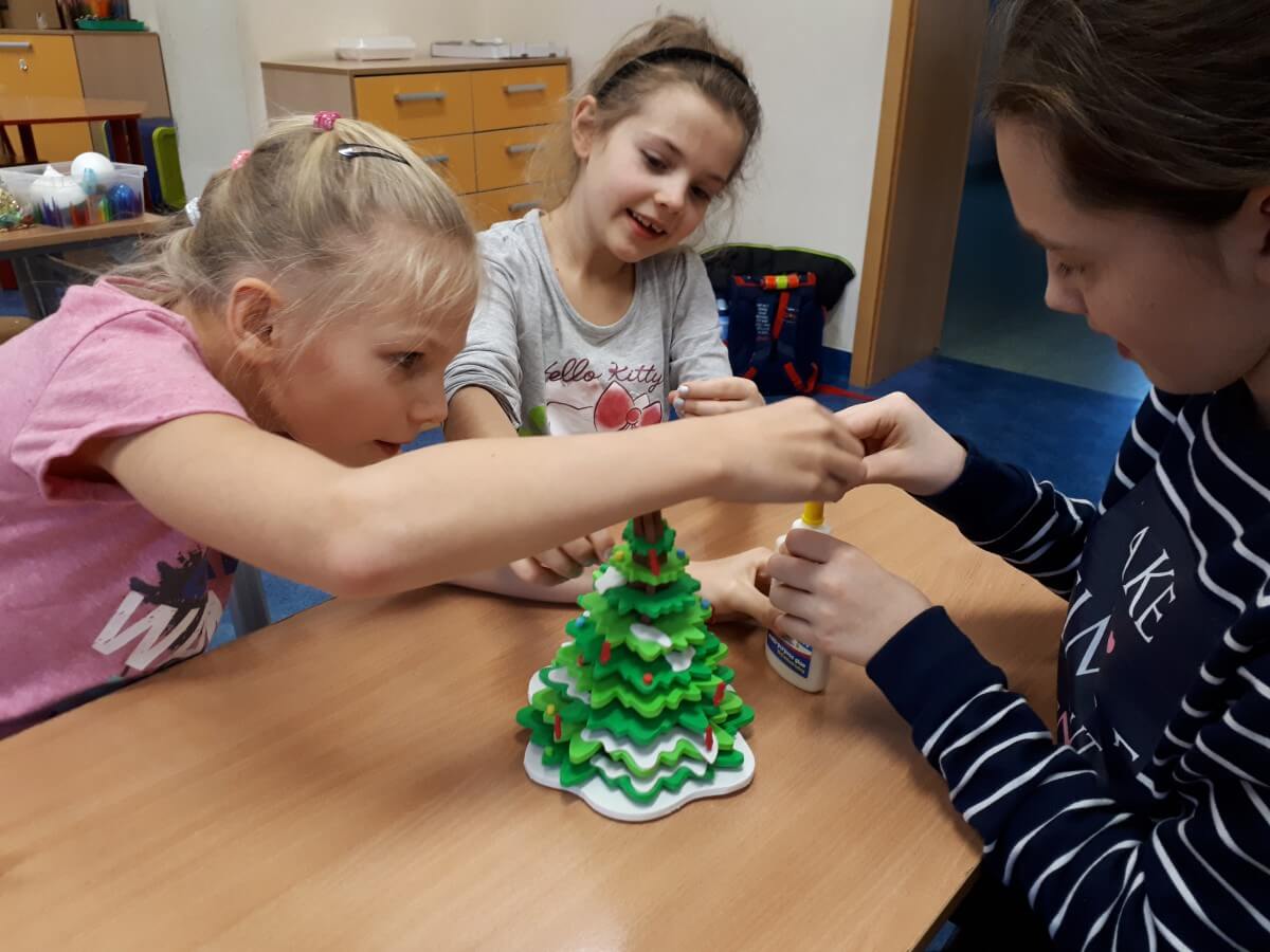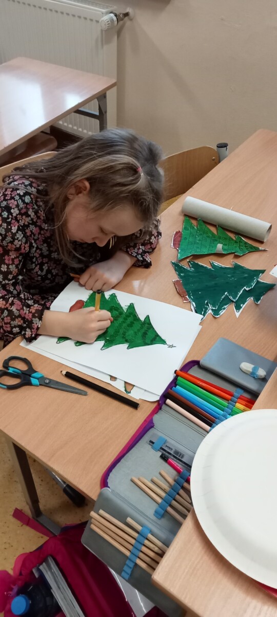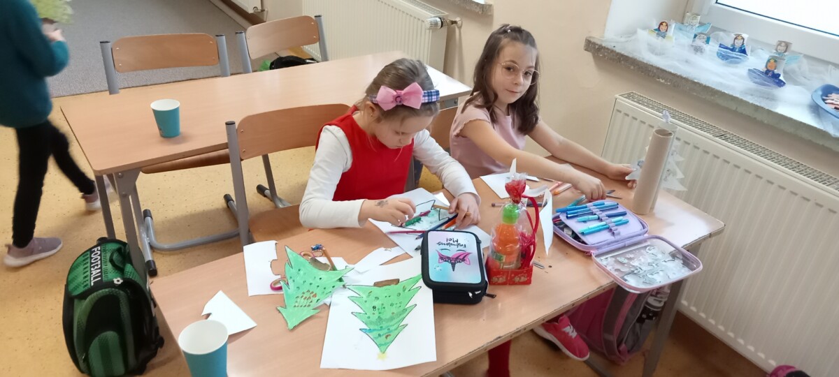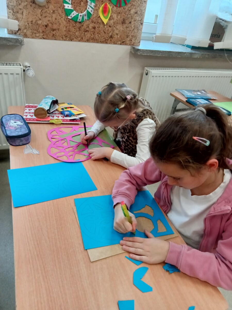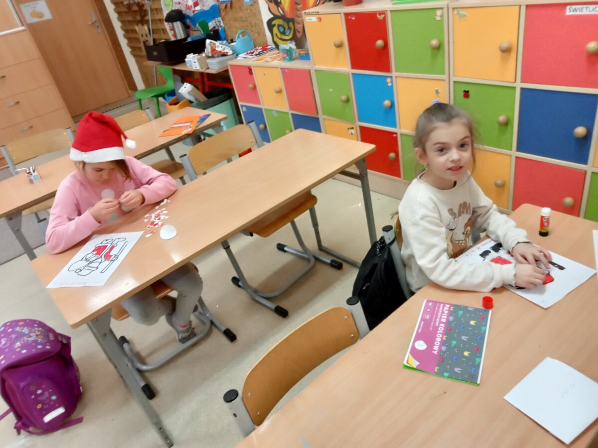 Okres przedświąteczny spędziliśmy w świetlicy bardzo pracowicie. Opowiadaliśmy sobie i tradycjach świątecznych w naszych domach. Każdego dnia w okresie adwentu kolorowaliśmy oraz wycinaliśmy mandale, z czego powstała bardzo kolorowa gazetka. Wykonaliśmy także scenkę z aniołkami, a na koniec zazieleniło się od pachnących choineczek. Pracy było tak dużo, a Święta przeminęły tak szybko.