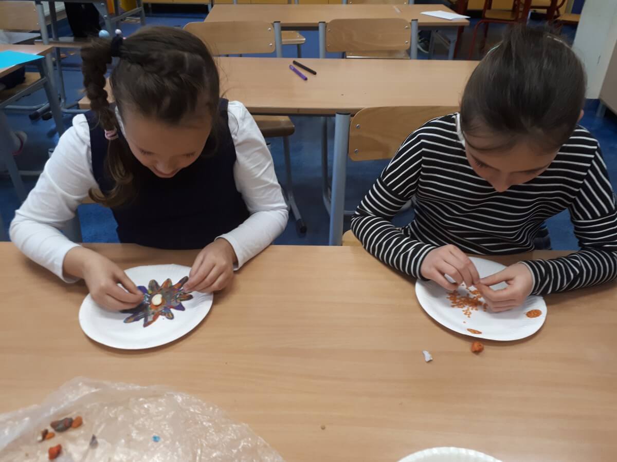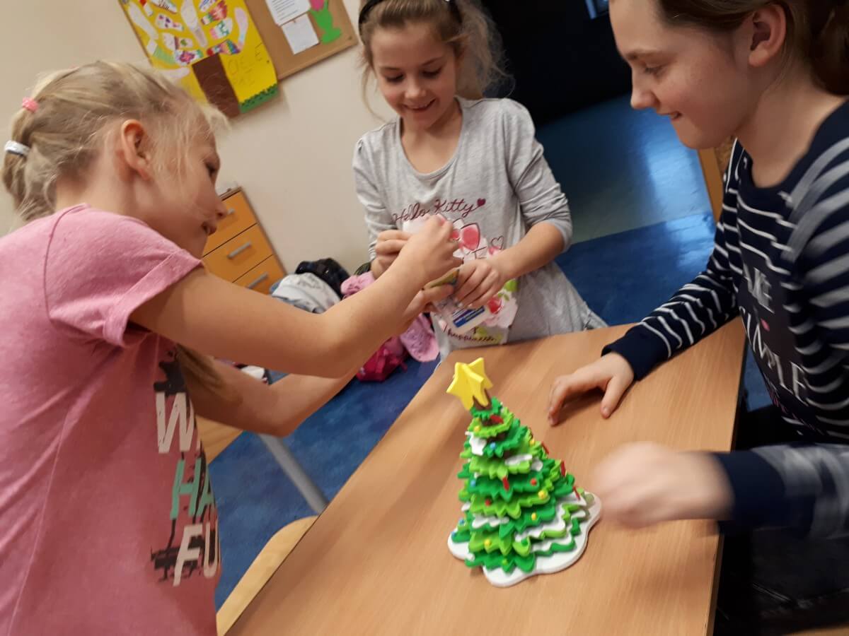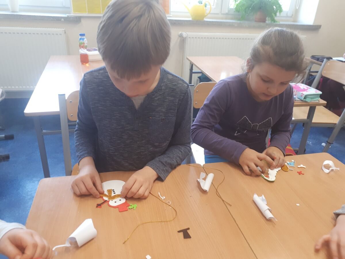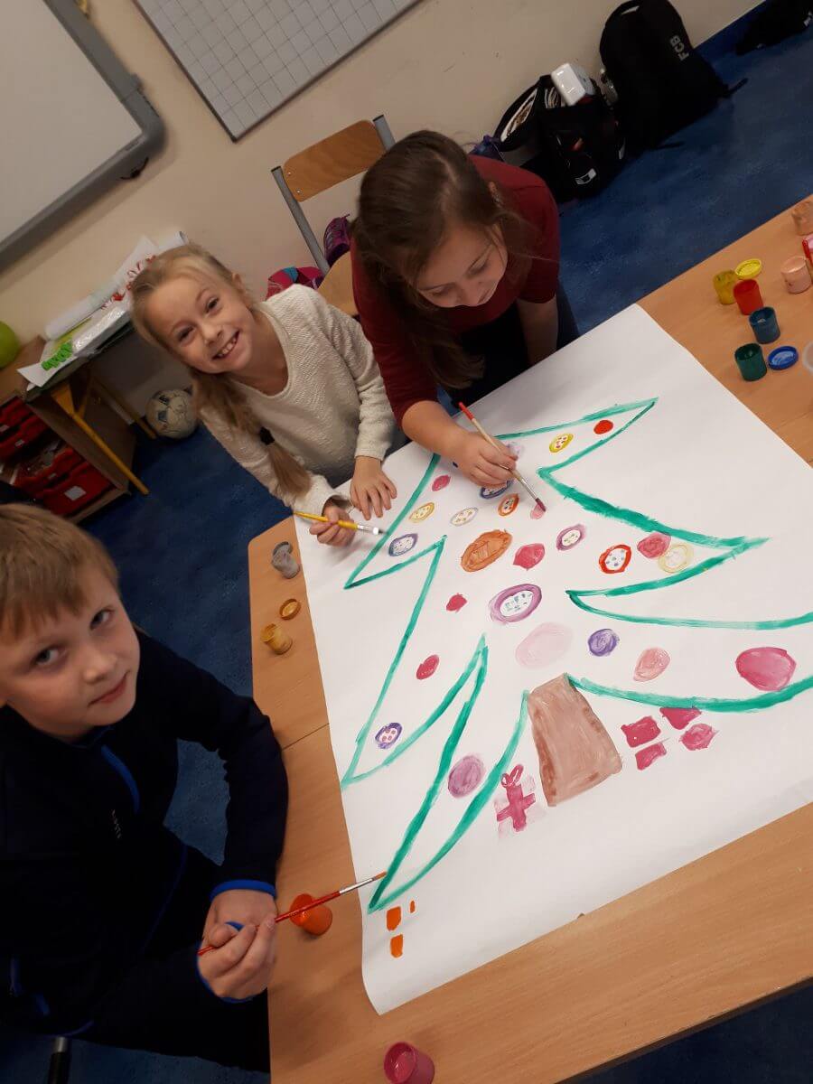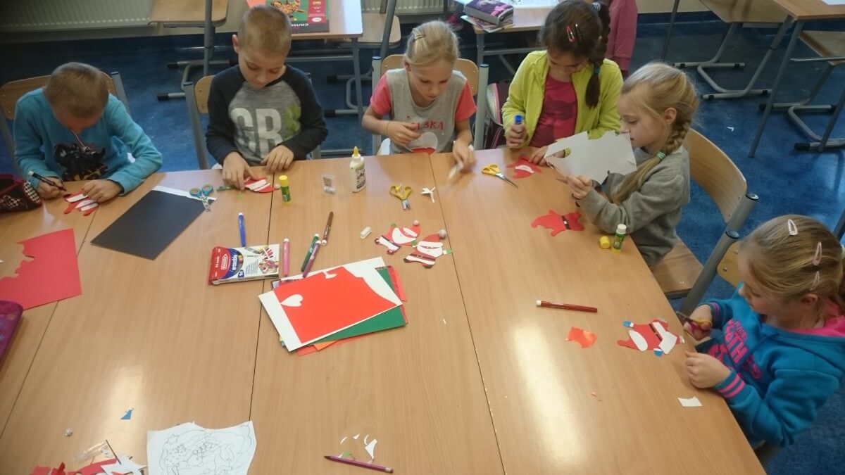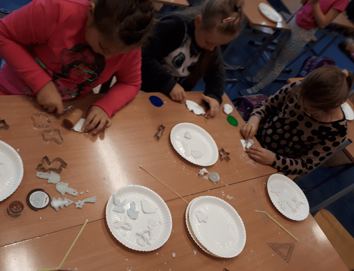 Okres przedświąteczny spędziliśmy w świetlicy bardzo pracowicie. Opowiadaliśmy sobie i tradycjach świątecznych w naszych domach. Każdego dnia w okresie adwentu kolorowaliśmy oraz wycinaliśmy mandale, z czego powstała bardzo kolorowa gazetka. Wykonaliśmy także scenkę z aniołkami, a na koniec zazieleniło się od pachnących choineczek. Pracy było tak dużo, a Święta przeminęły tak szybko.