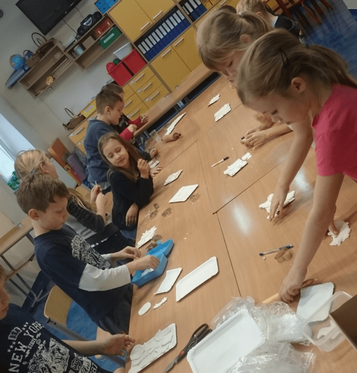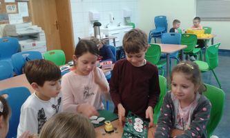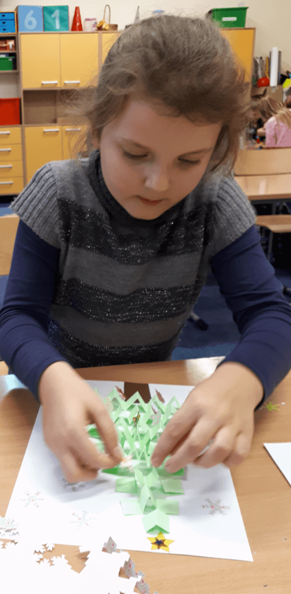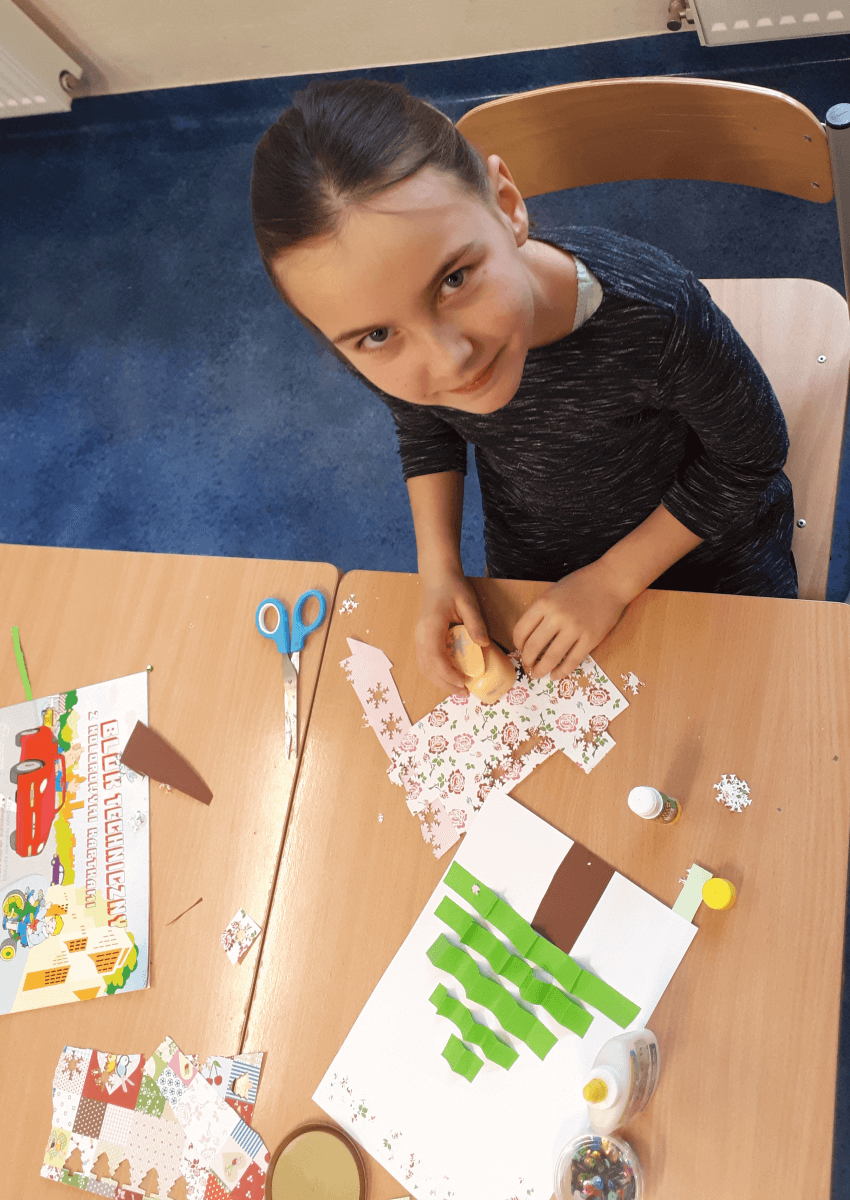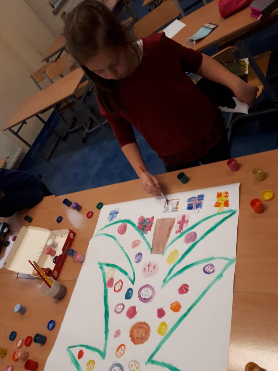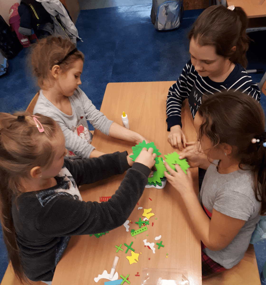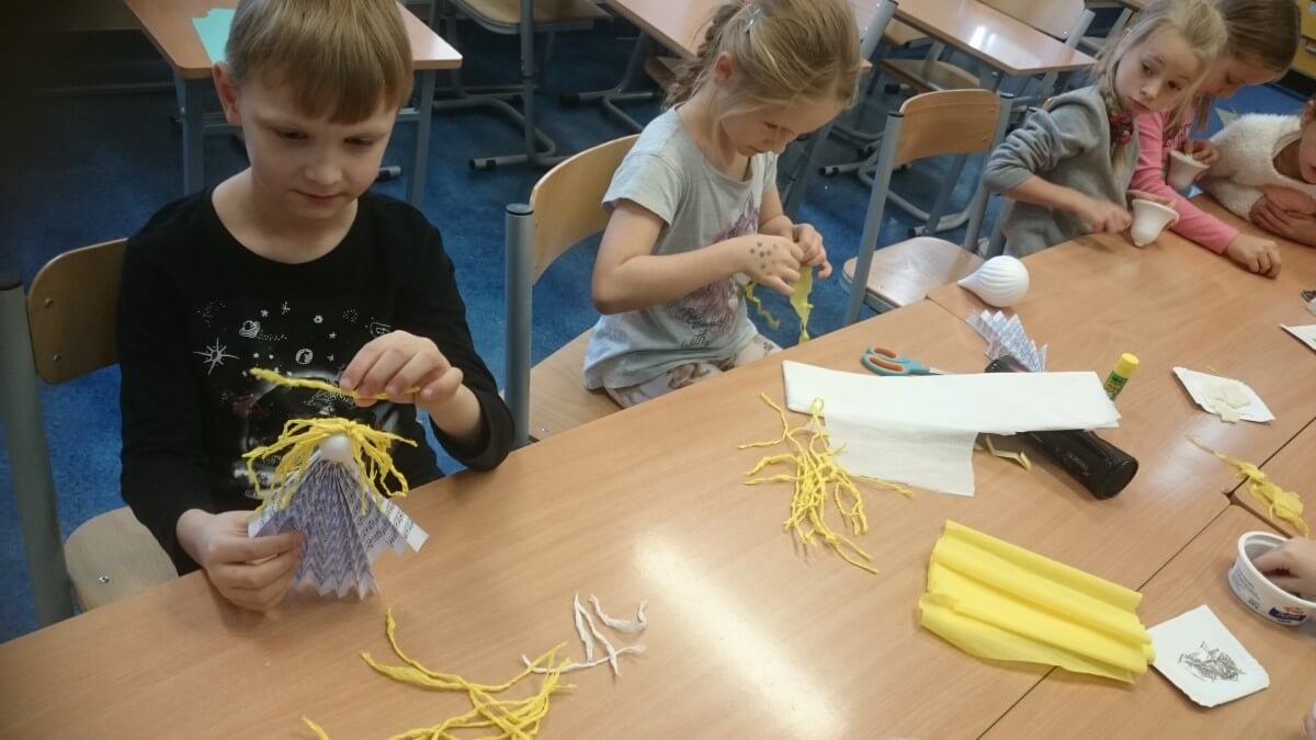 Okres przedświąteczny spędziliśmy w świetlicy bardzo pracowicie. Opowiadaliśmy sobie i tradycjach świątecznych w naszych domach. Każdego dnia w okresie adwentu kolorowaliśmy oraz wycinaliśmy mandale, z czego powstała bardzo kolorowa gazetka. Wykonaliśmy także scenkę z aniołkami, a na koniec zazieleniło się od pachnących choineczek. Pracy było tak dużo, a Święta przeminęły tak szybko.