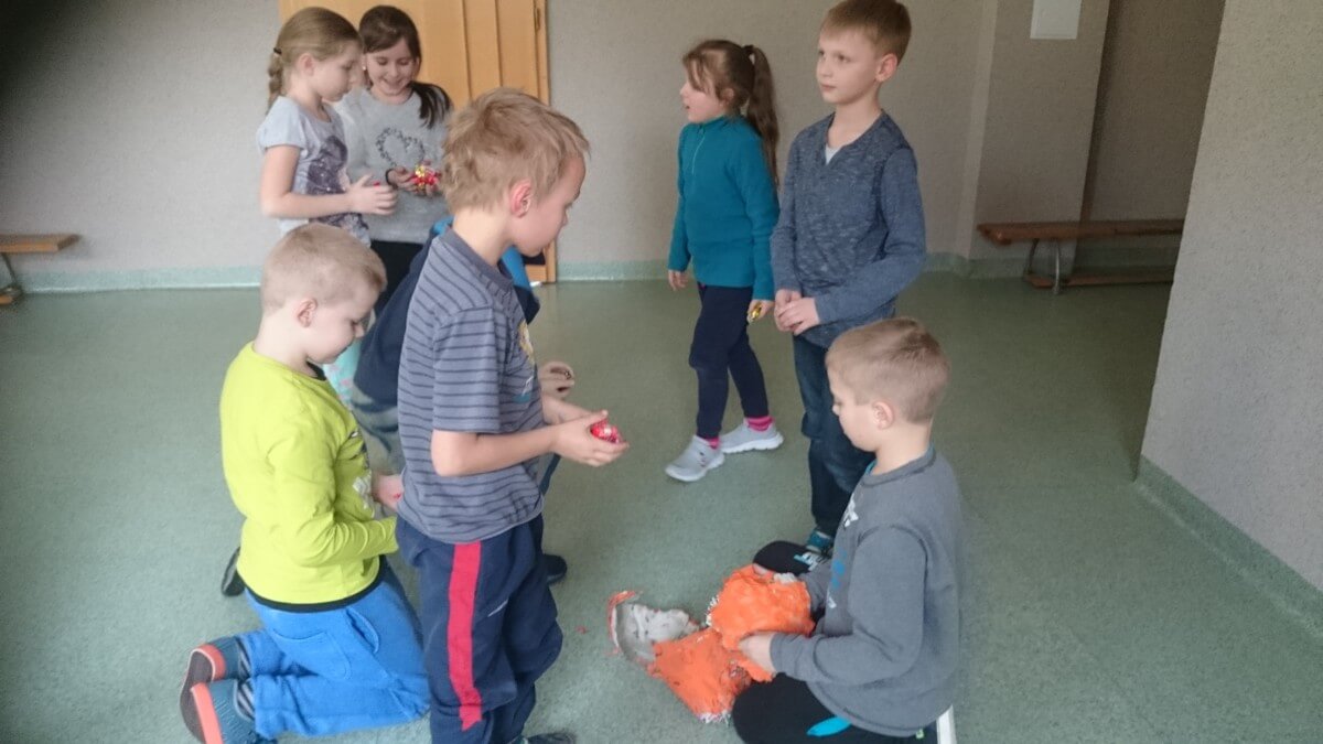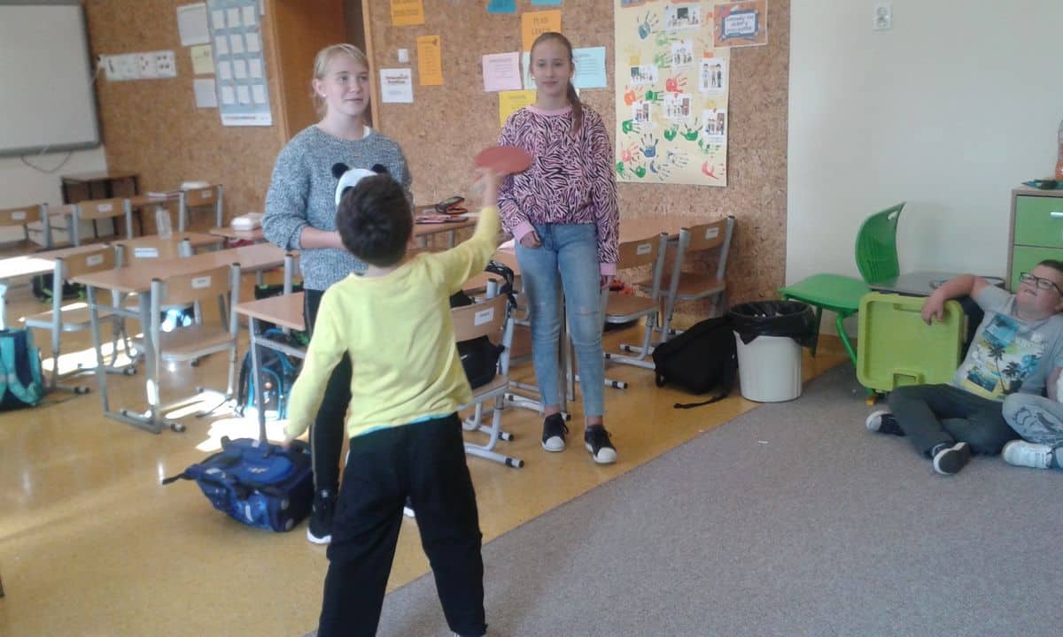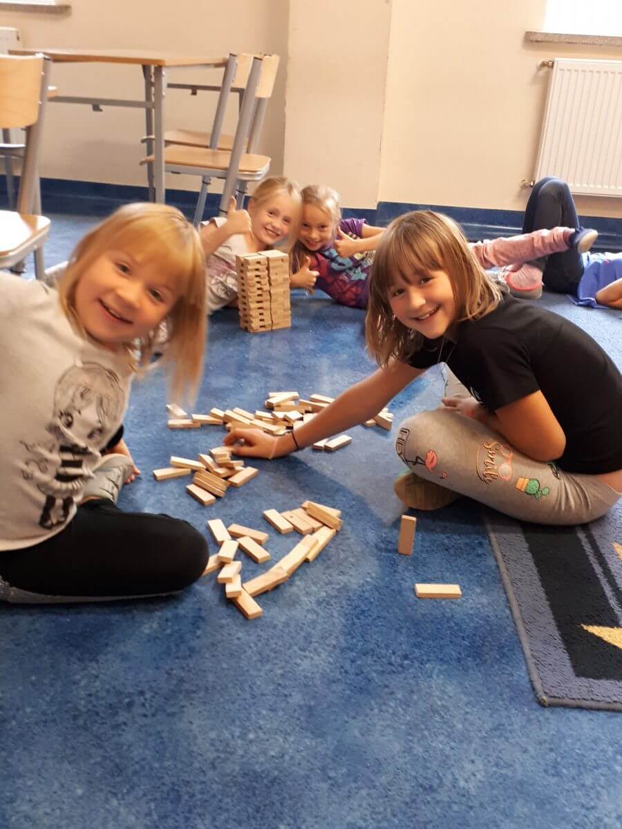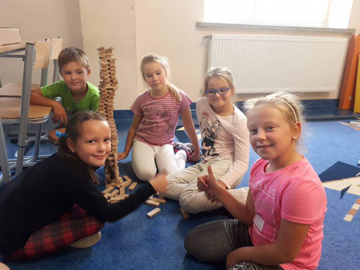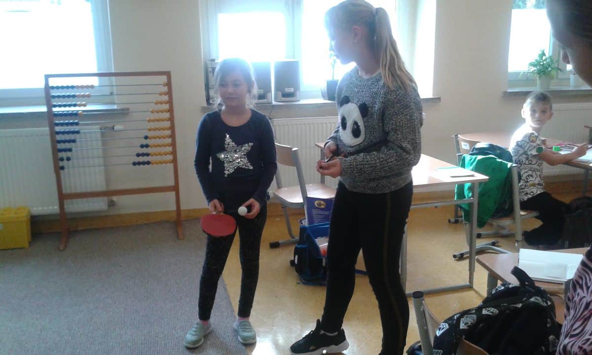 W dniu 22.10 odwiedzili świetlicę szkolni wolontariusze. Uczennice klasy VIB przygotowały dla młodszych kolegów i koleżanek rozgrywki sportowe z wykorzystaniem elementów tenisa stołowego, zabawy grupowe oraz rozgrywki sportowe na wolnym powietrzu. Zarówno uczestnicy jak i wolontariuszki dobrze się bawili.