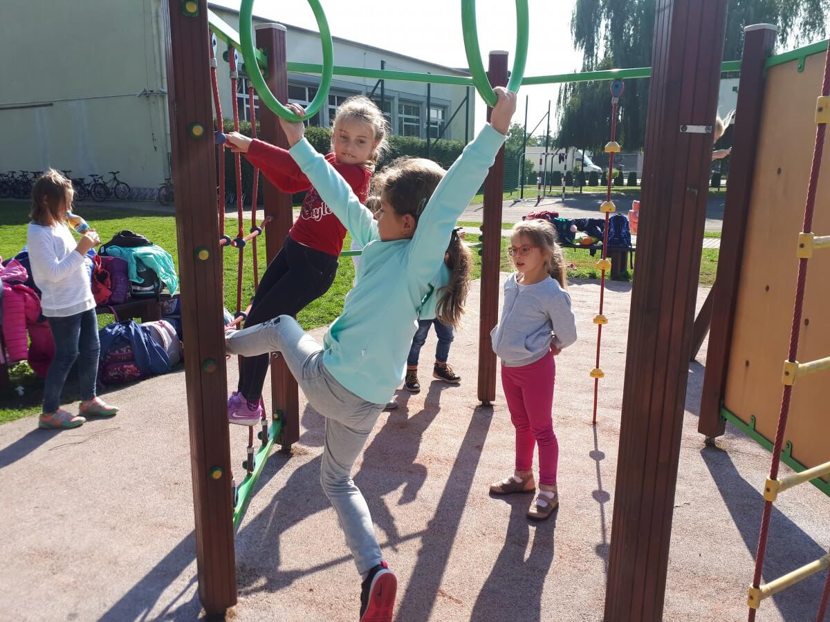 Podczas zajęć świetlicowych, jeśli tylko pogoda na to pozwala, uczniowie chętnie korzystają z placu zabaw oraz ze szkolnego boiska grając w przeróżne zabawy także sportowe. Oto krótka relacja z ich ostatnich piątkowych zajęć na świetlicy.