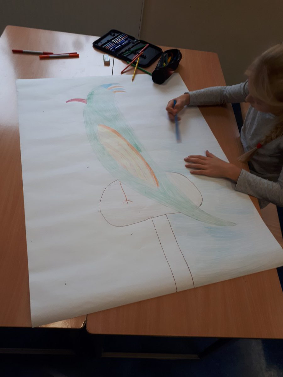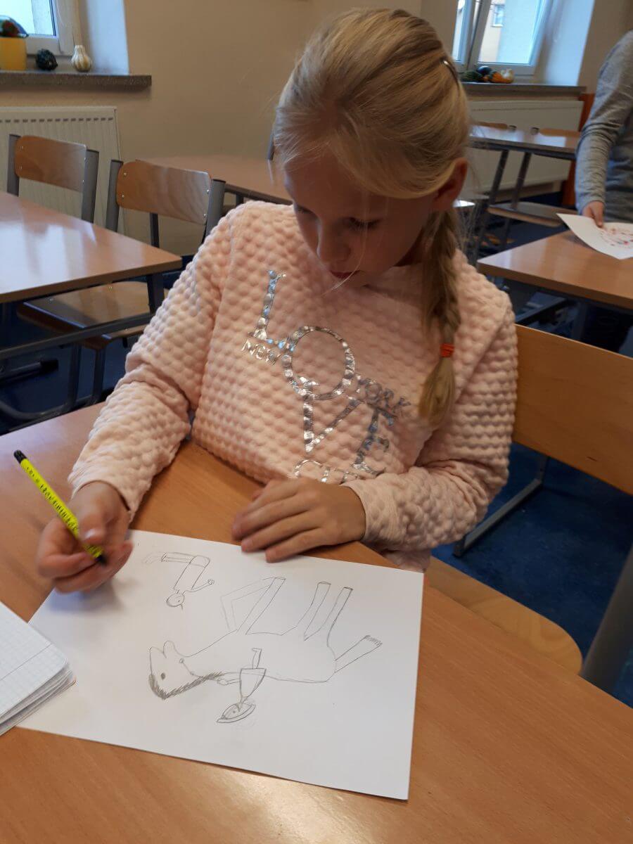 W dniu 22.11 uczniowie stanęli przed bardzo trudnym zadaniem. Składało się z dwóch części: wysłuchanie utworu „Lot trzmiela” wersji rockowej, a po nim zilustrowanie dzieła muzycznego na kartce papieru. Dzieci zabrały się do pracy, jednak nie było to łatwe zadanie, ponieważ trzeba było zilustrować dźwięk. Uczniowie jednak sobie świetnie z nim poradzili. Ich twórczość można podziwiać na świetlicowej gazetce.