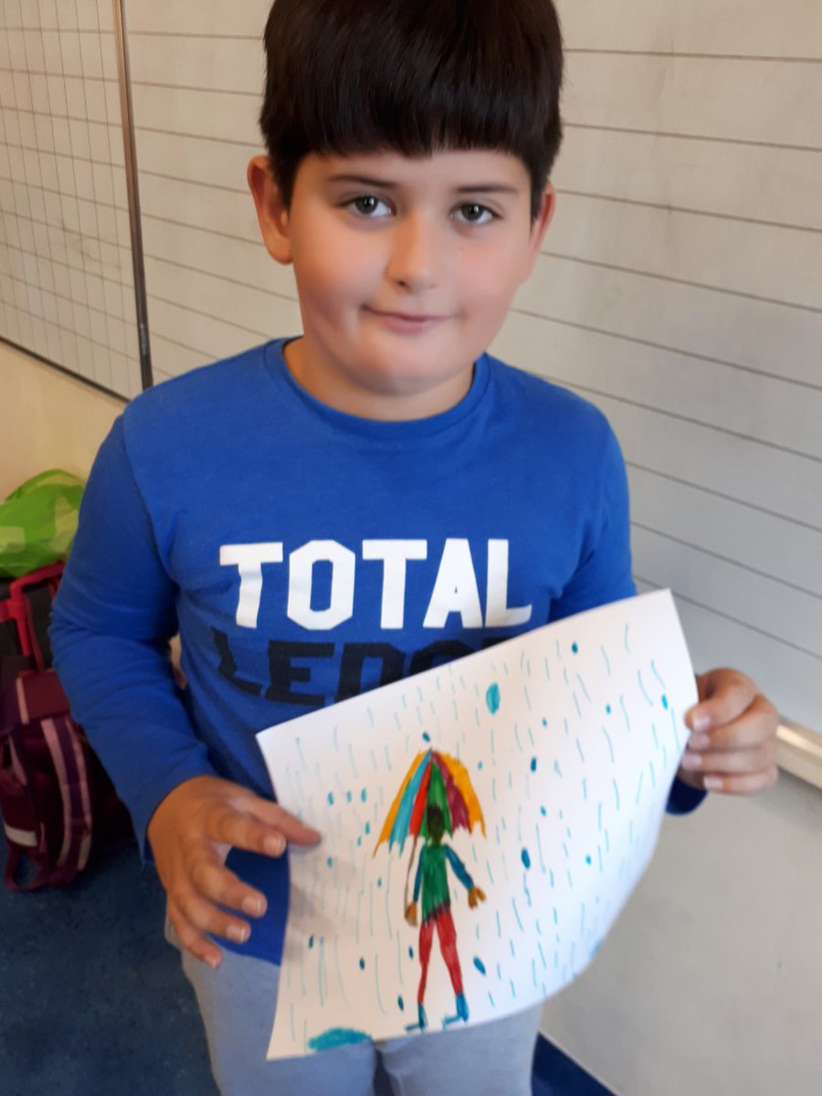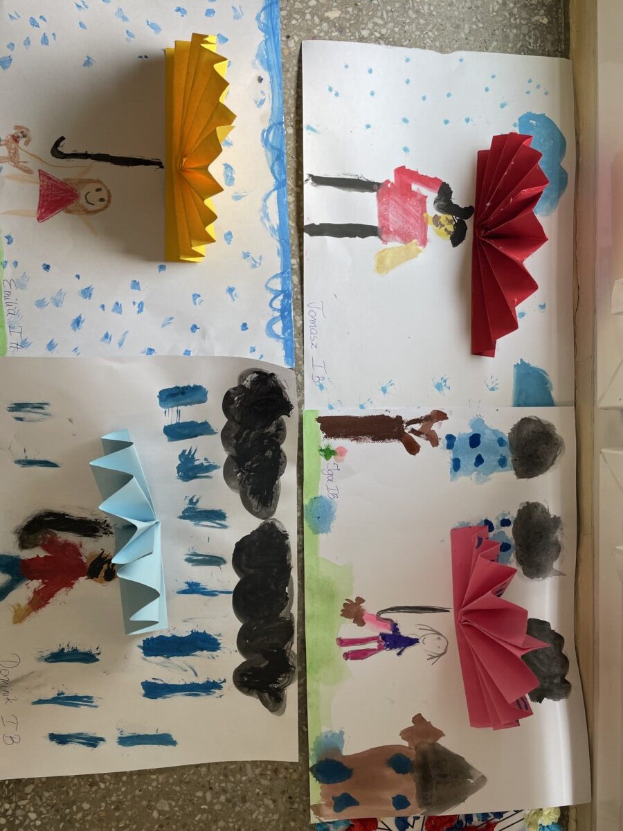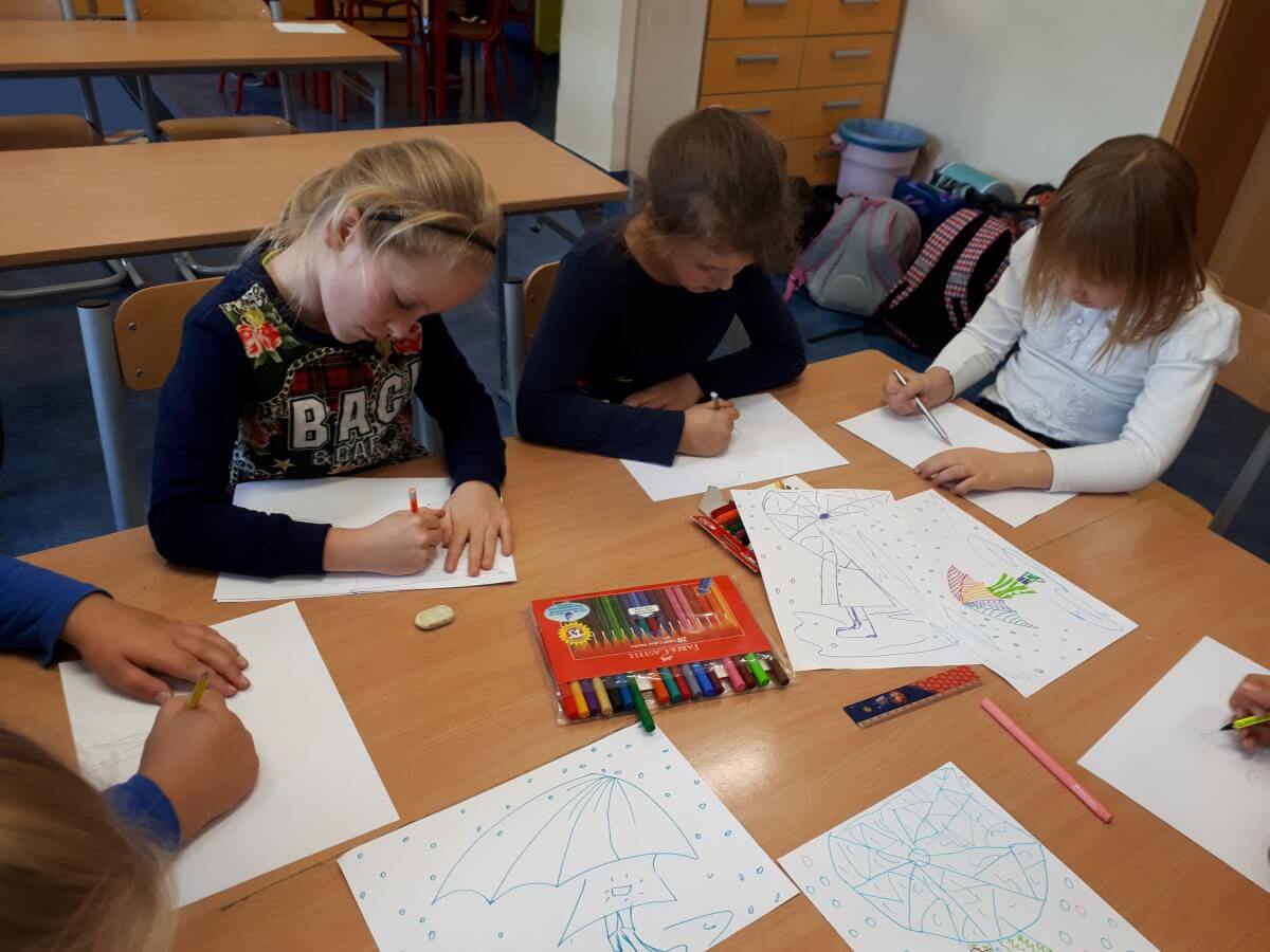1 października uczniowie klas 1 wzięli udział w wyjątkowych zajęciach świetlicowych, podczas których mieli okazję stworzyć prace plastyczne pt. „Jesienny deszcz”. Temat ten idealnie wpisał się w aktualną, jesienną aurę, a także pozwolił dzieciom wyrazić swoją kreatywność oraz rozwijać zdolności manualne. Celem zajęć było pobudzenie wyobraźni najmłodszych i zachęcenie ich do samodzielnej pracy twórczej, wykorzystując różnorodne techniki plastyczne. Każdy uczeń miał za zadanie stworzyć obraz przedstawiający deszczową, jesienną scenerię, w której główną rolę grał wyjątkowy parasol. Podczas zajęć dzieci korzystały z różnorodnych materiałów – kolorowego papieru, kredek oraz farb.
