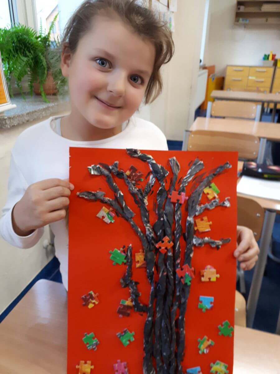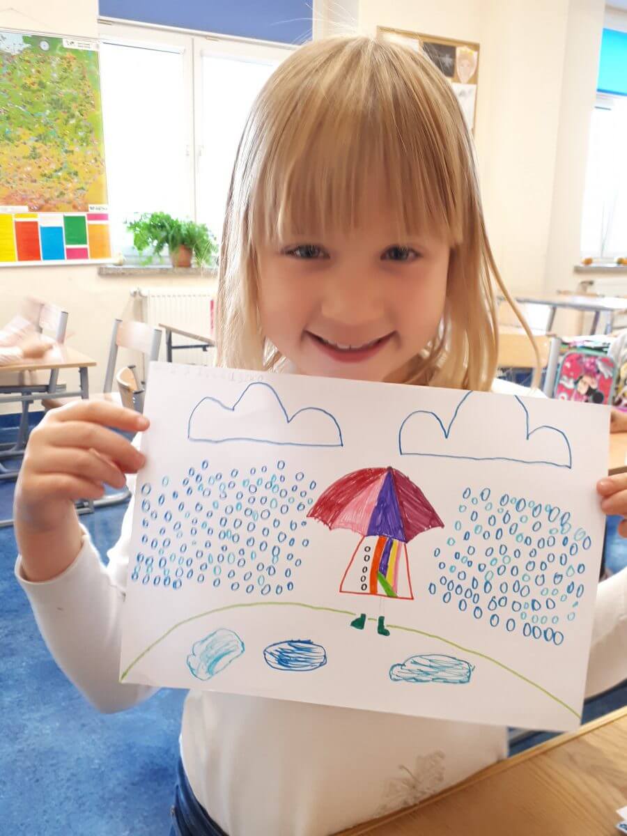 Temat „Jesienny deszcz” okazał się inspirującym wyzwaniem, które zachęciło dzieci do patrzenia na świat w sposób twórczy i pełen barw, nawet w te bardziej deszczowe dni. Serdecznie gratulujemy wszystkim pierwszoklasistom zaangażowania i pięknych prac! Czekamy z niecierpliwością na kolejne twórcze wyzwania i wyjątkowe pomysły.