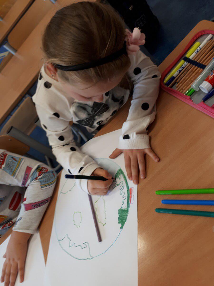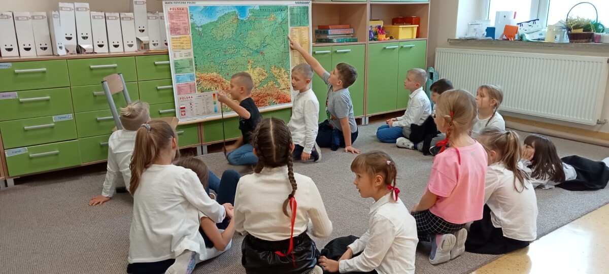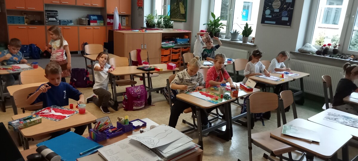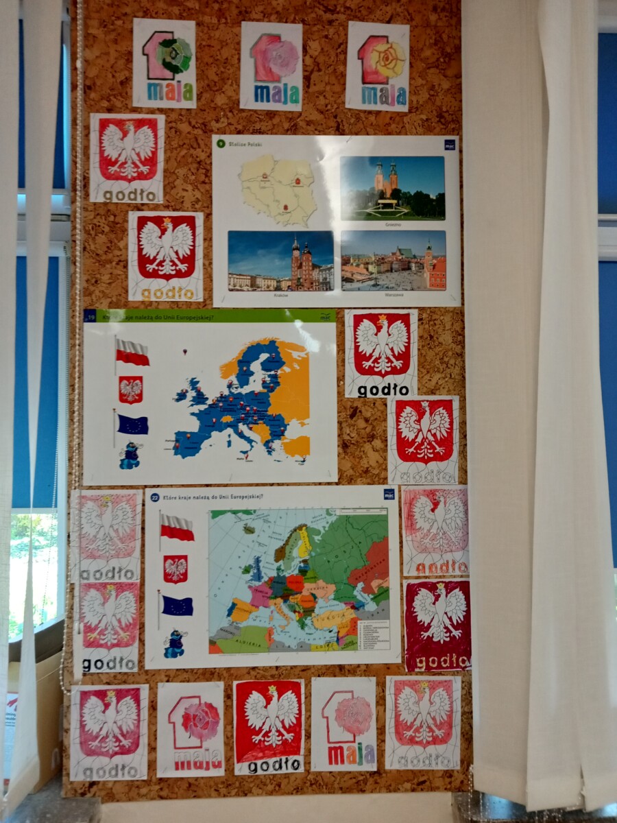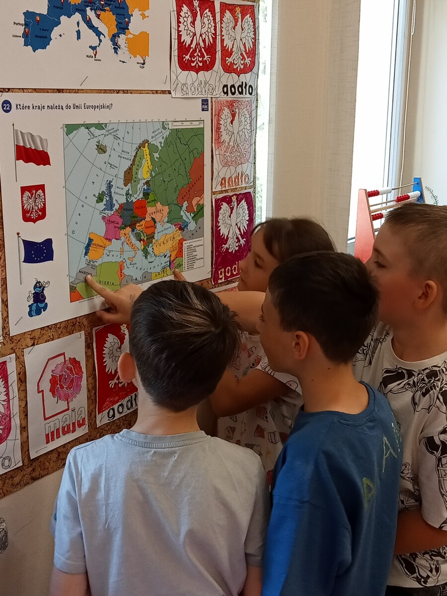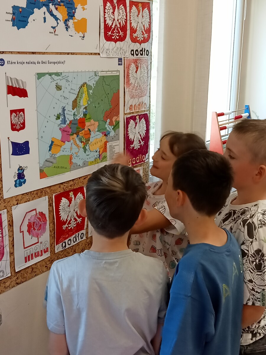 Ważne daty w kalendarzu mają również odzwierciedlenie w pracy świetlicy szkolnej. Święto Narodowe było okazją, by przypomnieć uczniom symbole narodowe. Podczas pracy z mapą uczniowie mogli pochwalić się swoimi wiadomościami o Polsce. Godne pochwały jest to, że uczniowie klas młodszych mogą się pochwalić tym, jak dużo widzieli i jak wiele wiedzą.