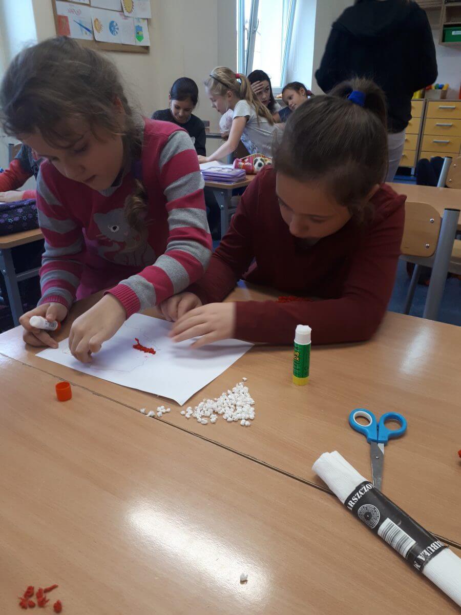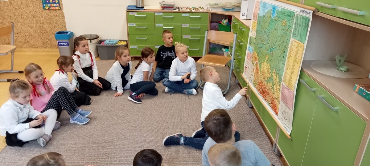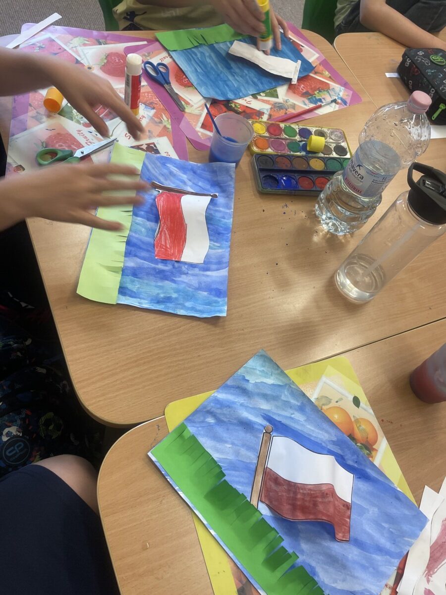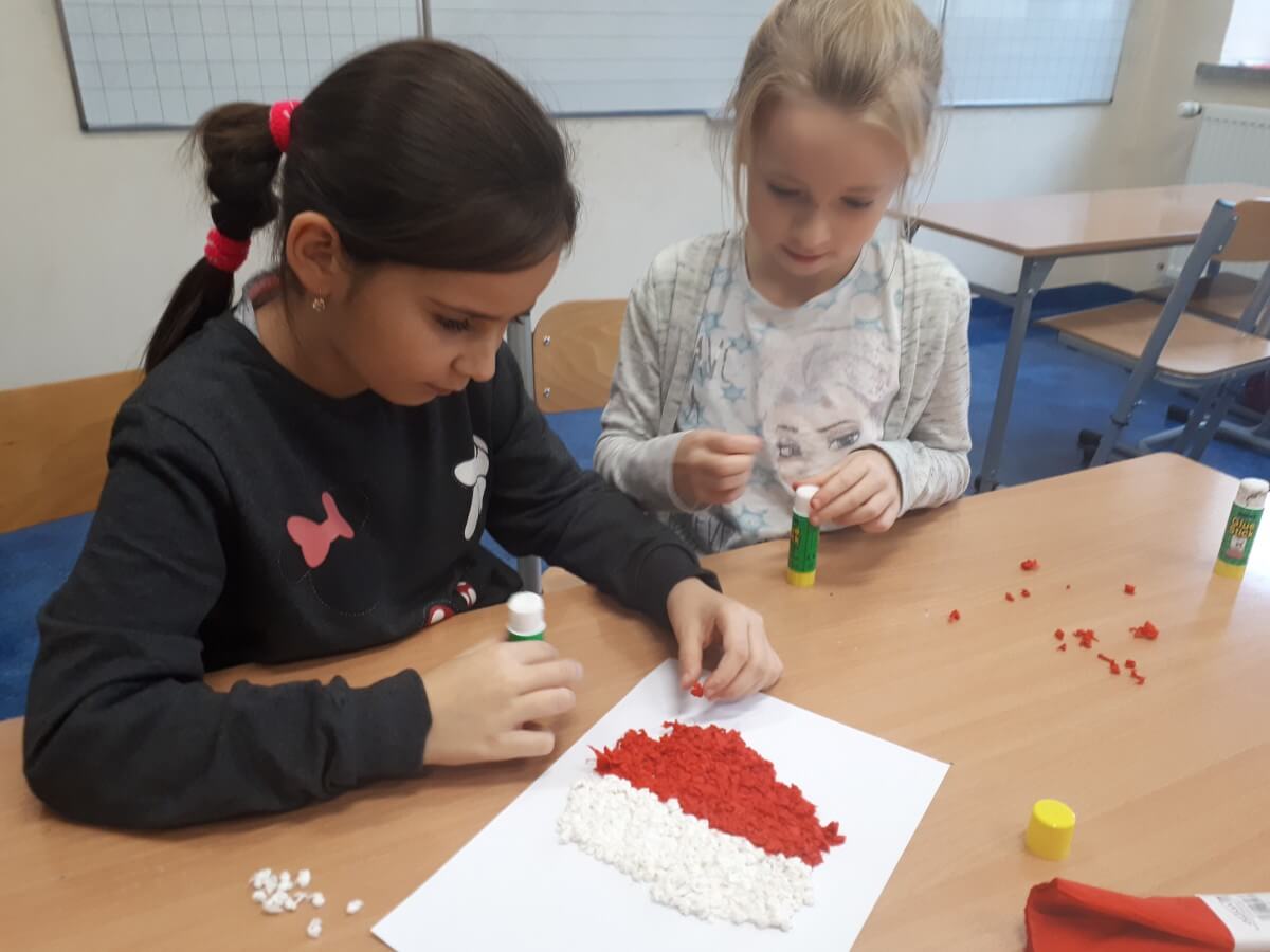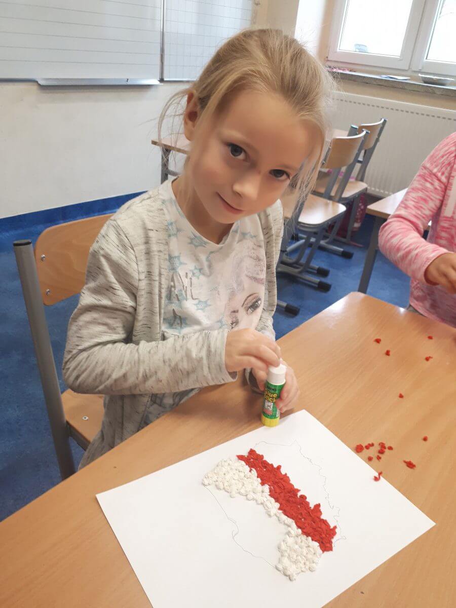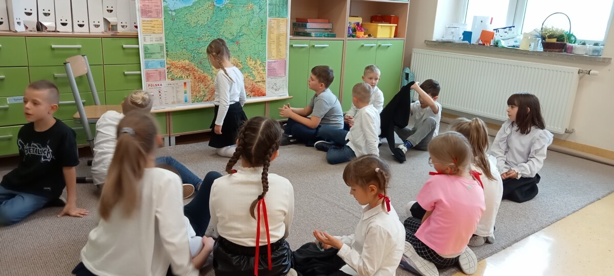 Ważne daty w kalendarzu mają również odzwierciedlenie w pracy świetlicy szkolnej. Święto Narodowe było okazją, by przypomnieć uczniom symbole narodowe. Podczas pracy z mapą uczniowie mogli pochwalić się swoimi wiadomościami o Polsce. Godne pochwały jest to, że uczniowie klas młodszych mogą się pochwalić tym, jak dużo widzieli i jak wiele wiedzą.