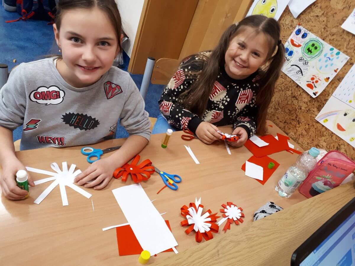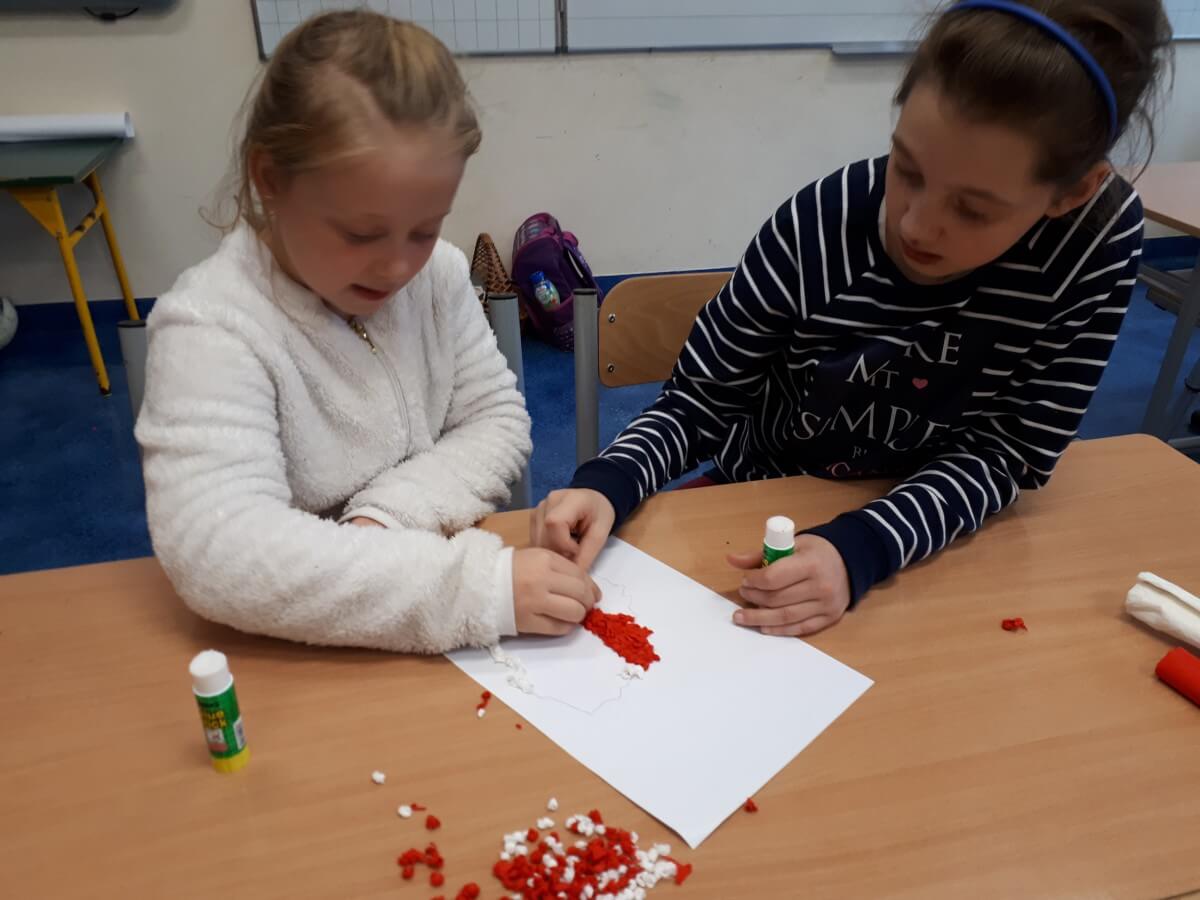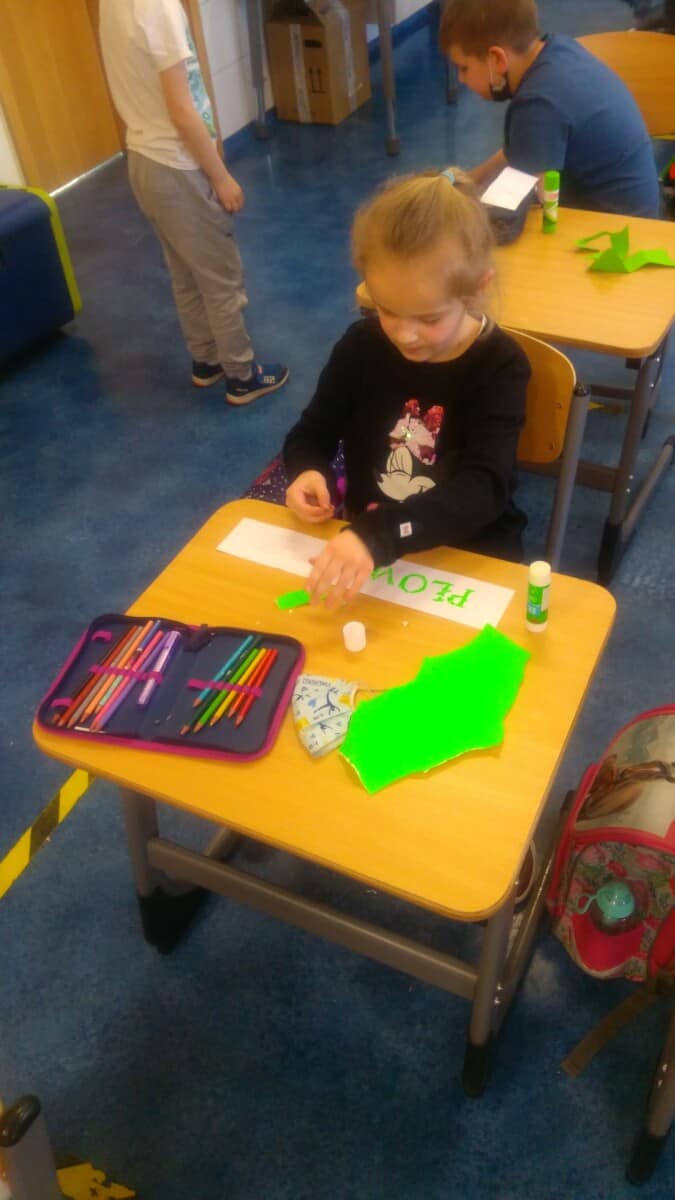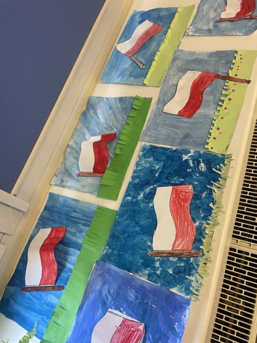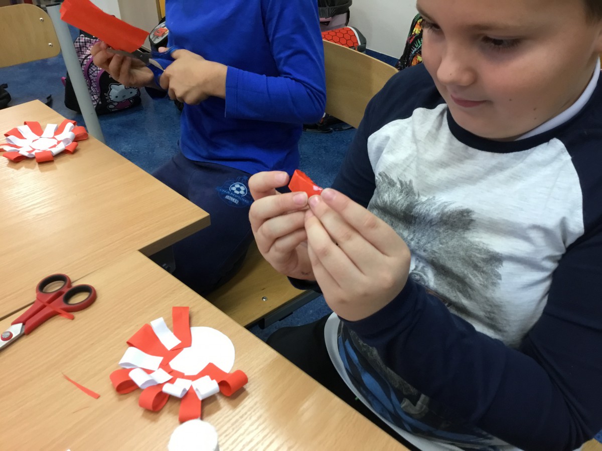 Ważne daty w kalendarzu mają również odzwierciedlenie w pracy świetlicy szkolnej. Święto Narodowe było okazją, by przypomnieć uczniom symbole narodowe. Podczas pracy z mapą uczniowie mogli pochwalić się swoimi wiadomościami o Polsce. Godne pochwały jest to, że uczniowie klas młodszych mogą się pochwalić tym, jak dużo widzieli i jak wiele wiedzą.