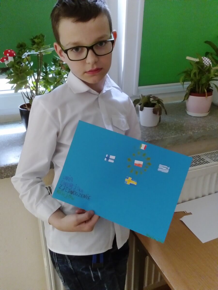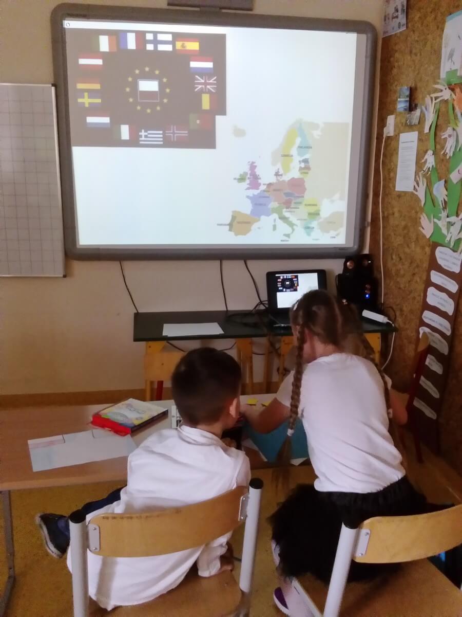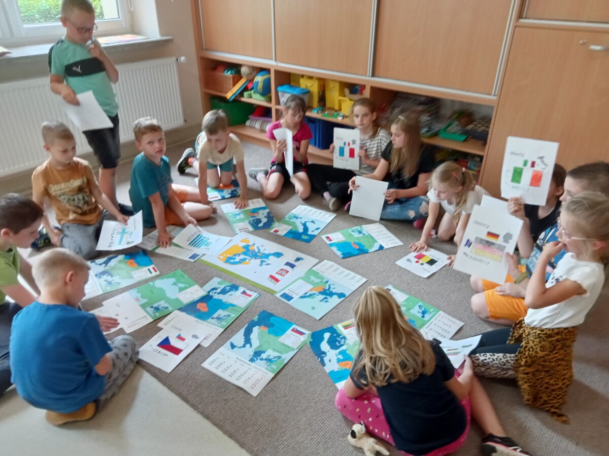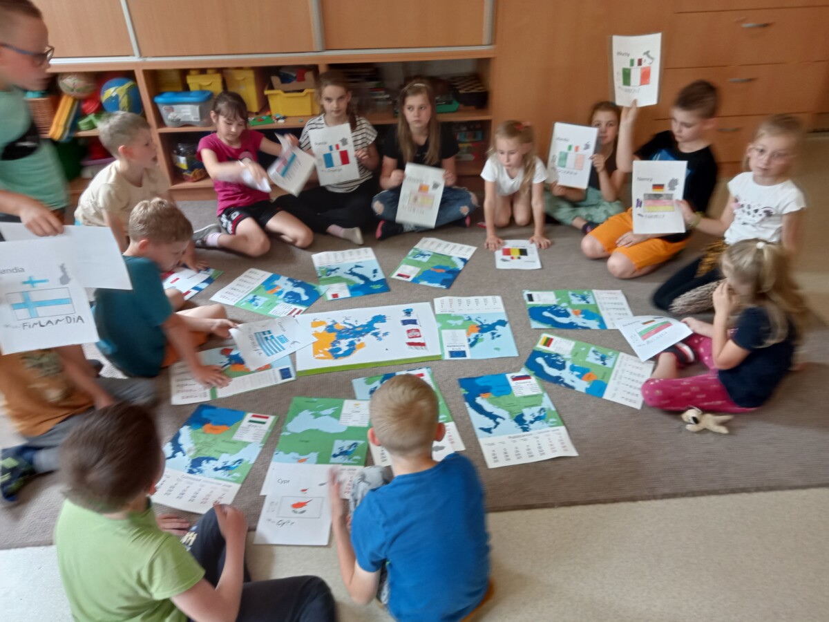 Na początku maja I grupa świetlicowa realizowała projekt na temat UNII Europejskiej. Uczniowie dowiedzieli się jakie kraje tworzą wspólnotę UNII oraz gdzie mieszczą się siedziby władzy UNII. Pracowali z mapą Europy oraz planszami poznając położenie każdego z krajów. Po zaprezentowaniu albumu kolekcjonerskiego mieli również okazję zobaczyć monety Euro z poszczególnych krajów. Na koniec uczniowie wykonali flagi krajów UNII Europejskiej. Zapewne ta wiedza przyda im się w przyszłości.
