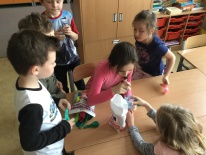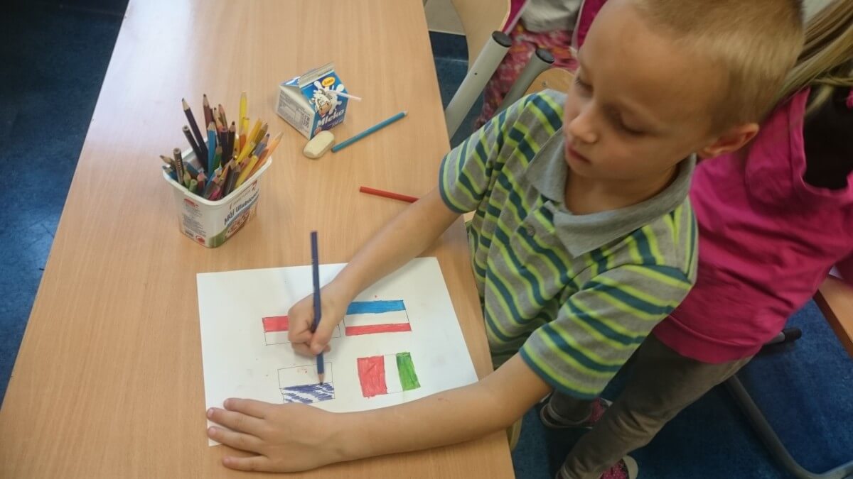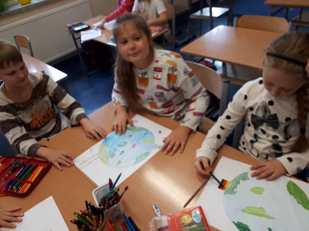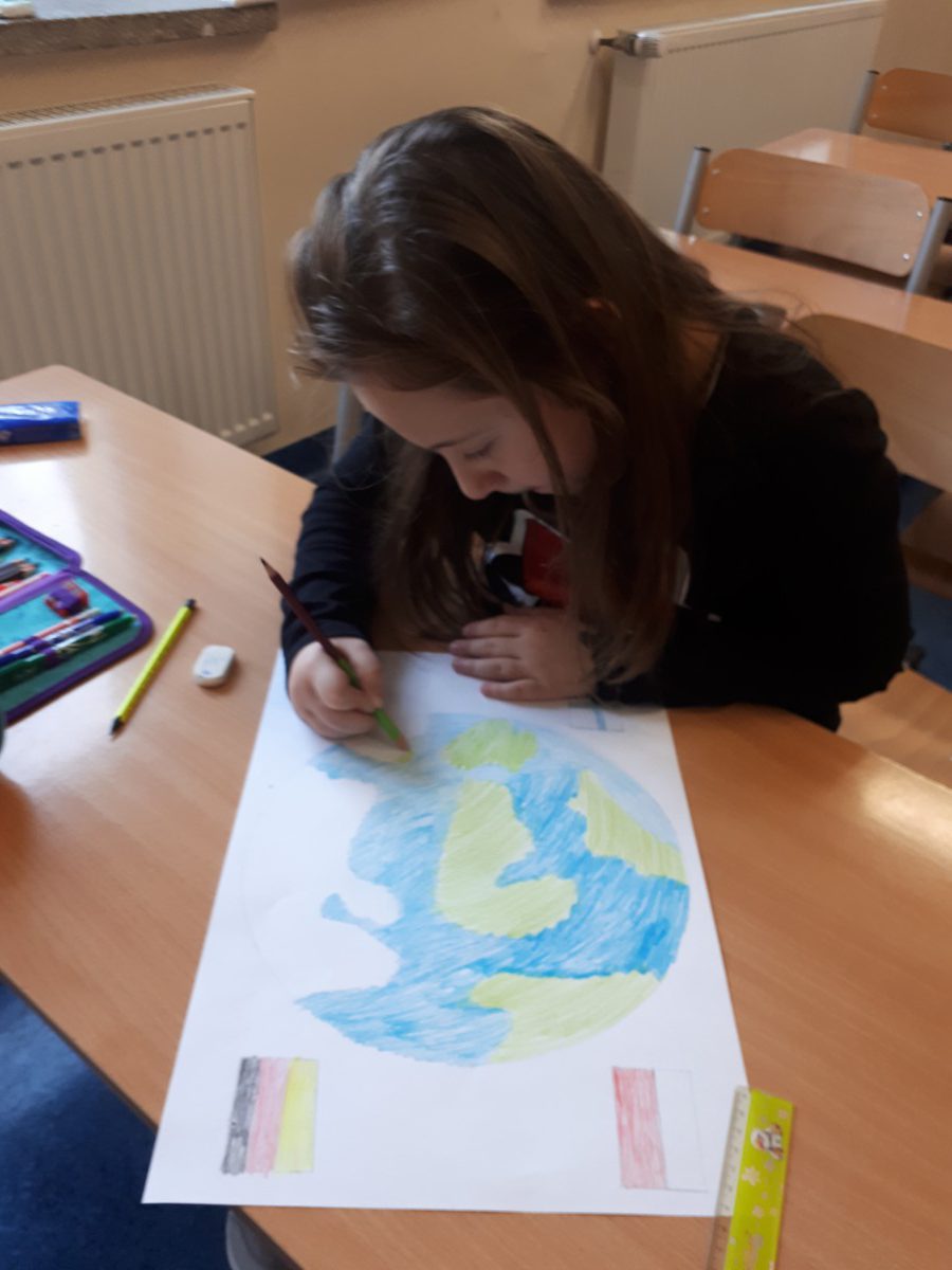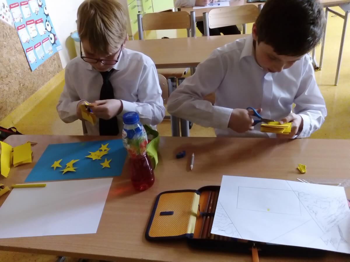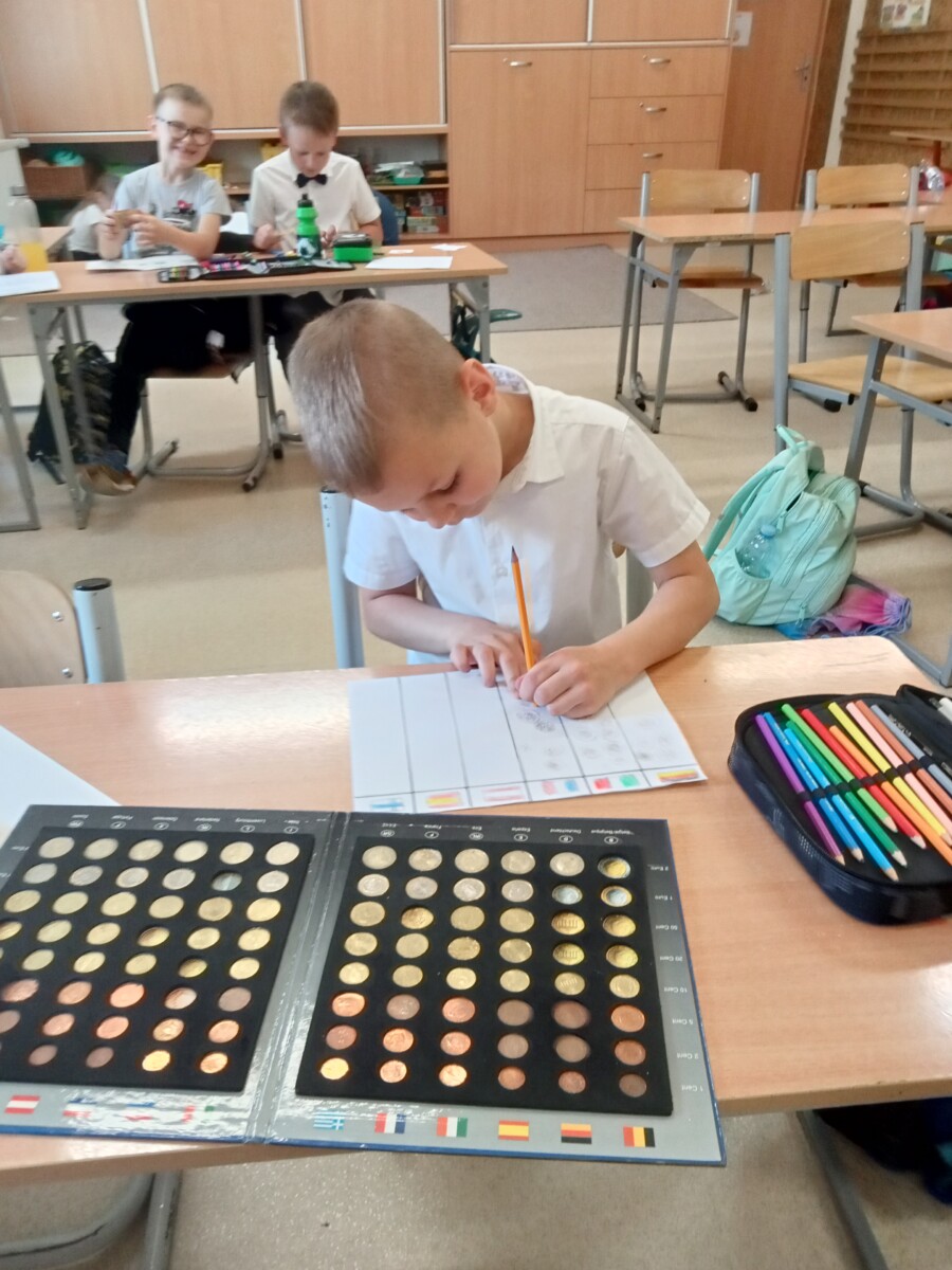Na początku maja I grupa świetlicowa realizowała projekt na temat UNII Europejskiej. Uczniowie dowiedzieli się jakie kraje tworzą wspólnotę UNII oraz gdzie mieszczą się siedziby władzy UNII. Pracowali z mapą Europy oraz planszami poznając położenie każdego z krajów. Po zaprezentowaniu albumu kolekcjonerskiego mieli również okazję zobaczyć monety Euro z poszczególnych krajów. Na koniec uczniowie wykonali flagi krajów UNII Europejskiej. Zapewne ta wiedza przyda im się w przyszłości.
