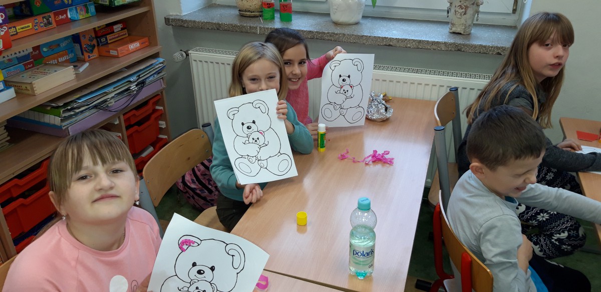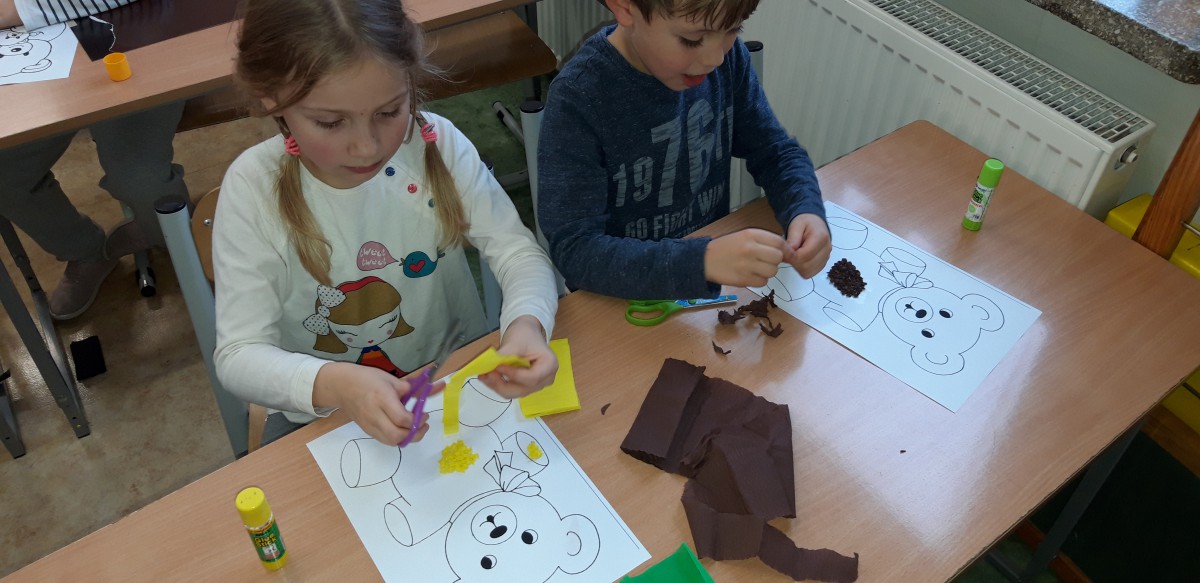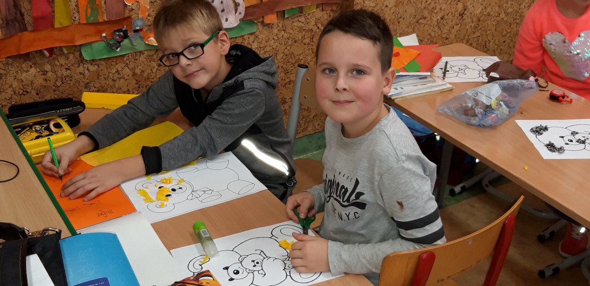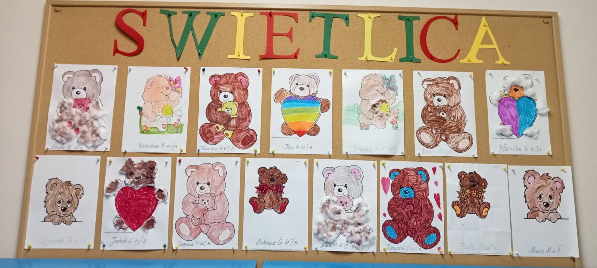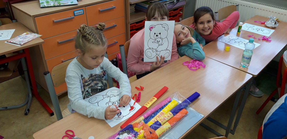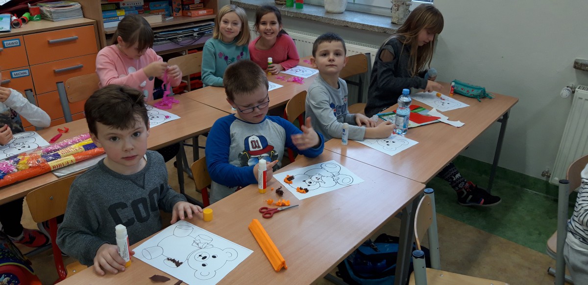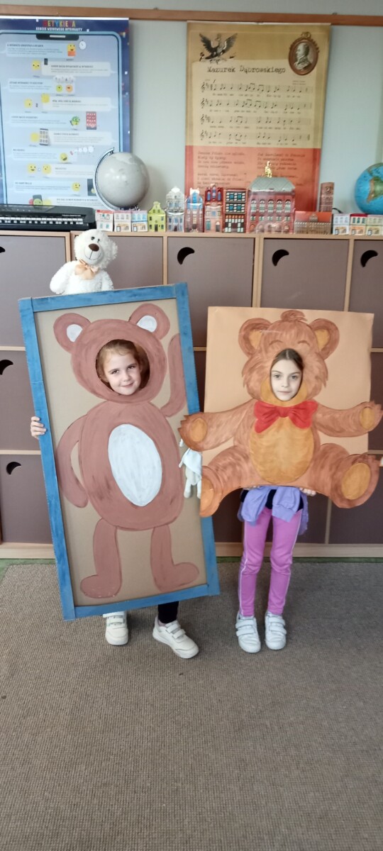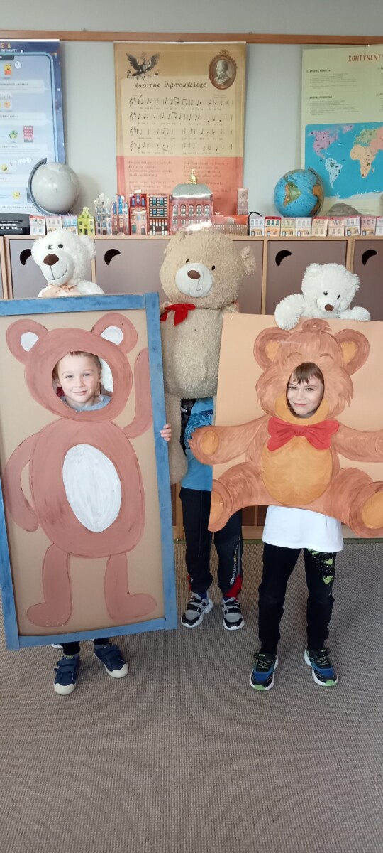We wtorek 25 listopada zorganizowaliśmy w świetlicy szkolnej Dzień Pluszowego Misia. Dzieci miały okazję pochwalić się swoimi ulubionymi miśkami. Tego dnia były z nami wielgachne misie, czasami większe od ucznia ale były też malutkie urocze misiaczki. Wszystkie pluszaki sprawiały nam wiele radości, co łatwo można było zauważyć na twarzach dzieci. Uczniowie również zmieniali się w „pluszaki”, przebierając się w ciekawe pluszowe stroje. Mieli także okazję zrobić sobie zdjęcia z postacią misia. Na koniec uczniowie przygotowali prace plastyczne z wykorzystaniem mięciutkich struktur różnych materiałów.