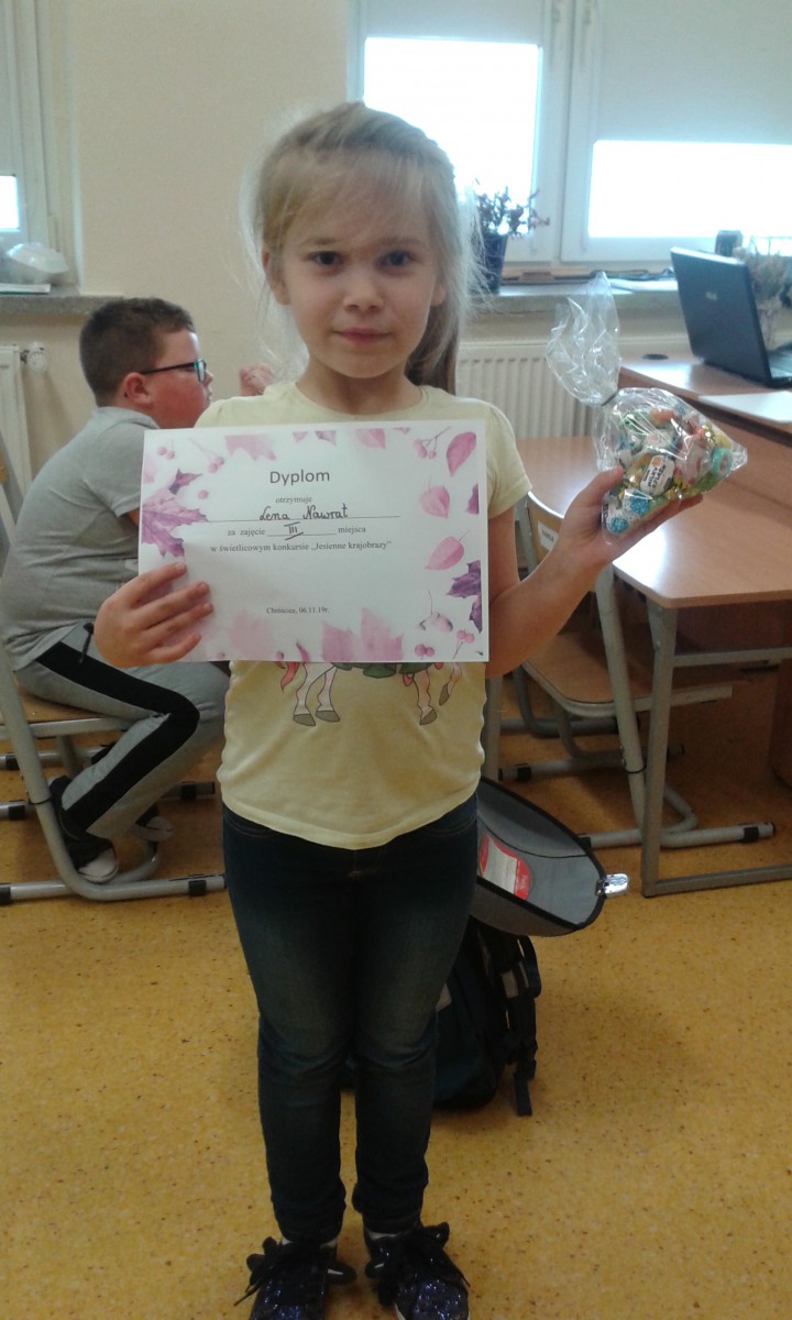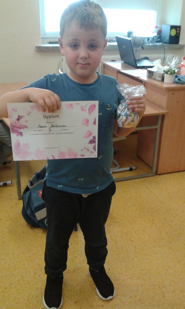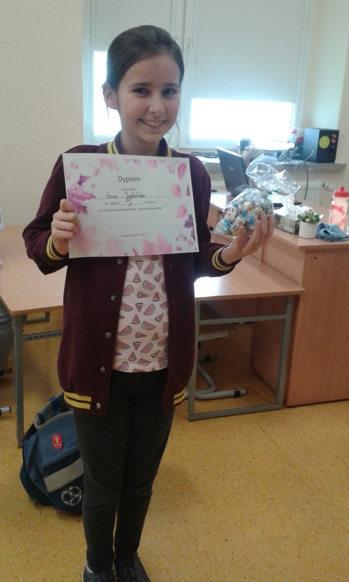 W dniu 06.11 odbyło się rozstrzygnięcie świetlicowego konkursu. Zadanie konkursowe było namalowanie farbami przez uczniów jesiennego krajobrazu. Dzieci z ogromnym zaangażowaniem tworzyły prace. Pierwsze miejsce zajęła Sara Jaskólska, drugie – Adam Miśkowiec, natomiast trzecie Lena Nawrat. Gratulujemy sukcesu!