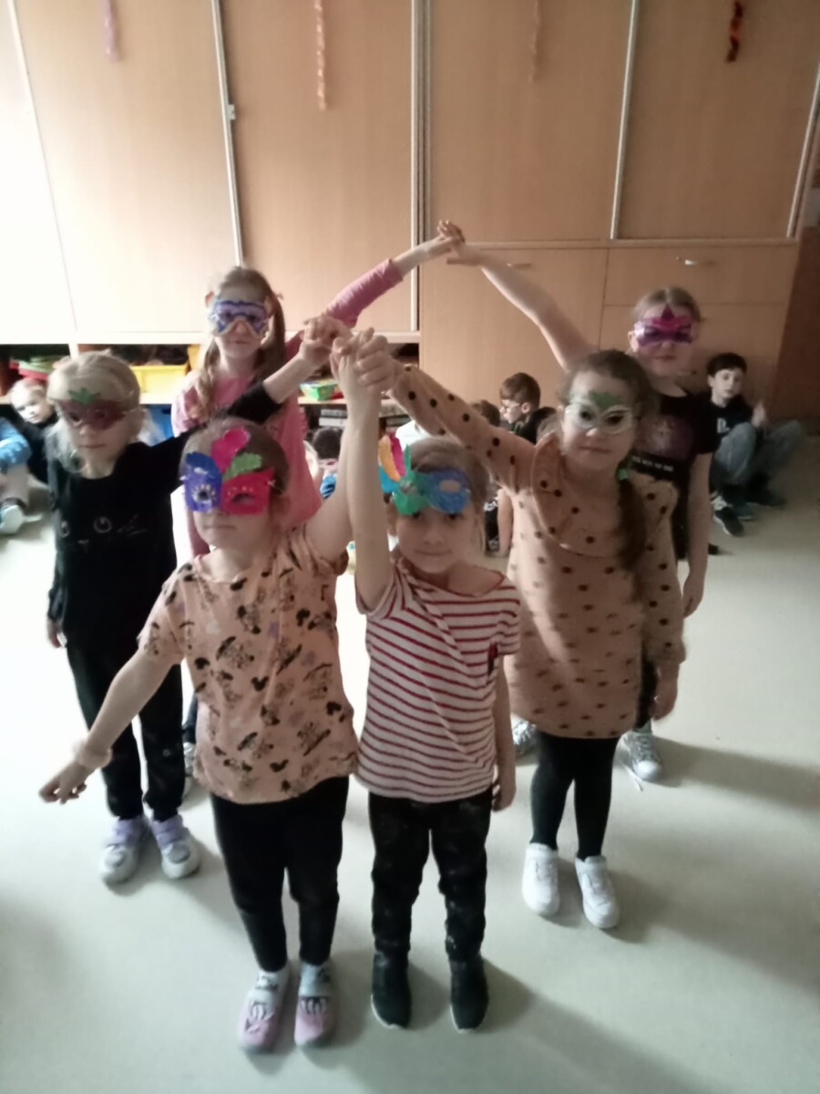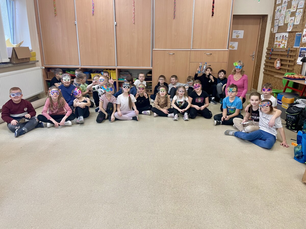 7 lutego w naszej szkolnej świetlicy odbył się Bal Maskowy . Uczniowie przygotowali z pomocą nauczycieli kolorowe maski . Na zakończenie karnawału wszyscy wspólnie podjęli próbę nauki tańców takich jak Polonez czy Belgijka. To był wspaniały dzień, pełen niezapomnianych wrażeń