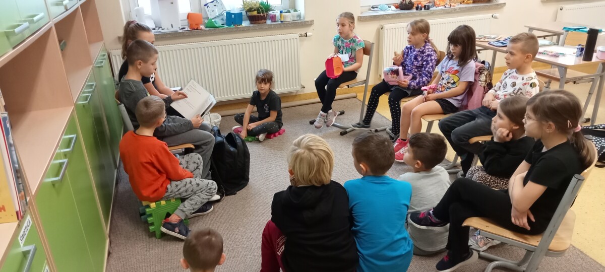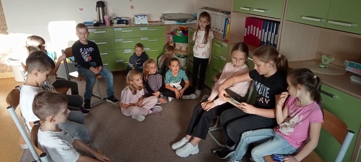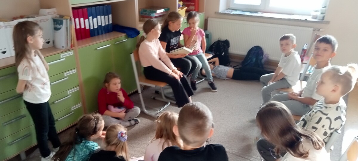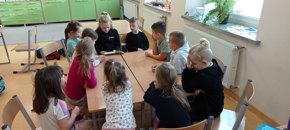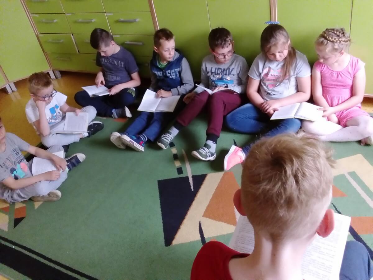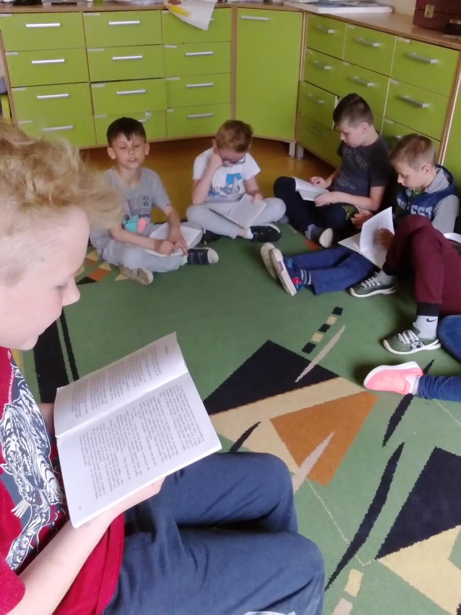W obecnym roku szkolnym uczniowie klasy V realizują projekt „Głośnego czytania”. Starsze koleżanki i koledzy regularnie odwiedzają uczniów z klas młodszych na zajęciach świetlicowych, by poczytać im ciekawe książeczki. Projekt cieszy się dużym powodzeniem zarówno wśród uczniów kl. V, jak i u dzieci z kl. I – III. Starsi ćwiczą technikę głośnego czytania, a młodsi uważnego słuchania. Trzeba przyznać, że łatwo nie jest, bo na koniec trzeba jeszcze odpowiedzieć na pytania starszych kolegów.